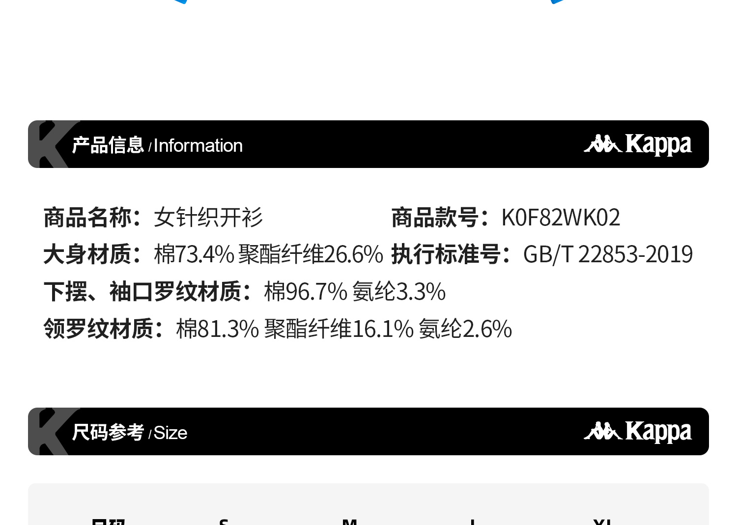 Kappa 25年秋季新款 休闲针织开衫立领外套 女K0F82WK02