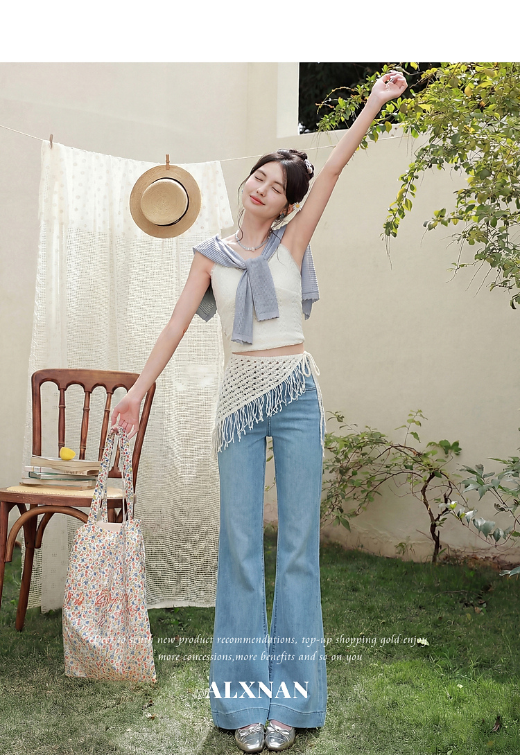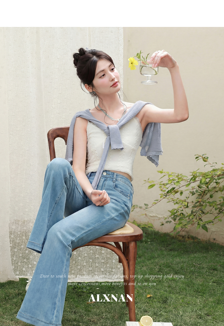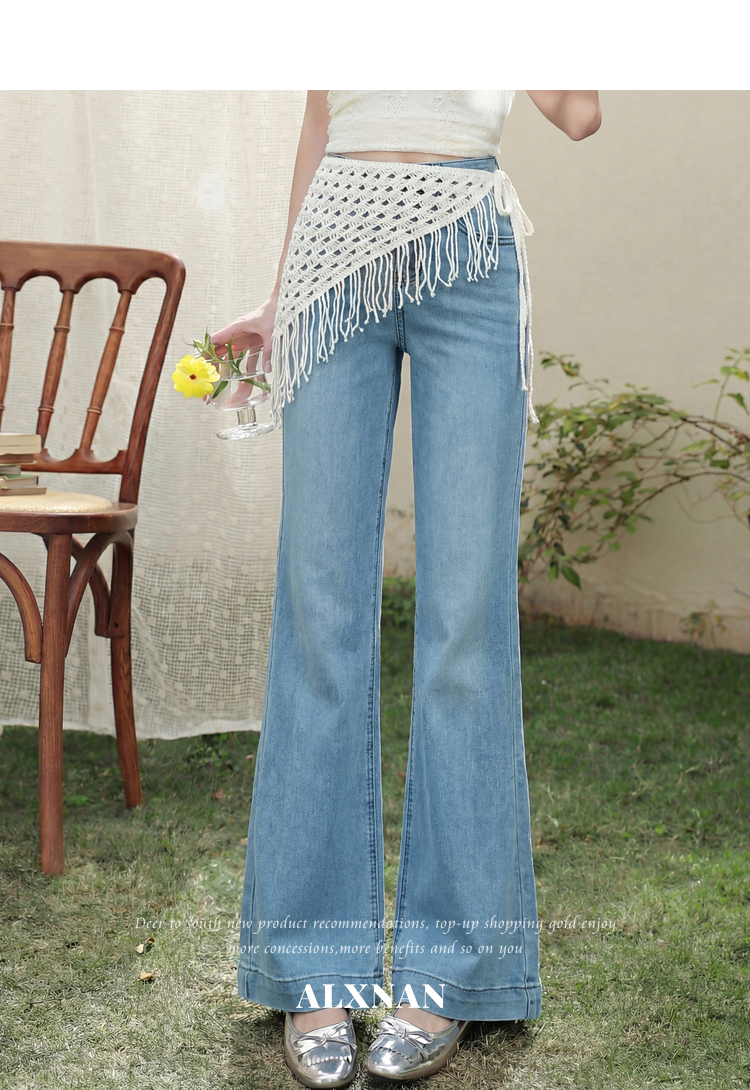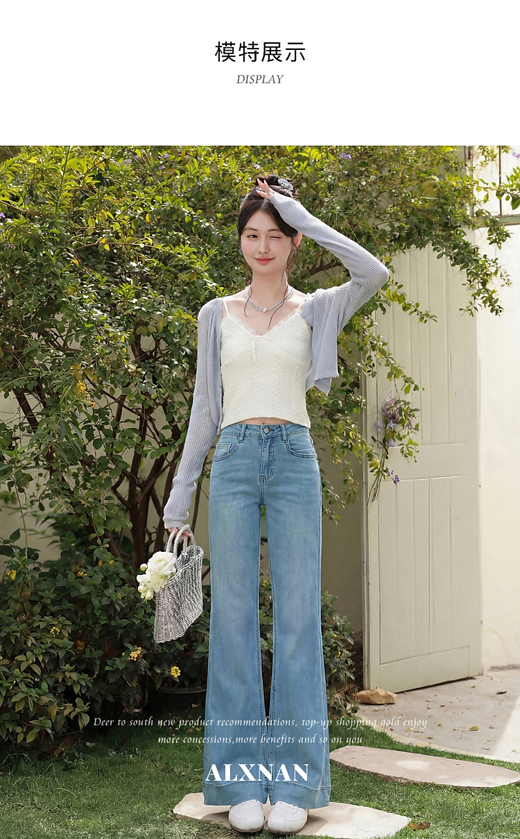 鹿向南「丹宁艺术家」洋气蓝色牛仔裤女春夏新款宽松微喇长款裤子