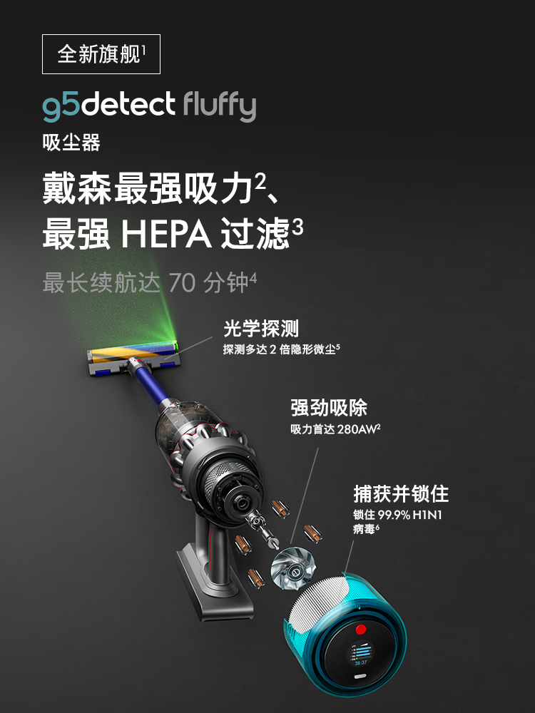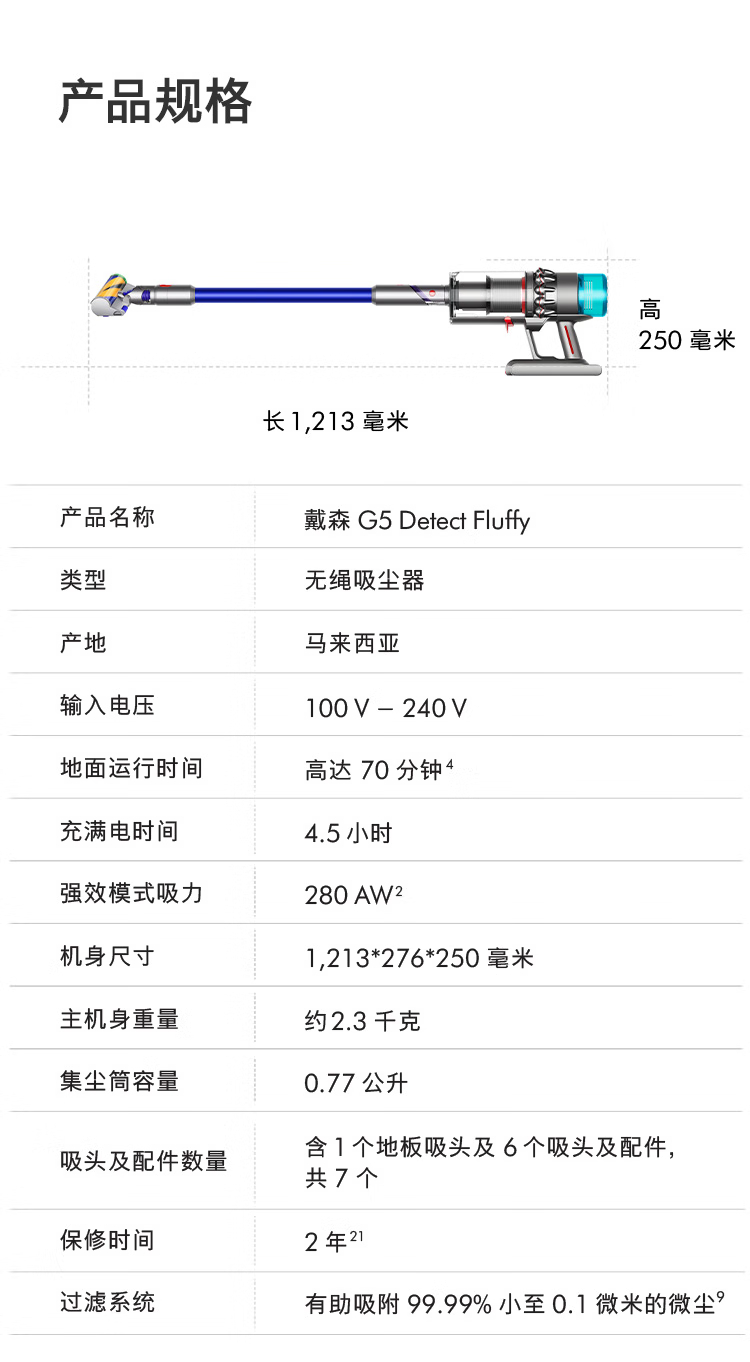 戴森G5 Detect Fluffy无绳吸尘器(镍色)