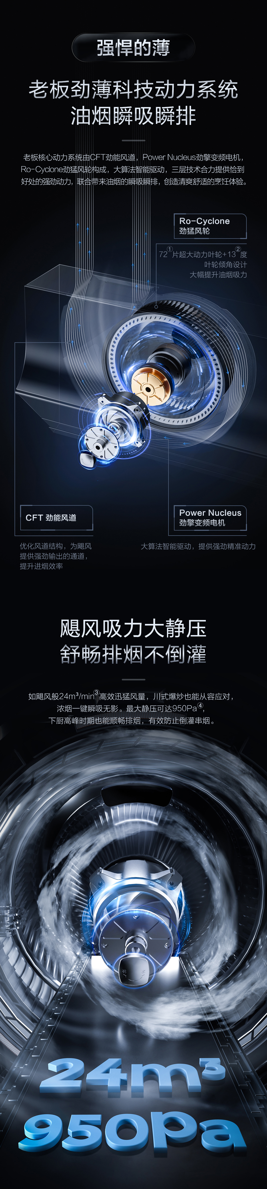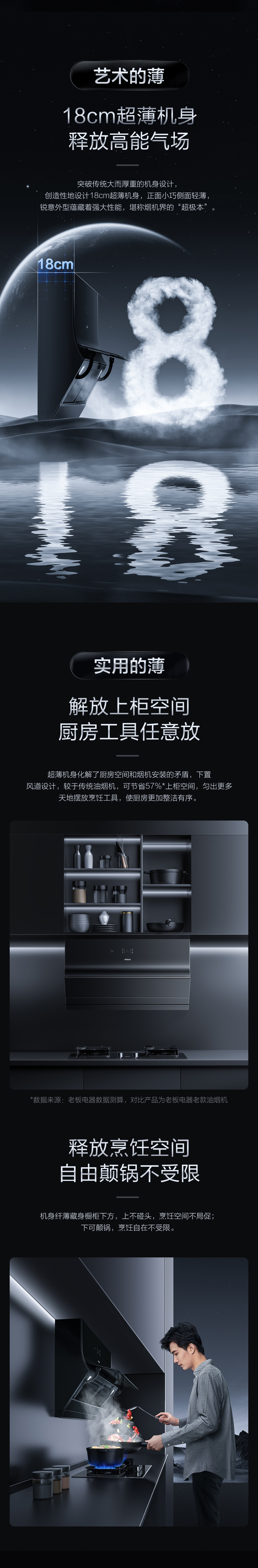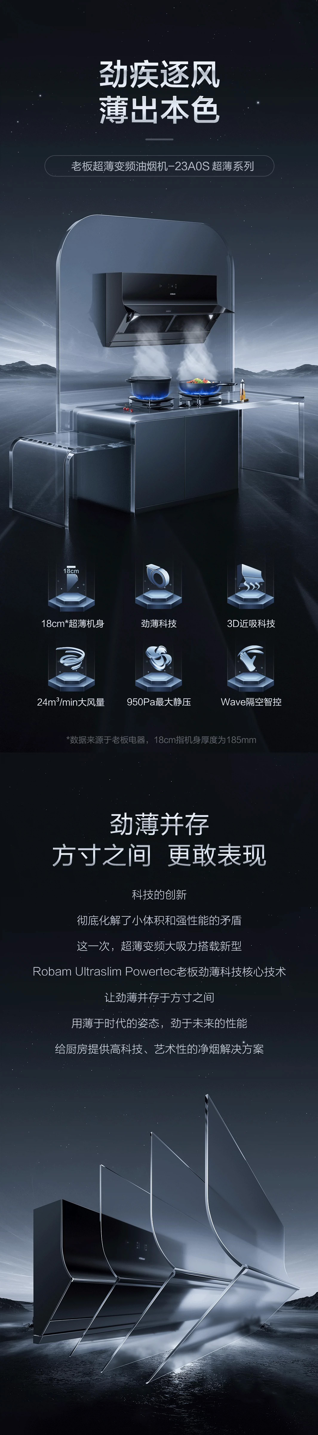 [王一博同款]老板23A0S超薄侧吸大吸力油烟机家用厨房官方旗舰店