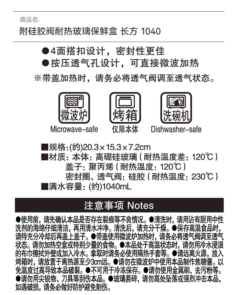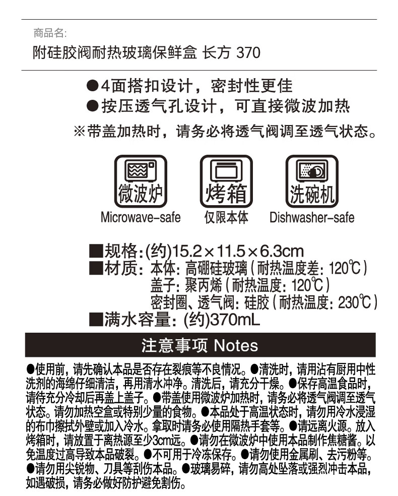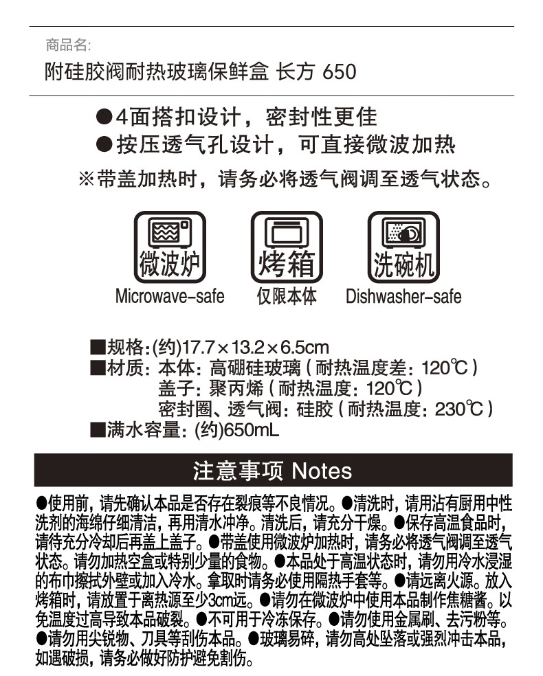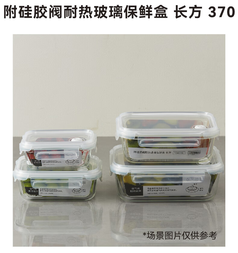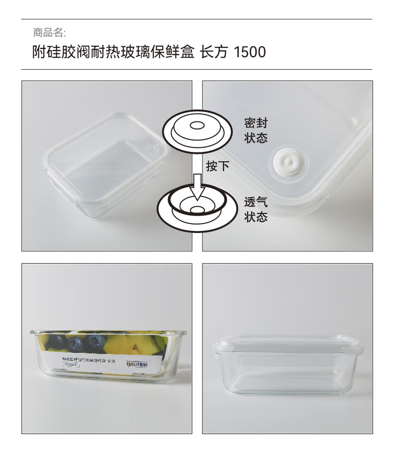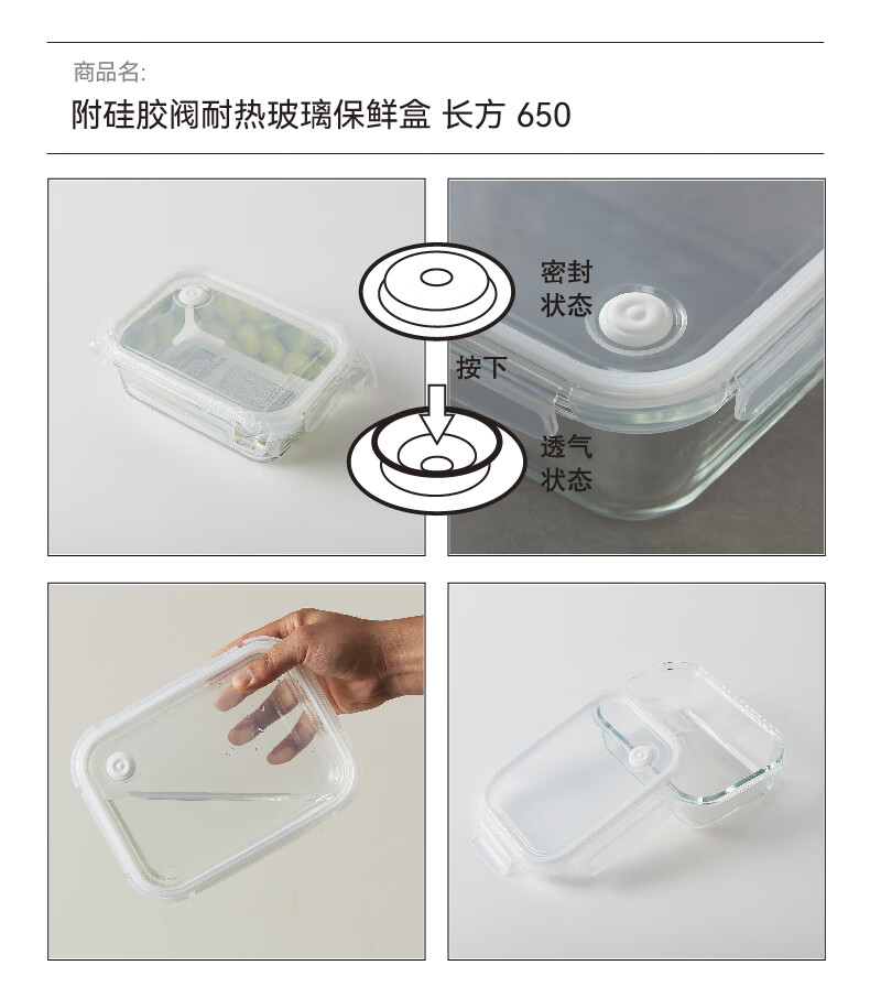 食品存储附硅胶阀耐热玻璃保鲜盒保存容器可微波