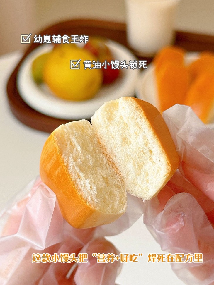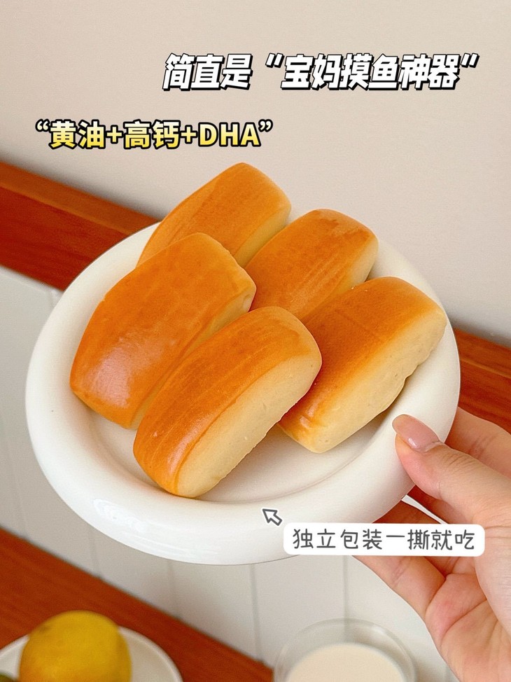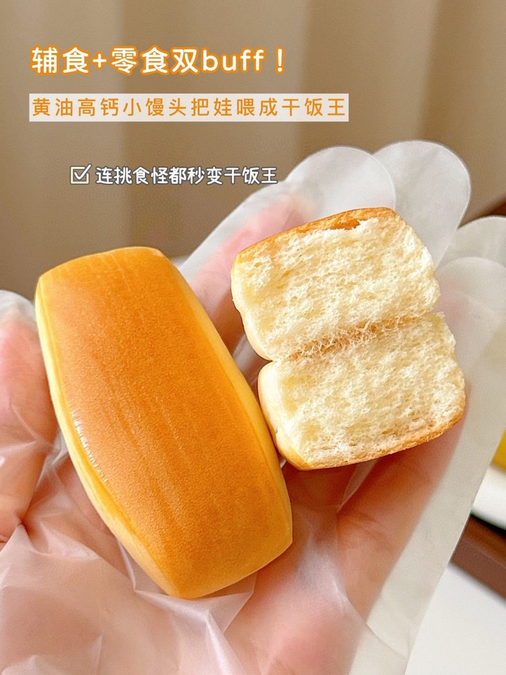 谁设计的神仙小馒头? 把黄油、高钙、DHA全塞进mini身材💪 8%黄油香到上头,咬开是蓬松气孔 像吃“会呼吸的面包”~ 独立包装懂洁癖星人,出门揣几包,坐车、候机随时炫! 28天短保新鲜,给娃当零食超放心,老母亲疯狂回购🛒