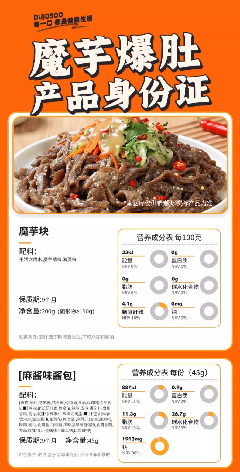 【满300-200】暴肌独角兽魔芋面爆肚毛肚零食代餐主食速食懒人免煮即食