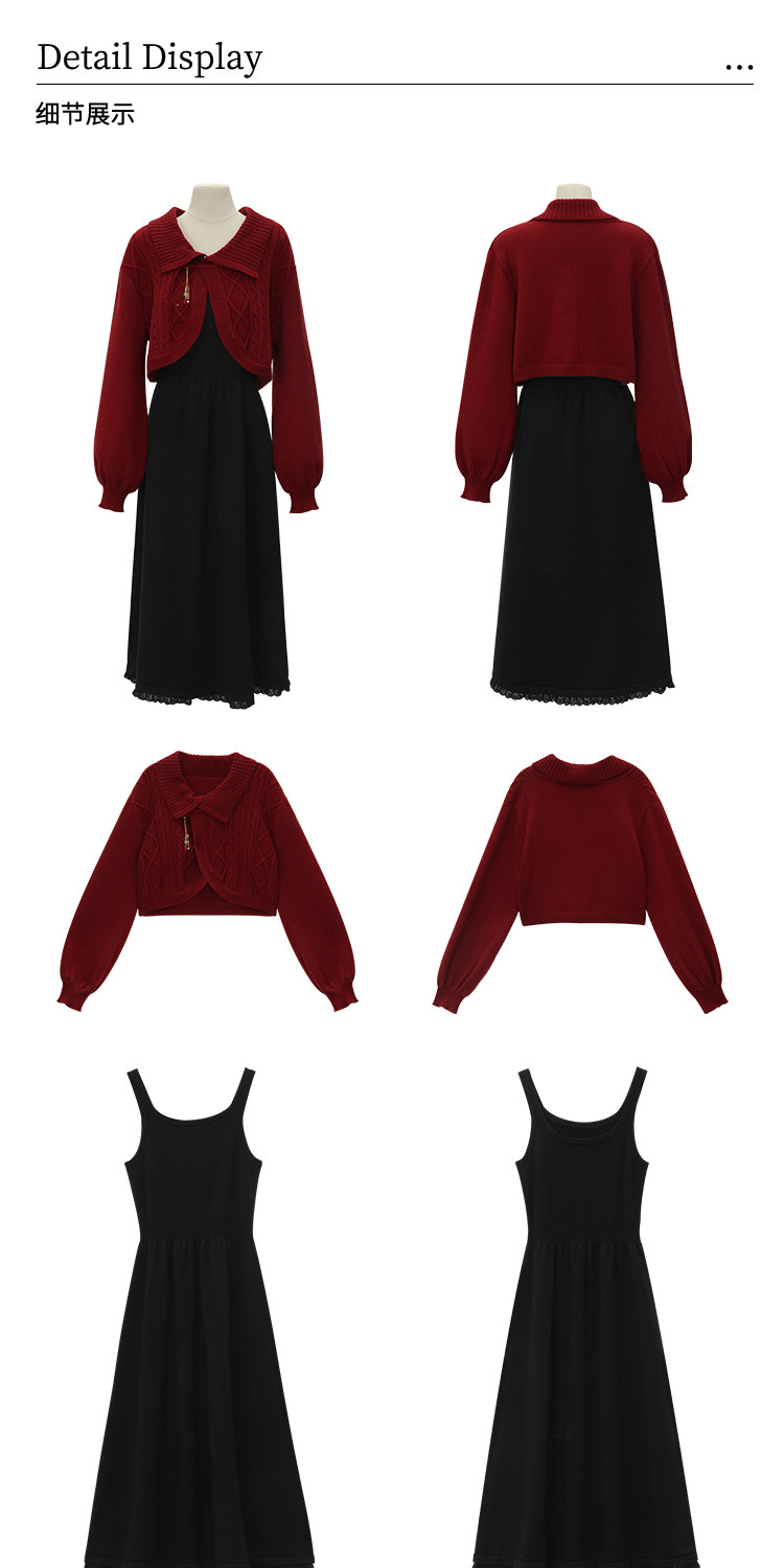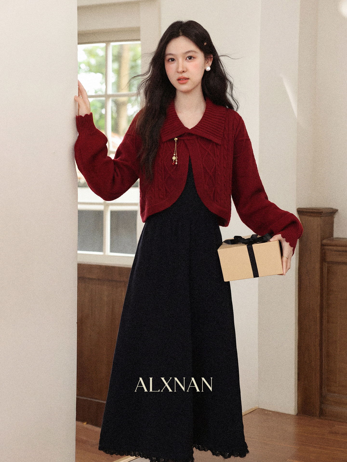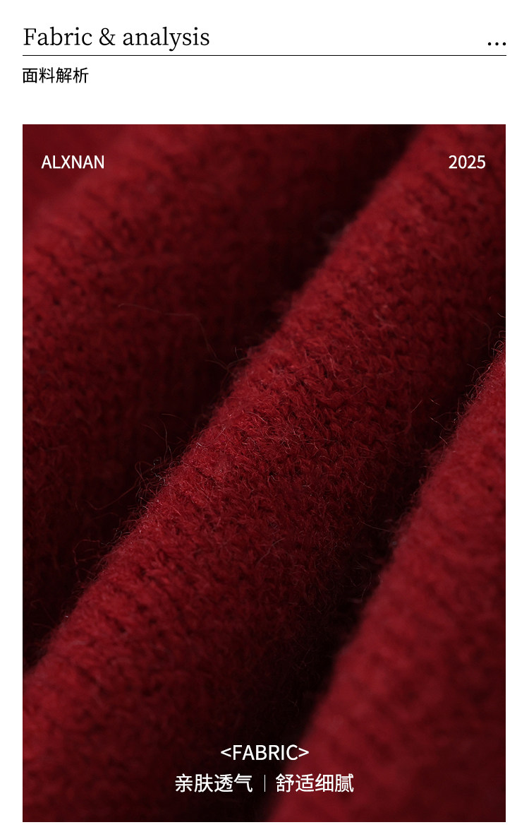 鹿向南「胭脂海棠」红色绞花纹长袖针织毛衣女冬宽松外穿节日上衣
