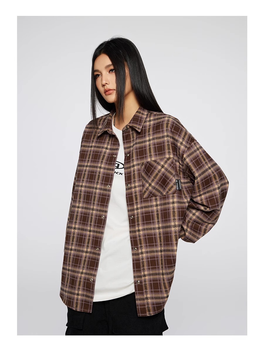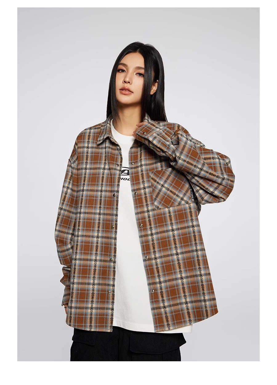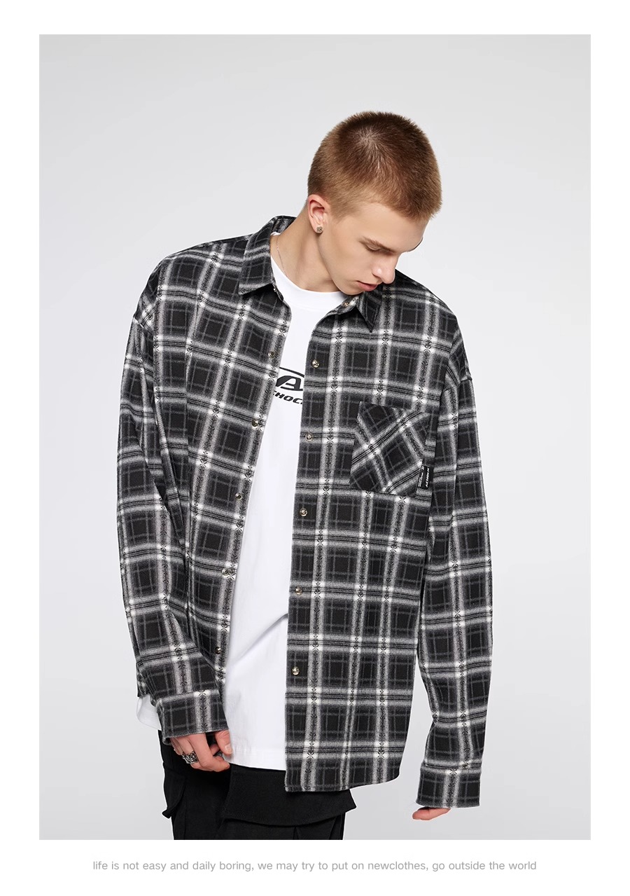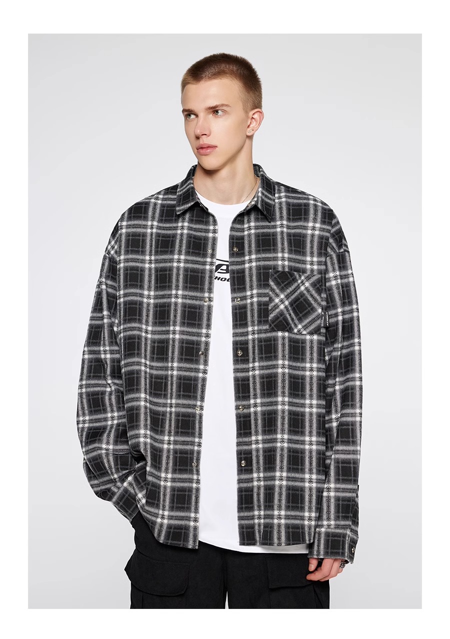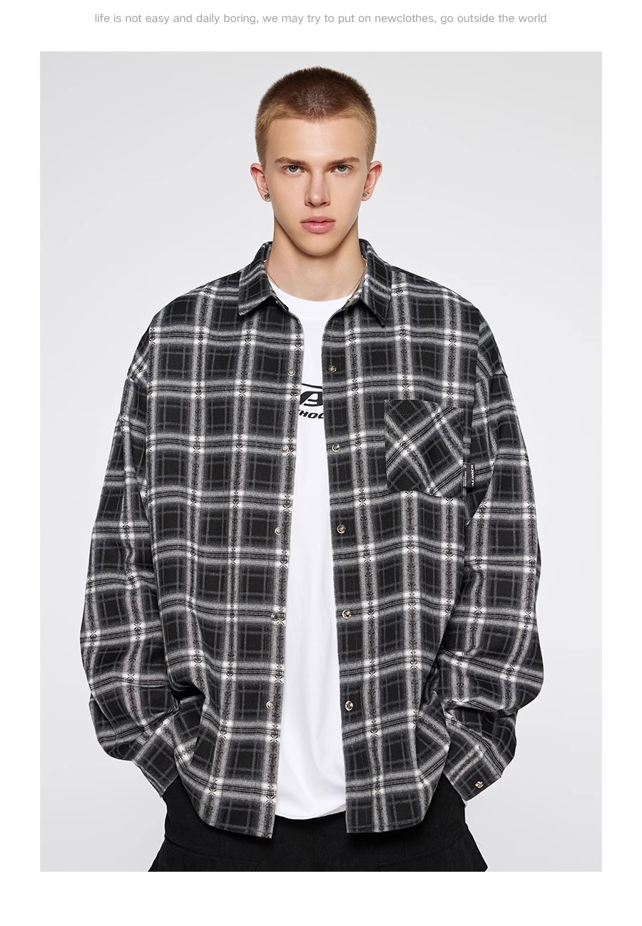 【Achock官方店】简约高级撞色格子长袖衬衣潮牌宽松情侣常青衬衫