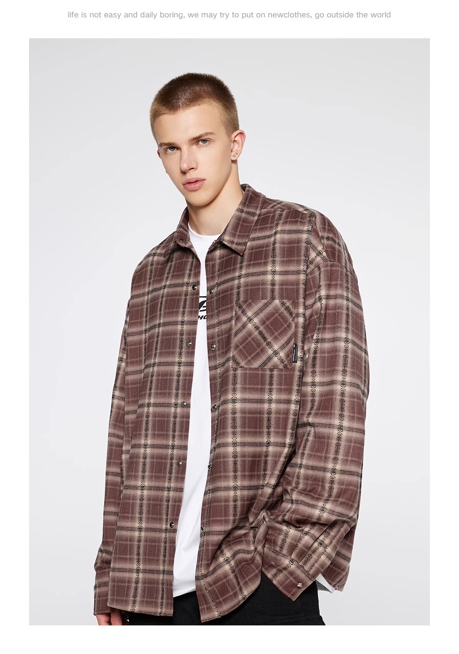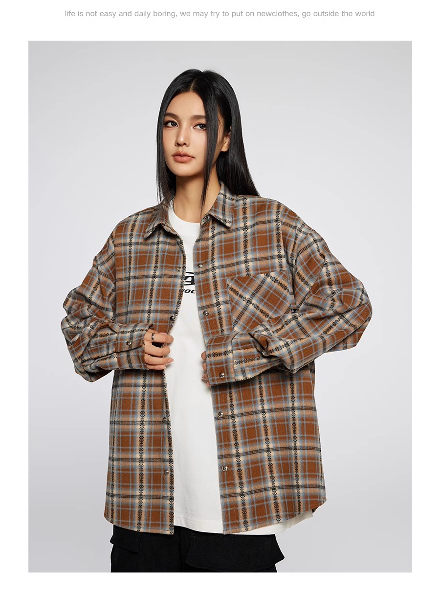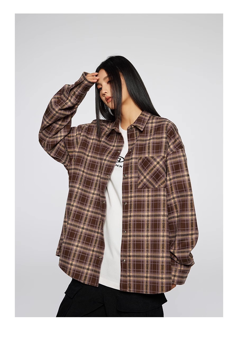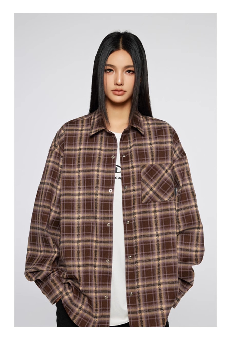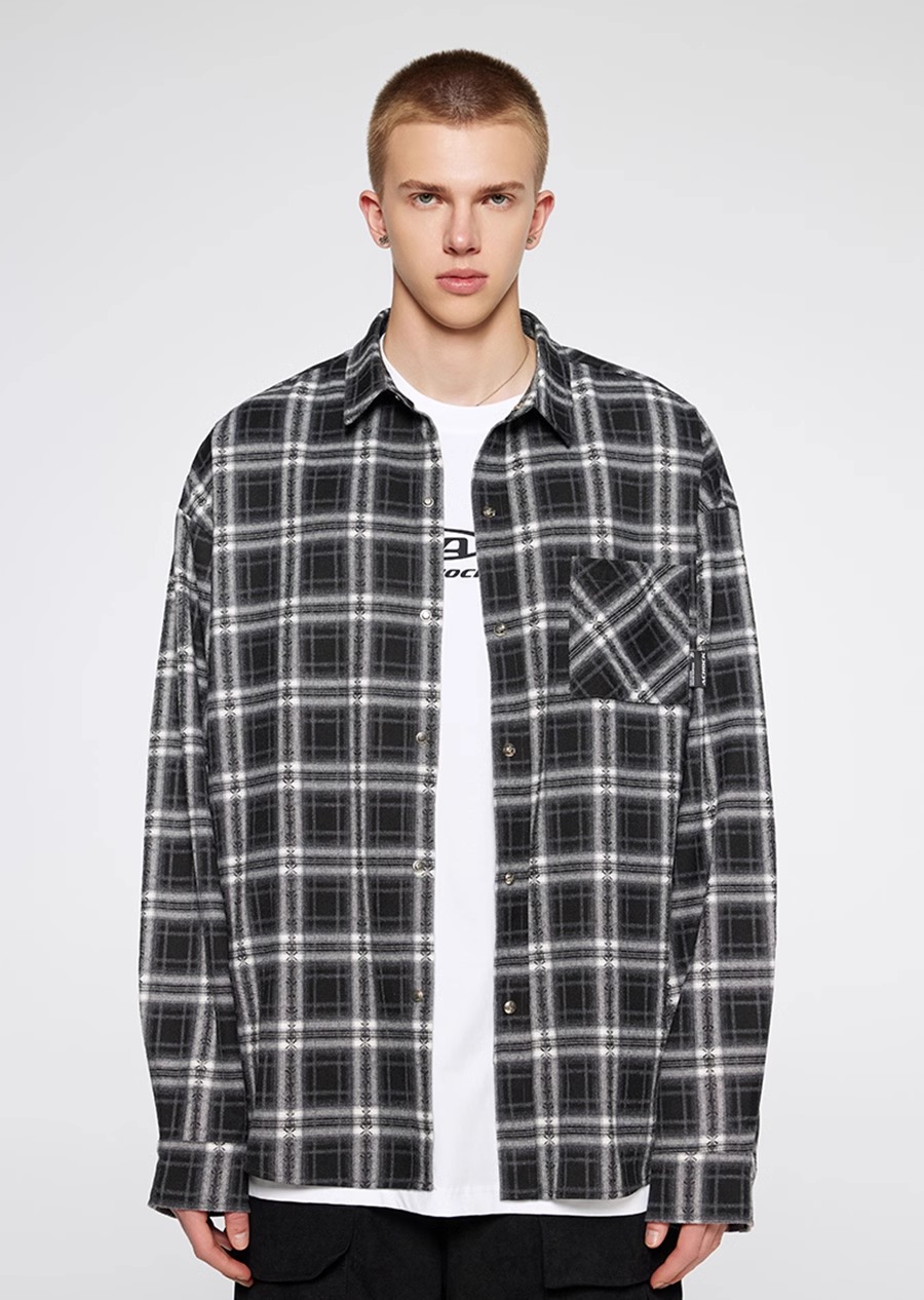 【Achock官方店】简约高级撞色格子长袖衬衣潮牌宽松情侣常青衬衫