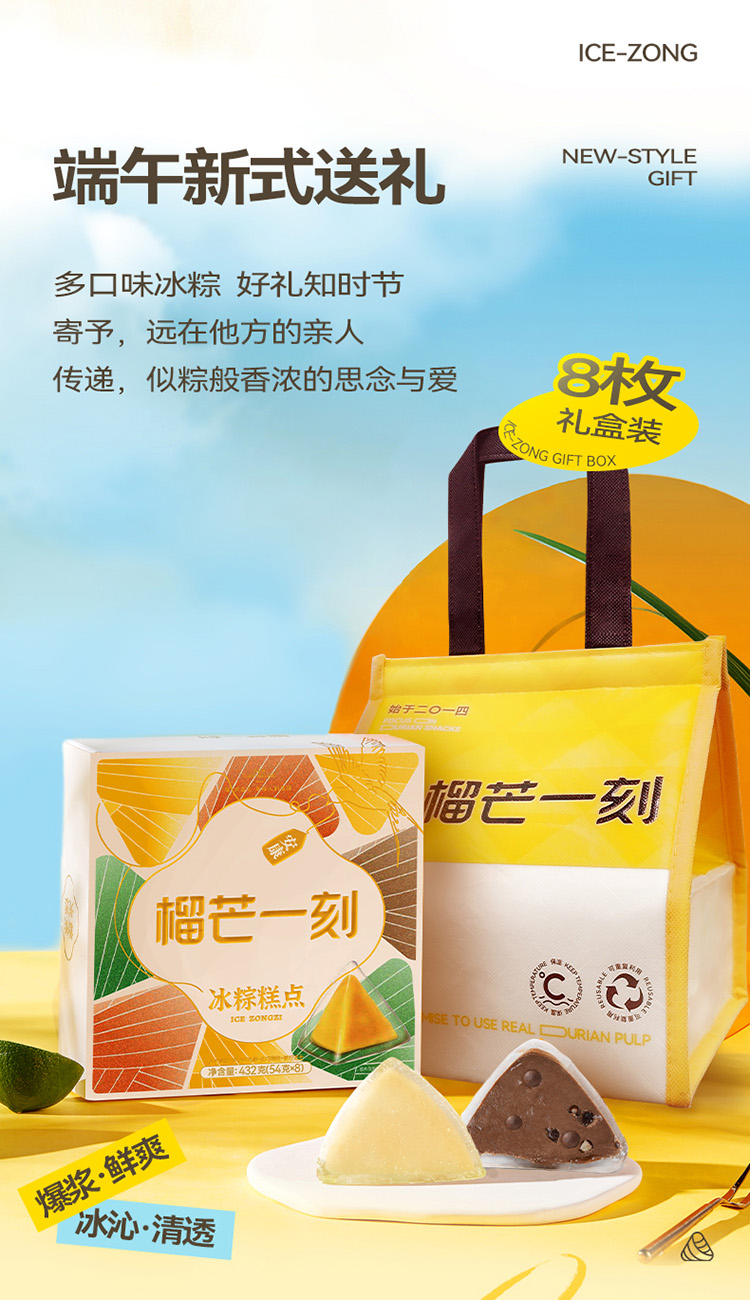 多口味冰粽54g*8枚/*1盒(榴莲/生巧/百香果/青柠各2枚)配礼袋)