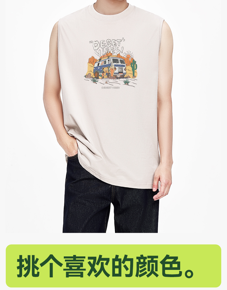 「棉的美学」纯棉凉感坎肩背心男款印花款夏季健身休闲无袖T恤