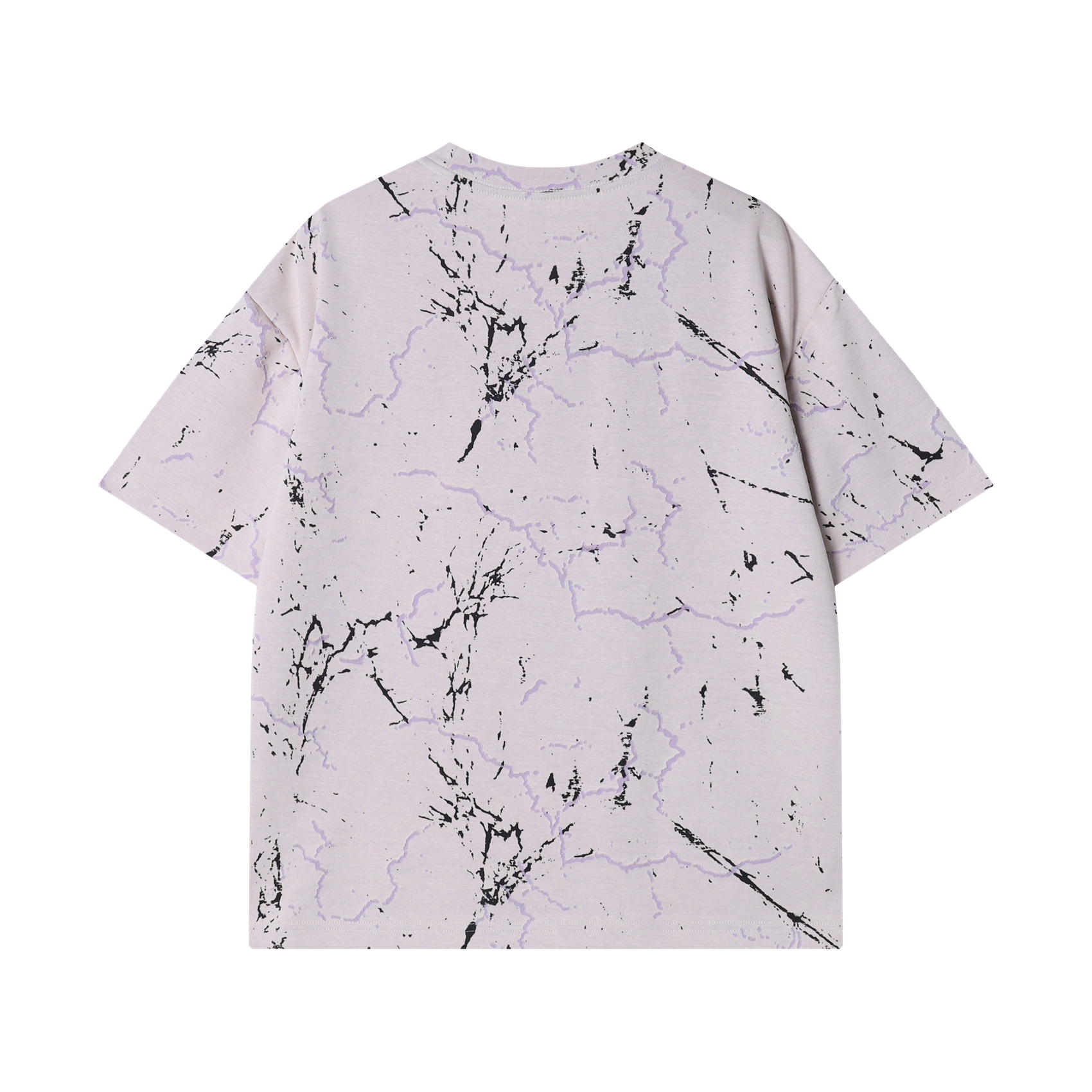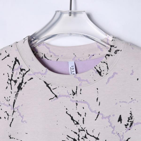 T2525夏季新款时尚个性韩版扎染撞色磨破圆领短袖T恤潮流宽松百搭上衣