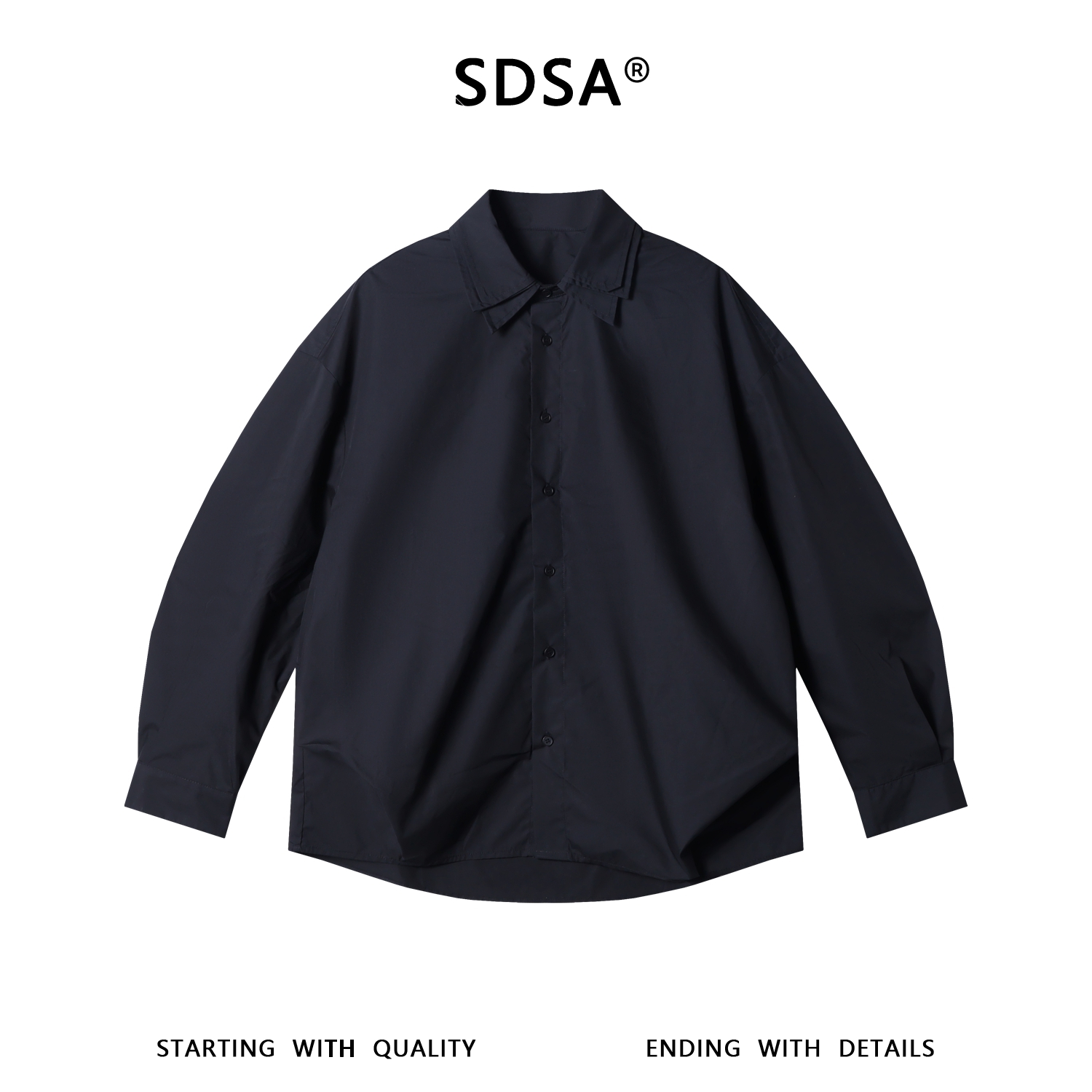 SDSA男装2026新款高贵轻奢韩系纯色双层领宽松长袖衬衫百搭痞帅