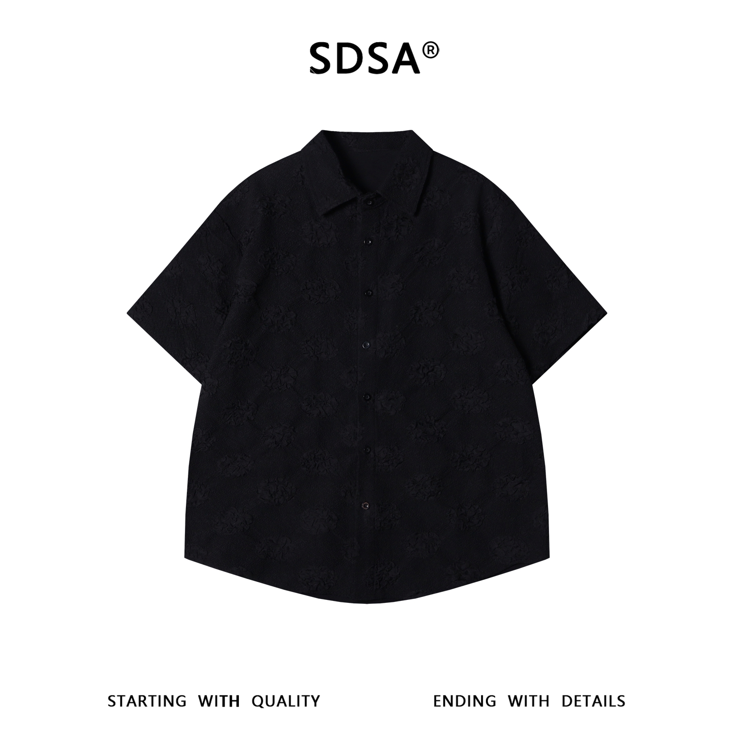 7070SDSA男装2026新款高贵轻奢新中式纯色提花菱形短袖衬衫百搭简约