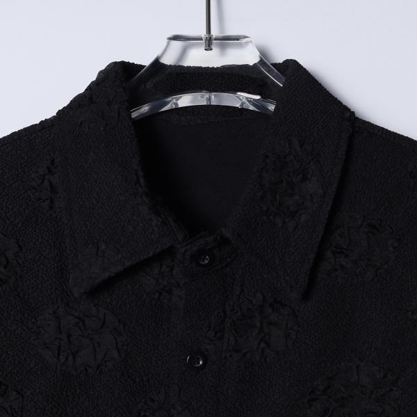 CS130夏季新款时尚花边拼接男士衬衫百搭潮流休闲上衣宽松复古短袖