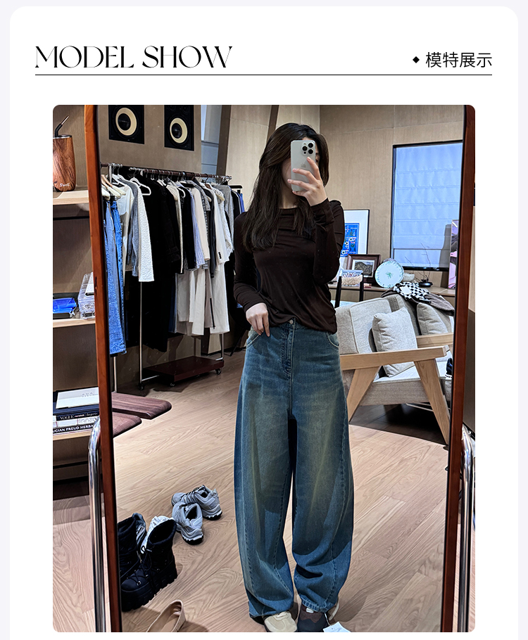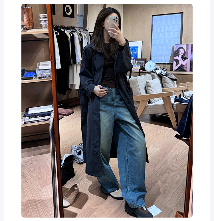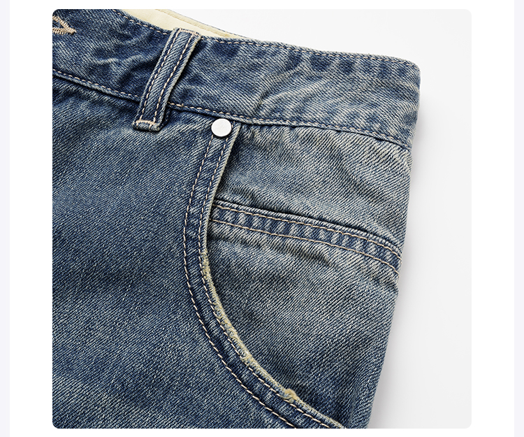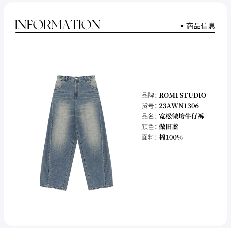 ROMI STUDIO”经典复古“100%棉细斜纹洗水宽松微垮牛仔裤23AWN1306