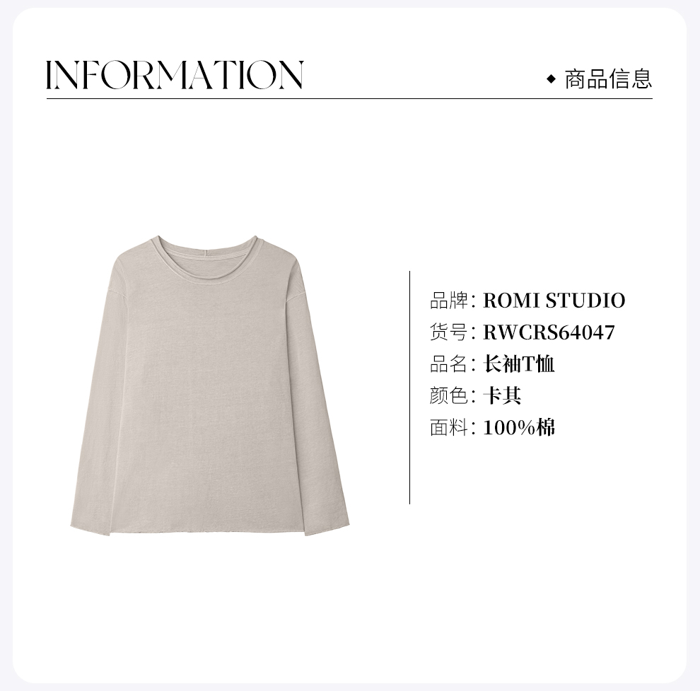 ROMI STUDIO“松弛随性”舒适全棉圆领卷边宽松长袖T恤 RWCRS64047