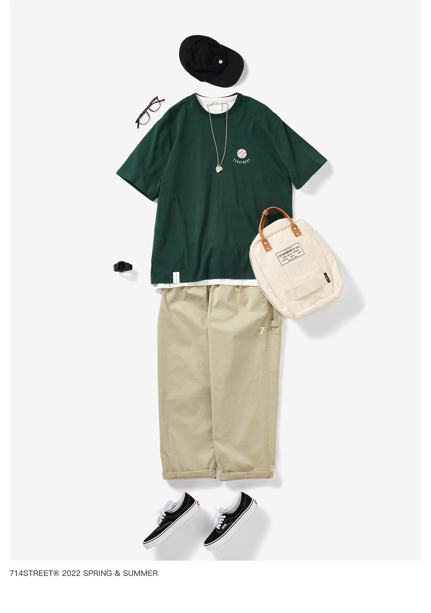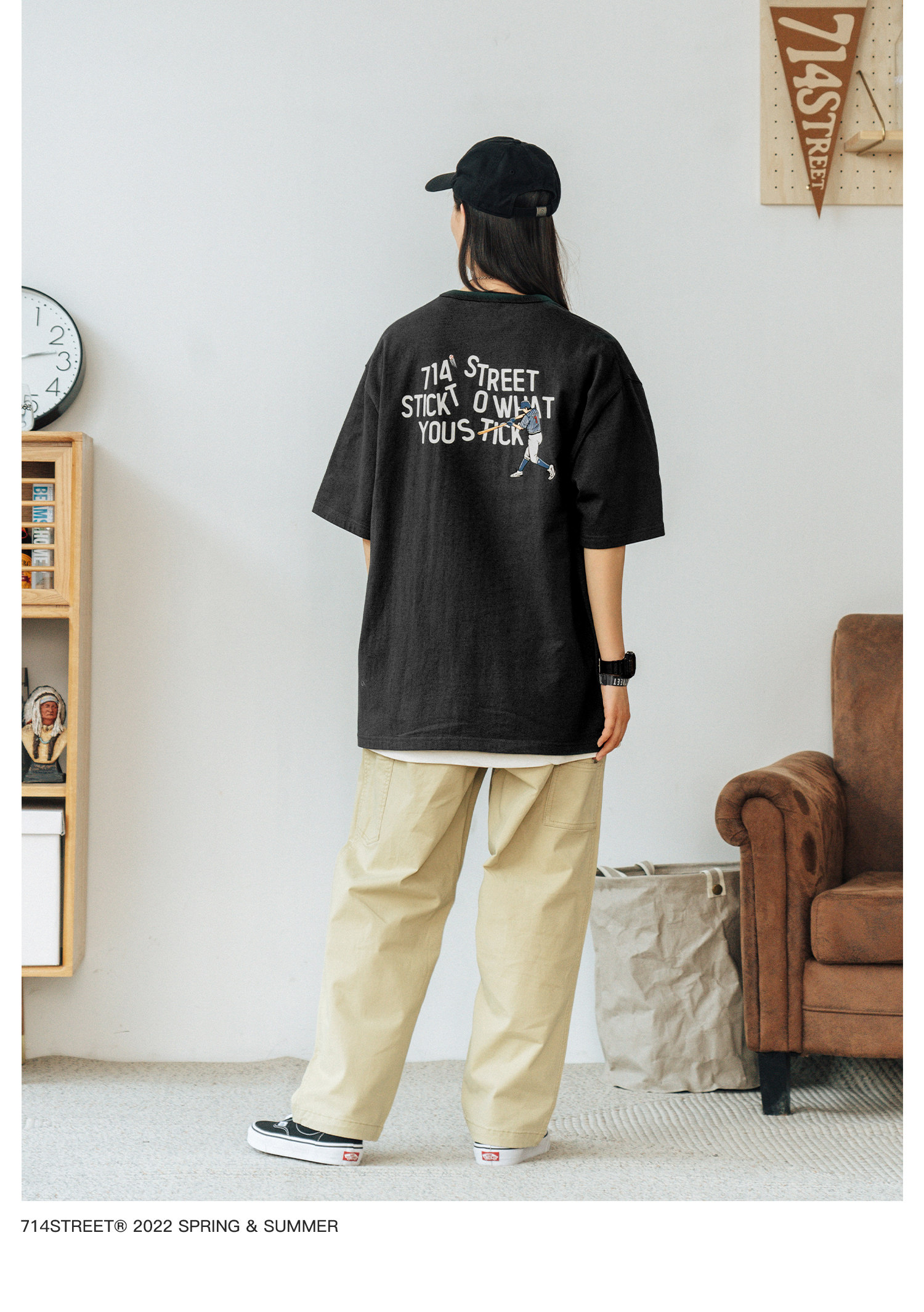 714street弧线圆领短袖T恤