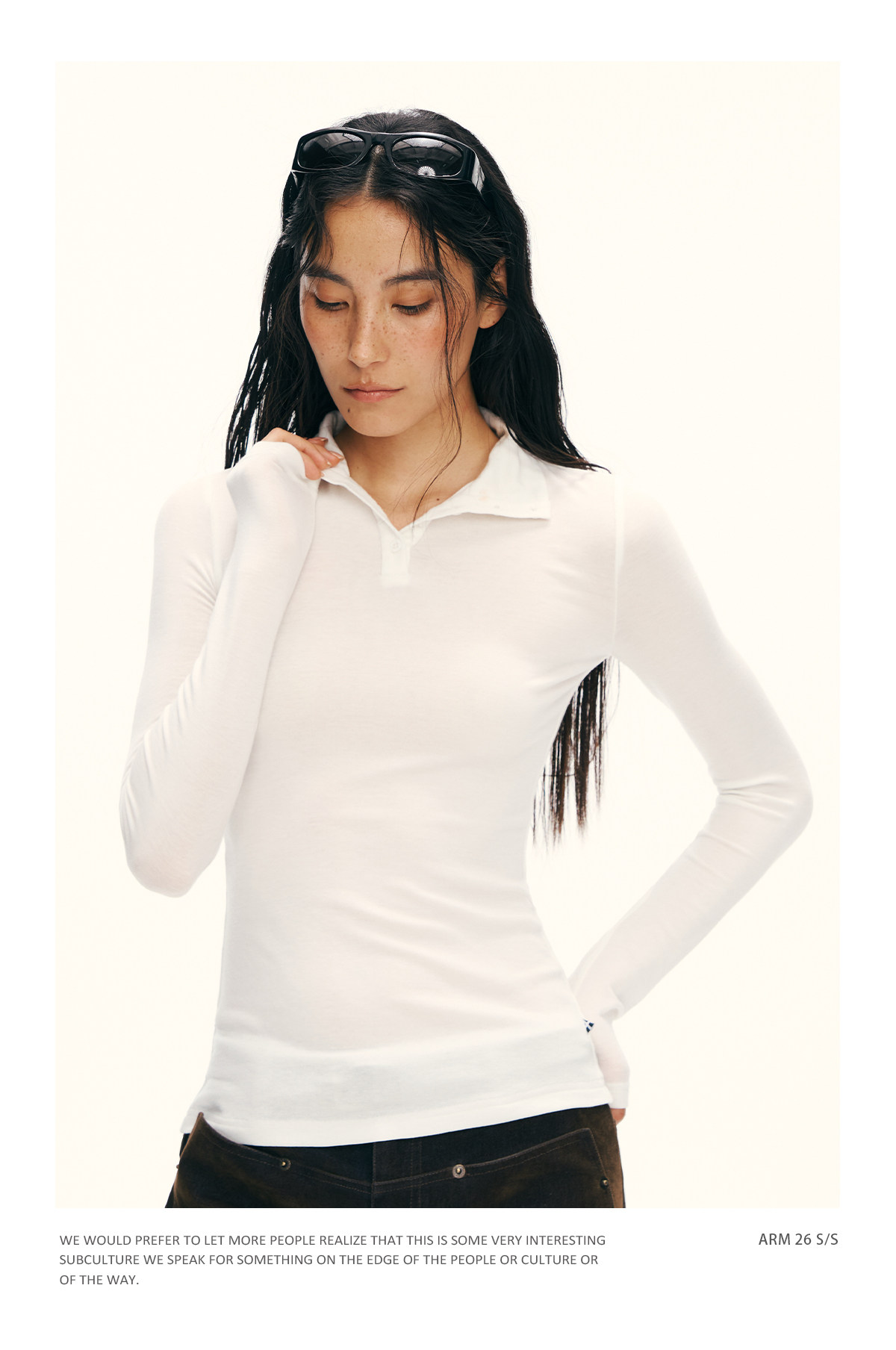 Ariseism 撞色波点印花宽松罩衫长袖T恤女春季新款露肩上衣