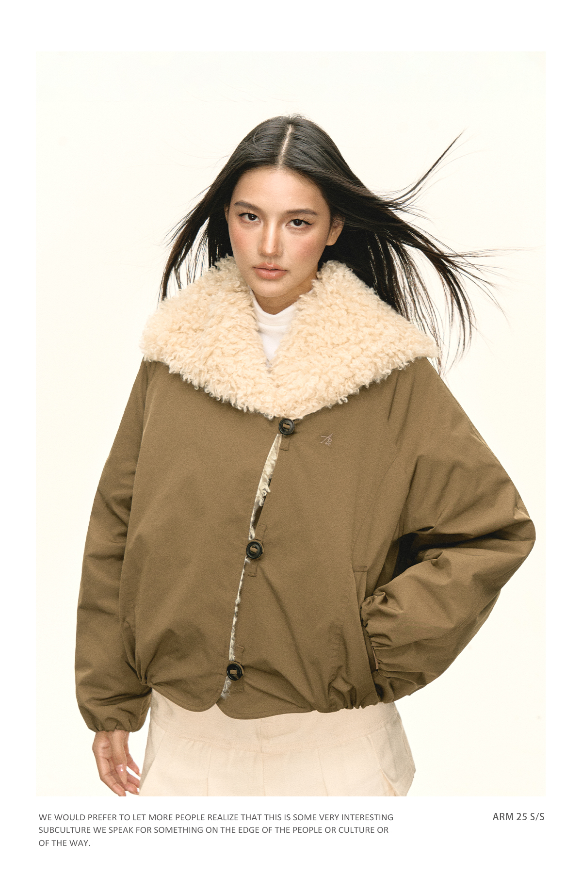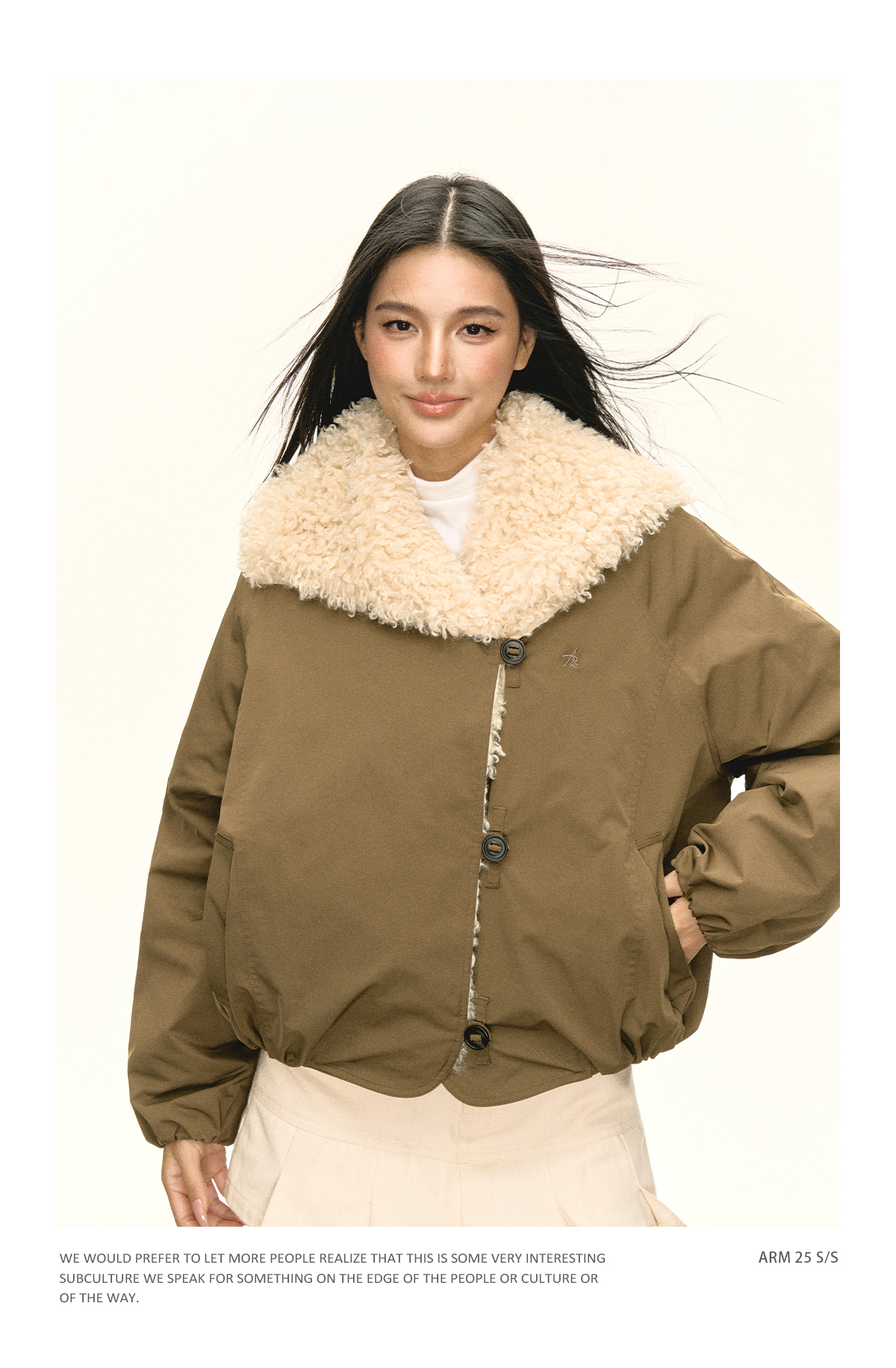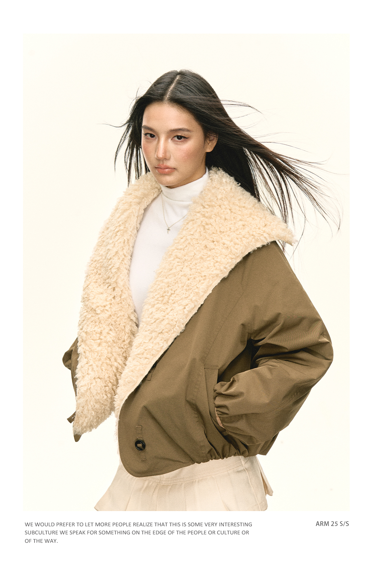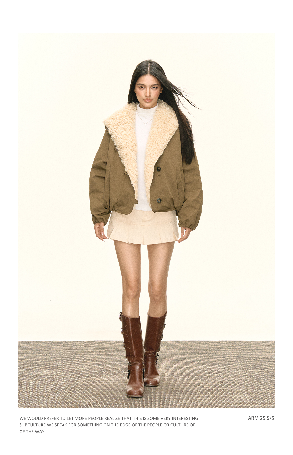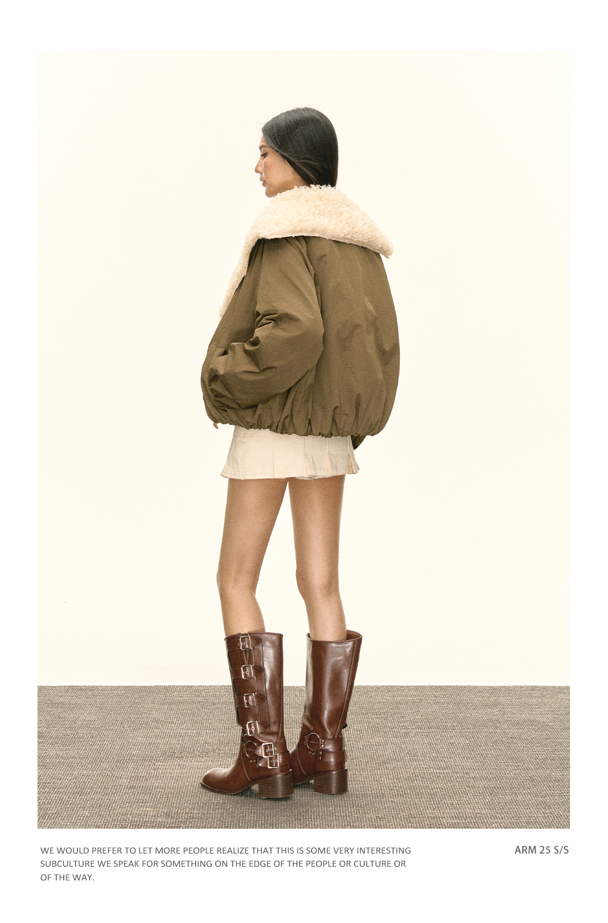 Ariseism 美式复古可脱卸毛领PU皮短外套女秋季新款外套