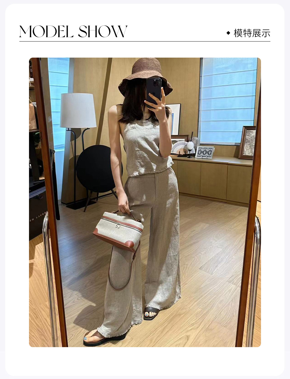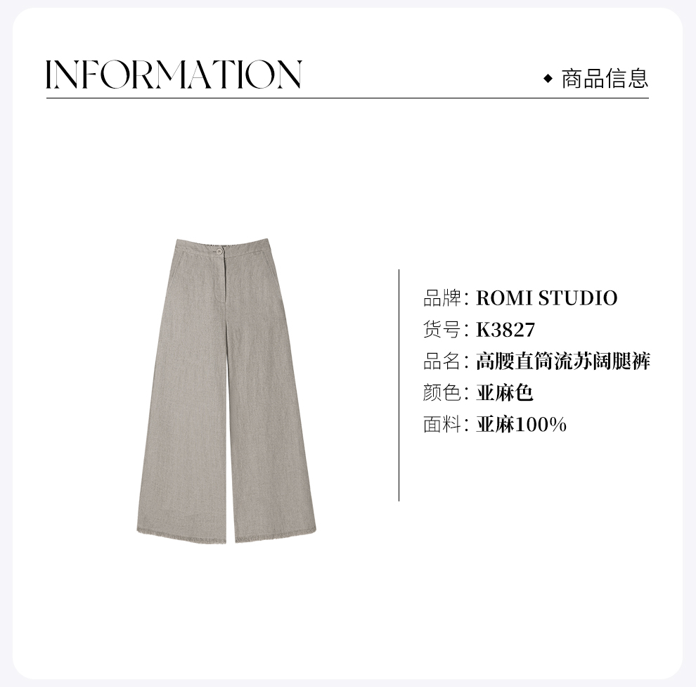 ROMI STUDIO“清凉夏日”100%雨露麻高腰直筒下摆流苏阔腿裤K3827