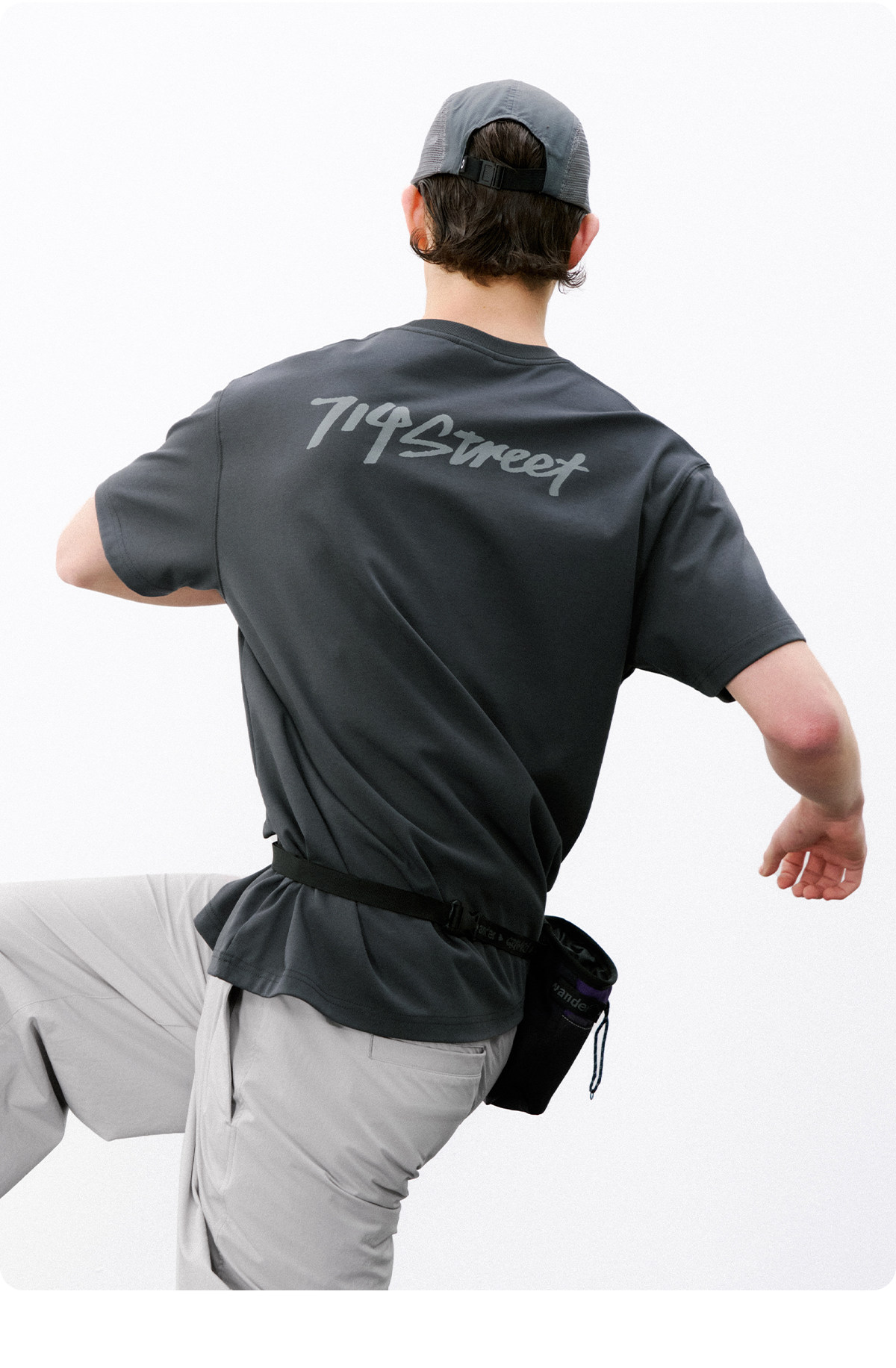 714street吸湿速干反光印花运动短袖2026夏季7A抗菌凉感防晒T恤男