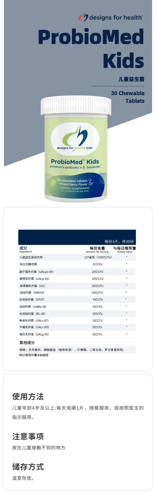海淘 健康设计 儿童益生菌 ProbioMed™ Kids 30片/瓶 12/25