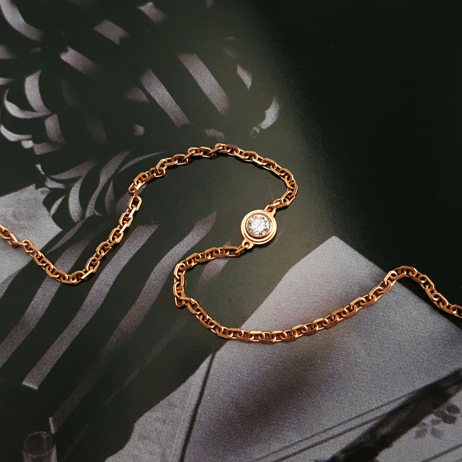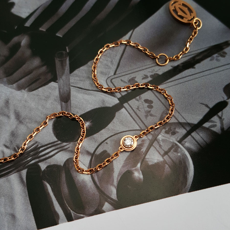 【95新】Cartier卡地亚Cartier d'Amour系列B6040300小号玫瑰金9分单钻飞碟手链链长约18cm、吊坠直径约4.3mm女士060226NJS21