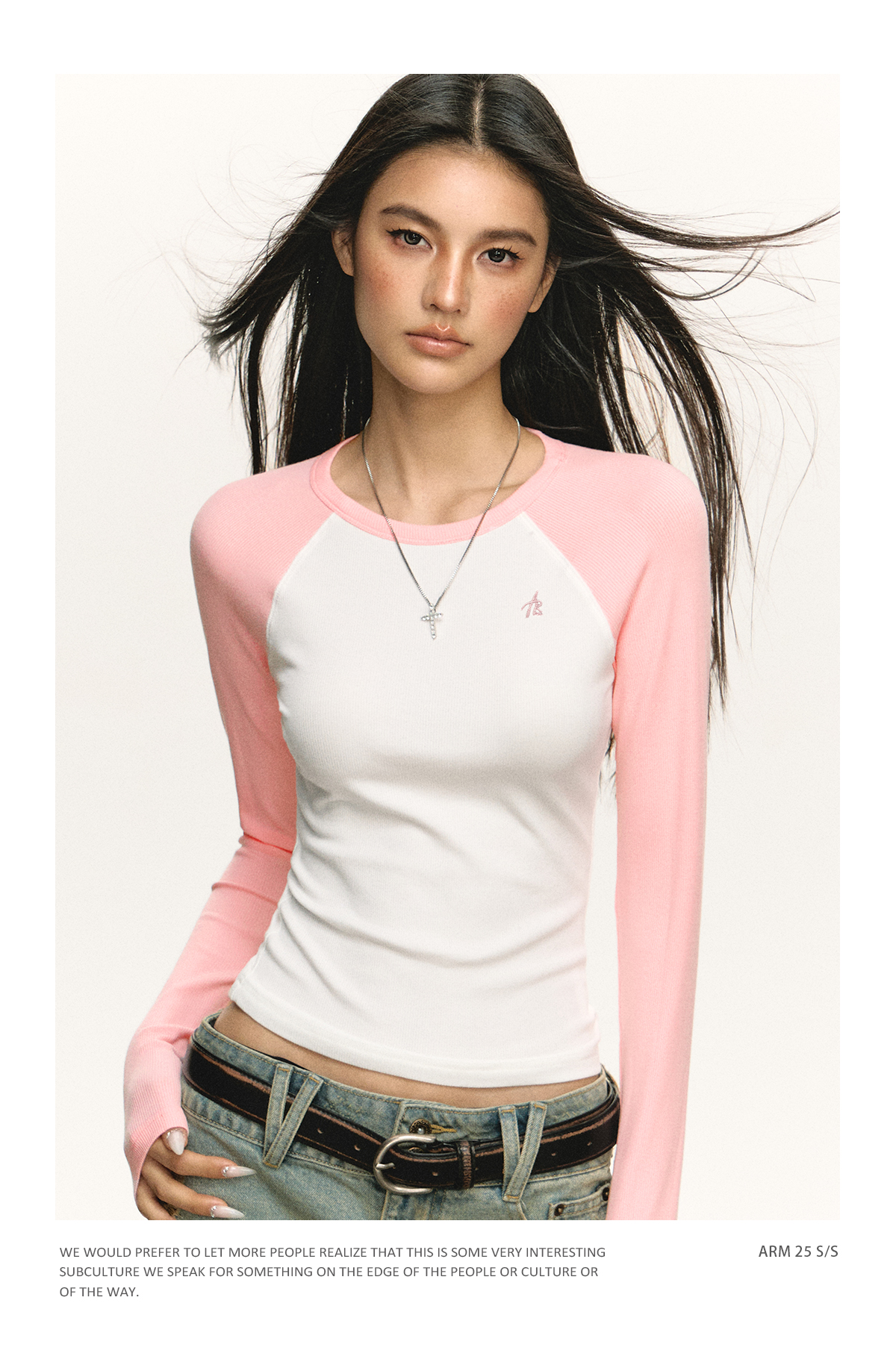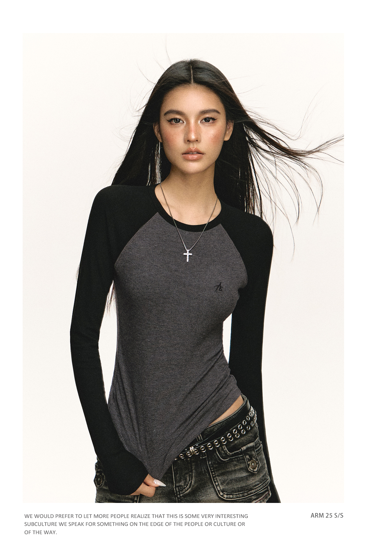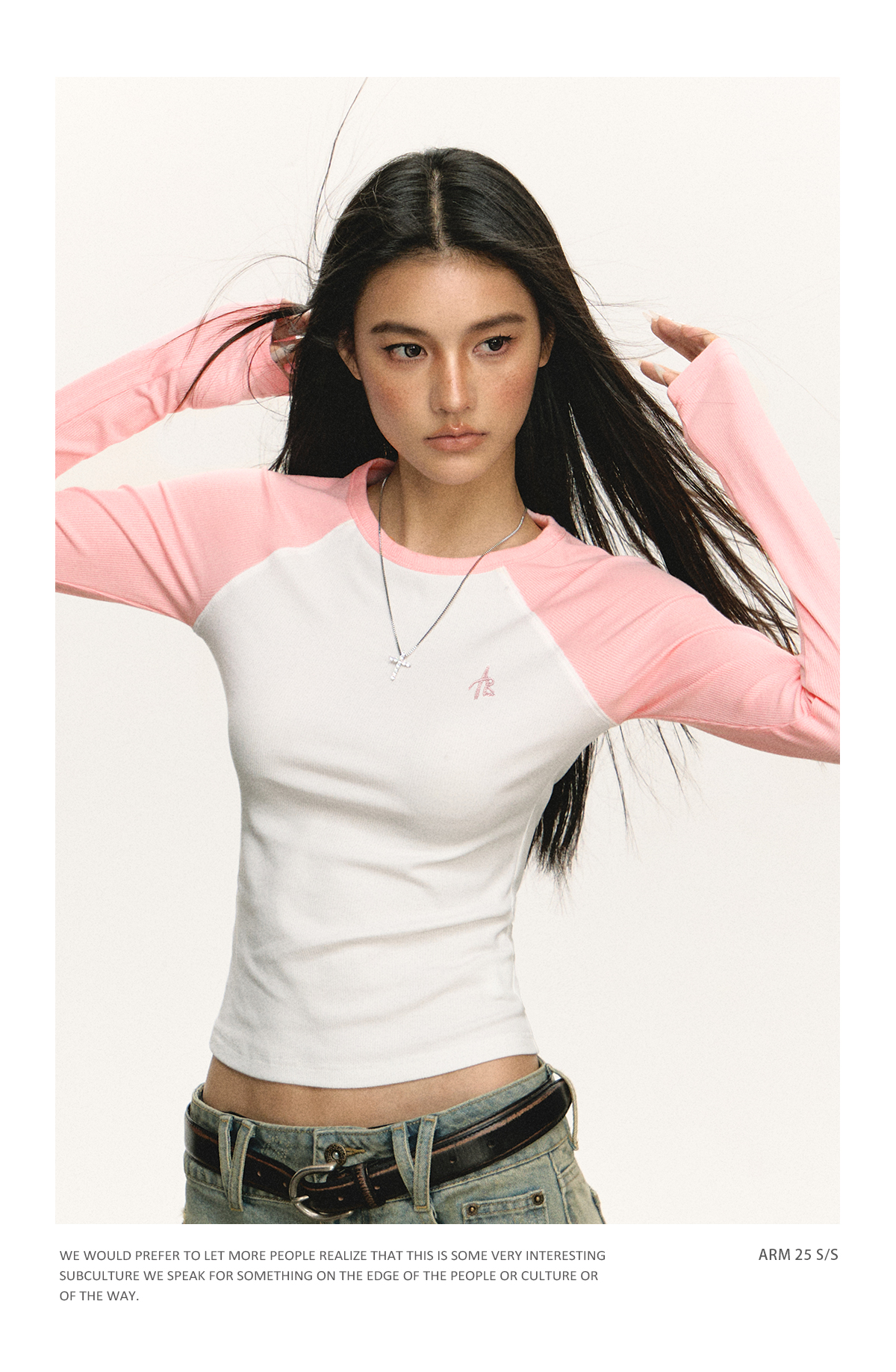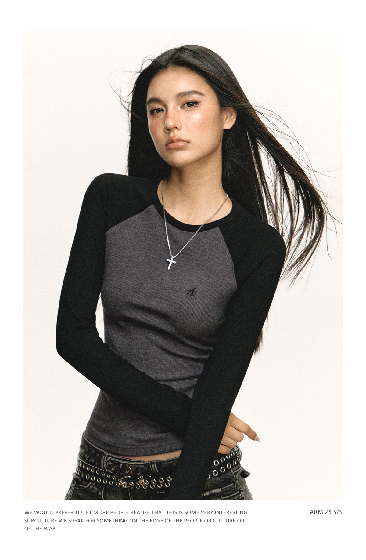Ariseism 美式复古撞色插肩袖长袖t恤女2025春秋新款修身打底上衣