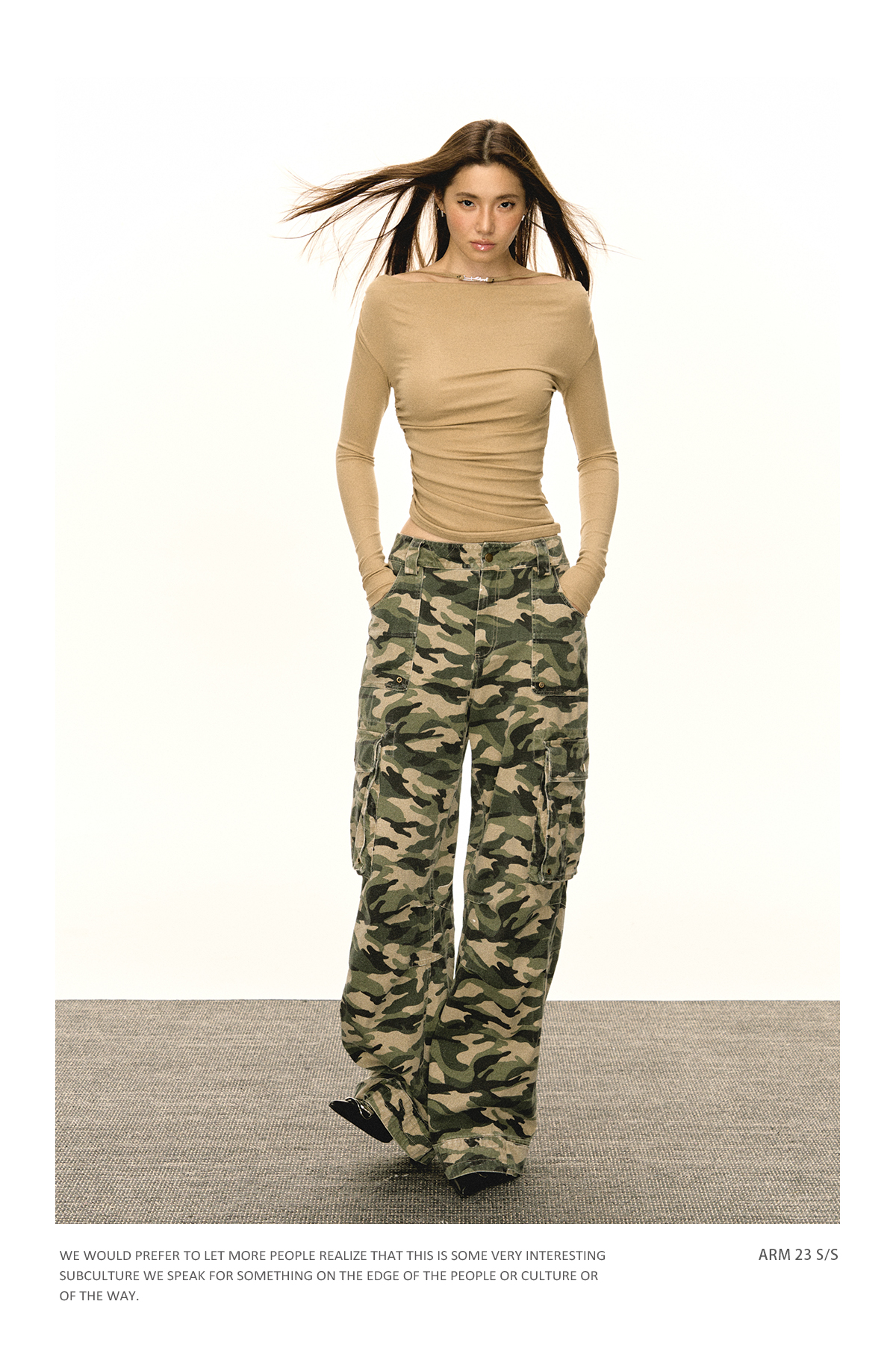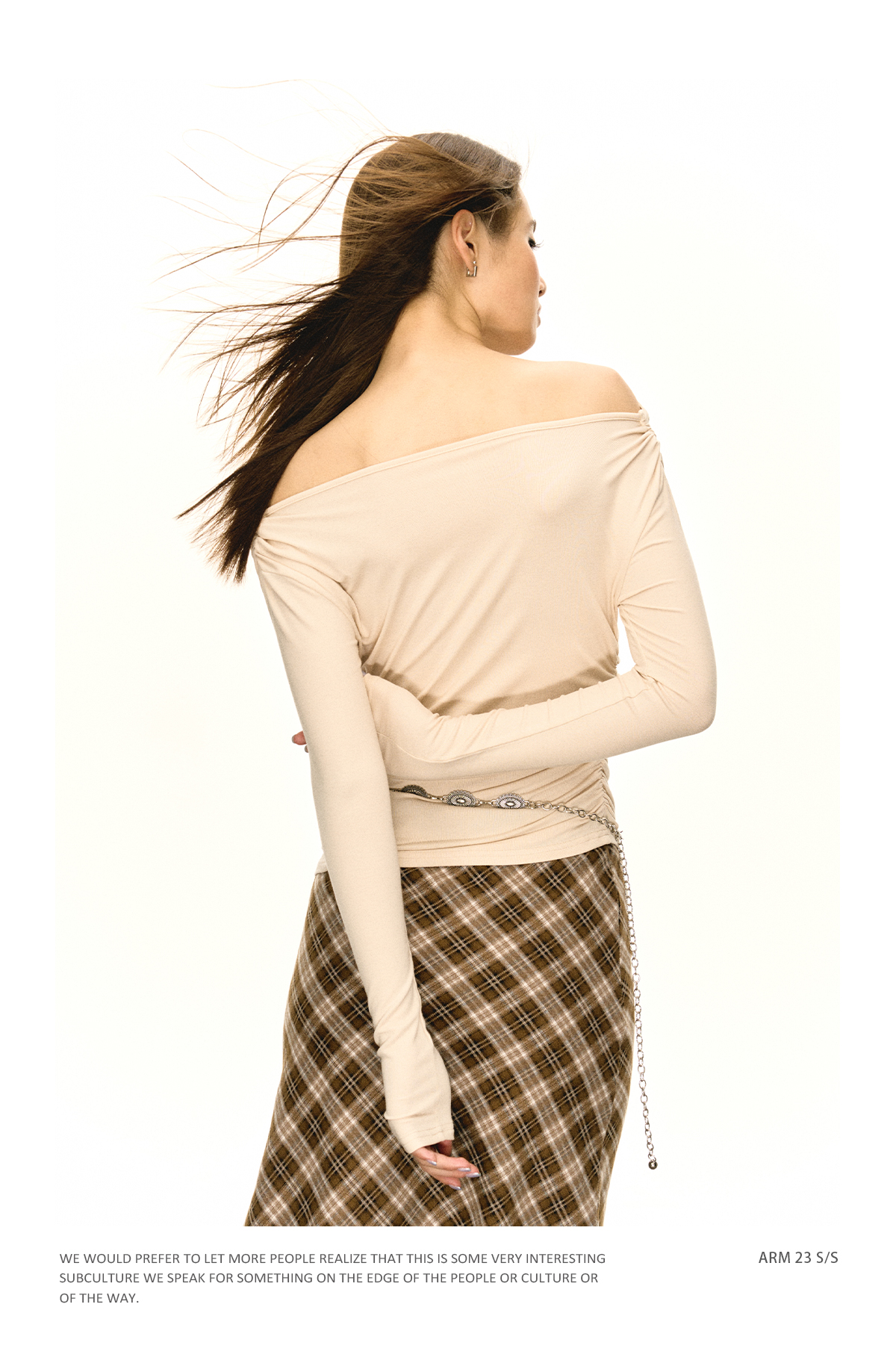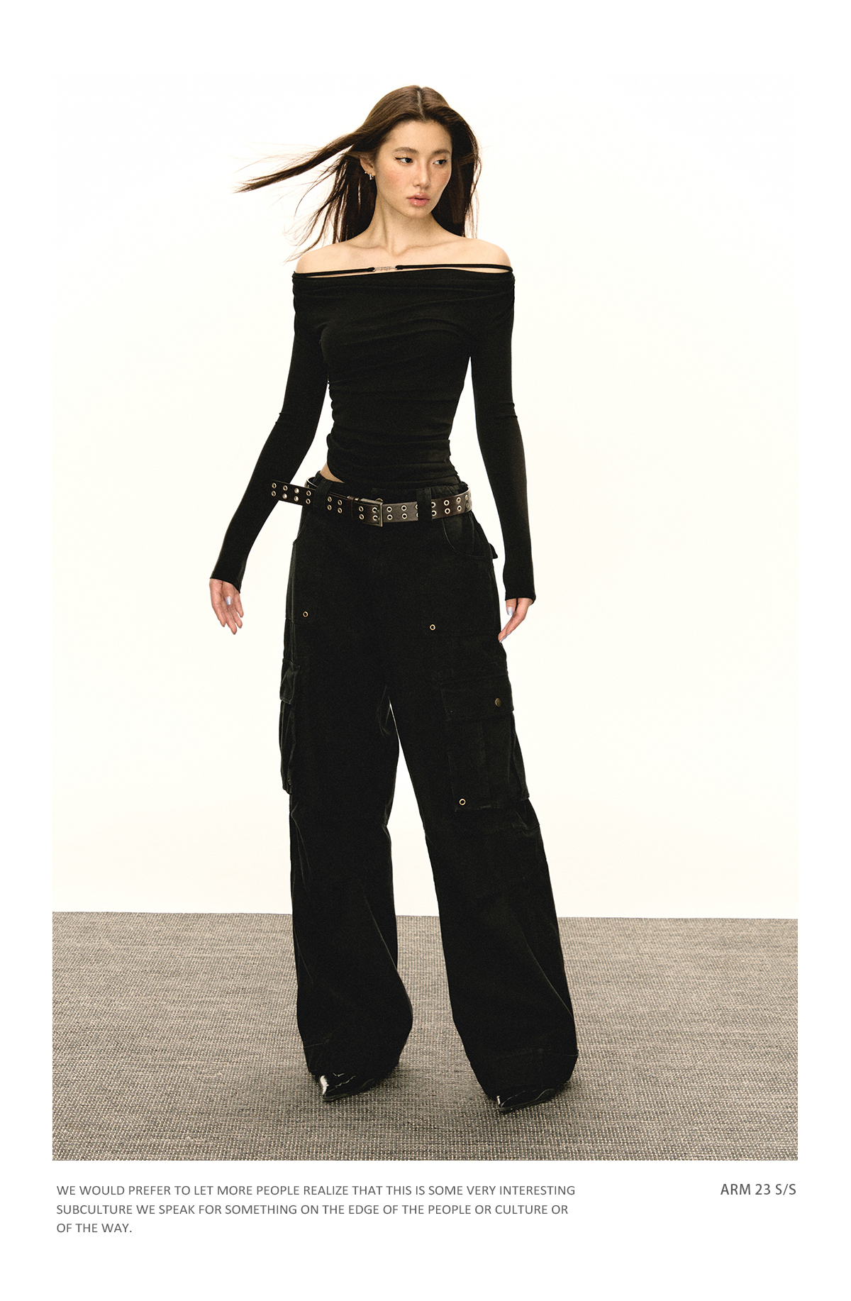 Ariseism美式复古辣妹一字肩长袖露肩上衣秋季季新款内搭打底衫
