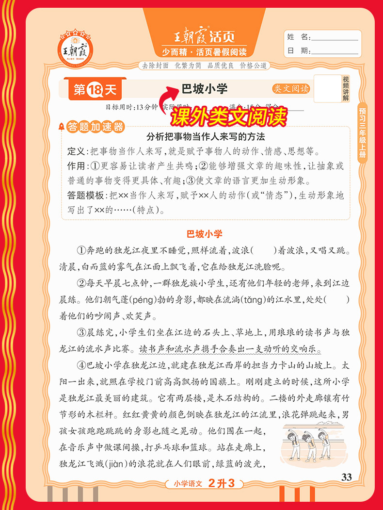 2025秋上册王朝霞活页暑假阅读1-6年级语文