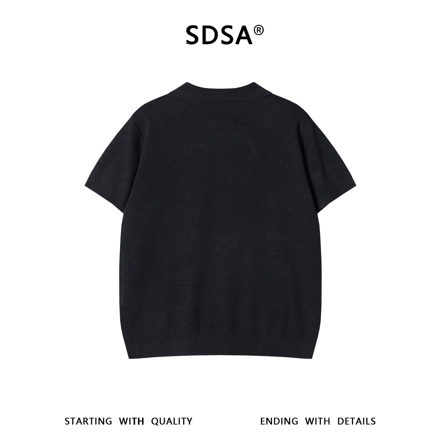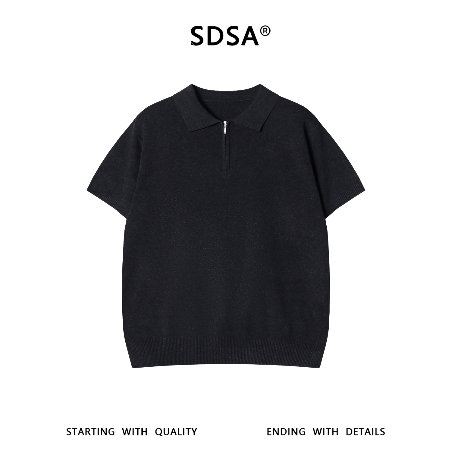 SDSA男装2026新款高贵轻奢老钱风简约纯色半拉链翻领短袖T恤百搭