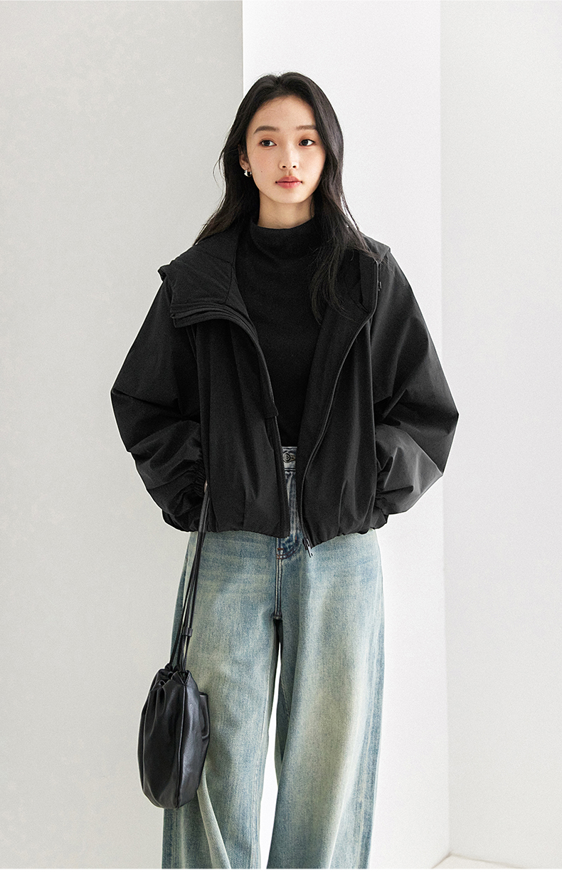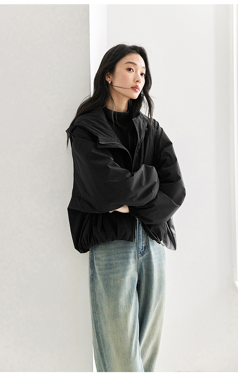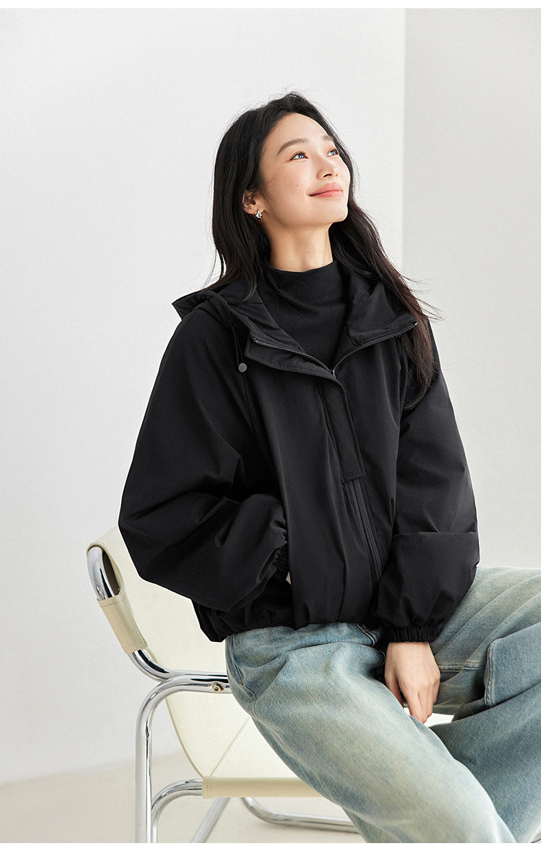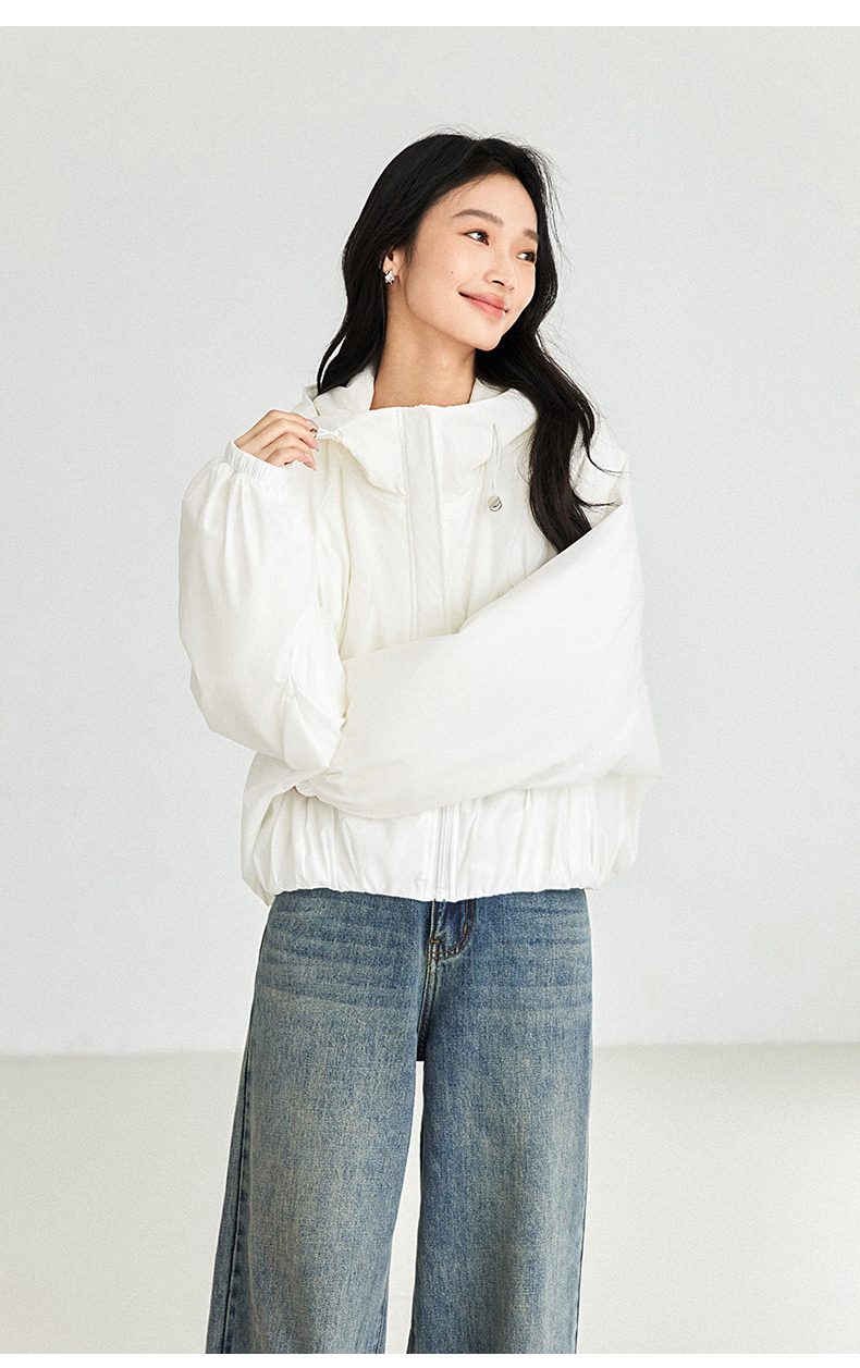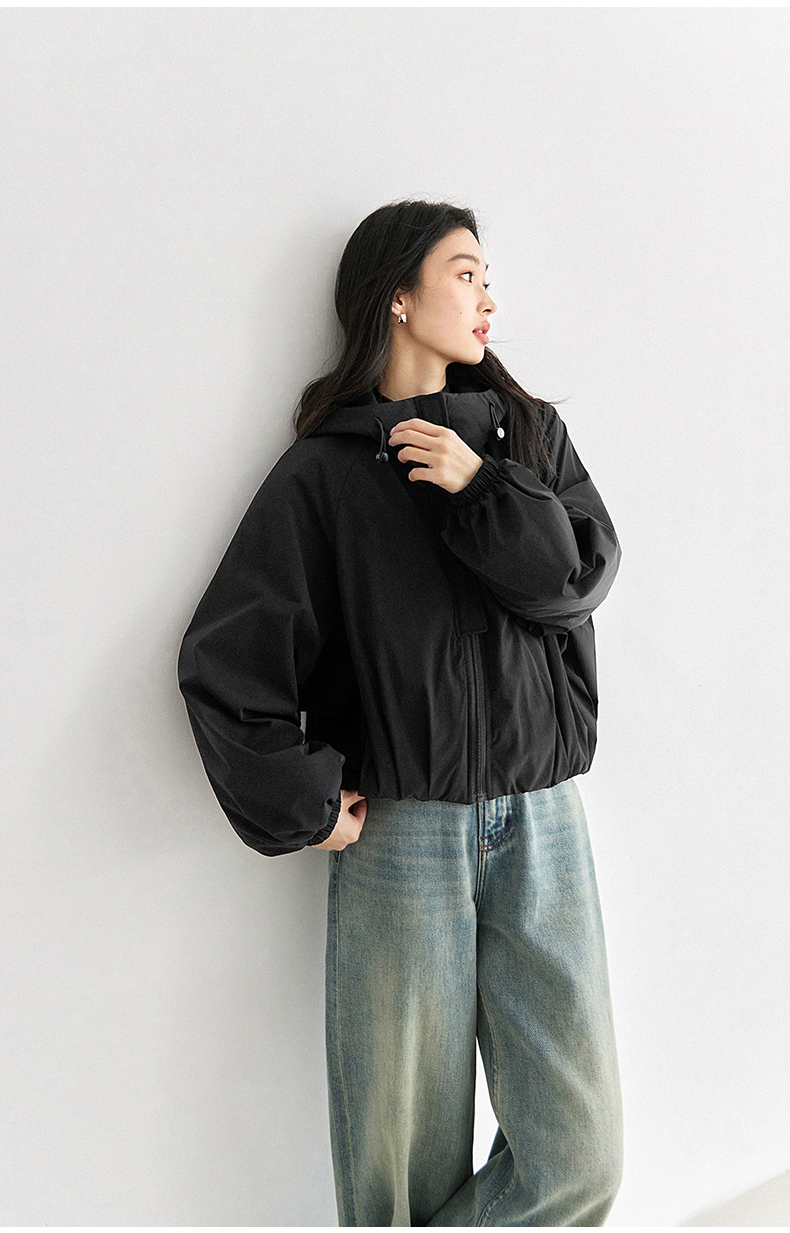 IC羊毛填充短款面包棉服 拉链式长袖纯色连帽外套