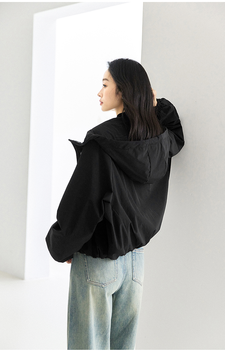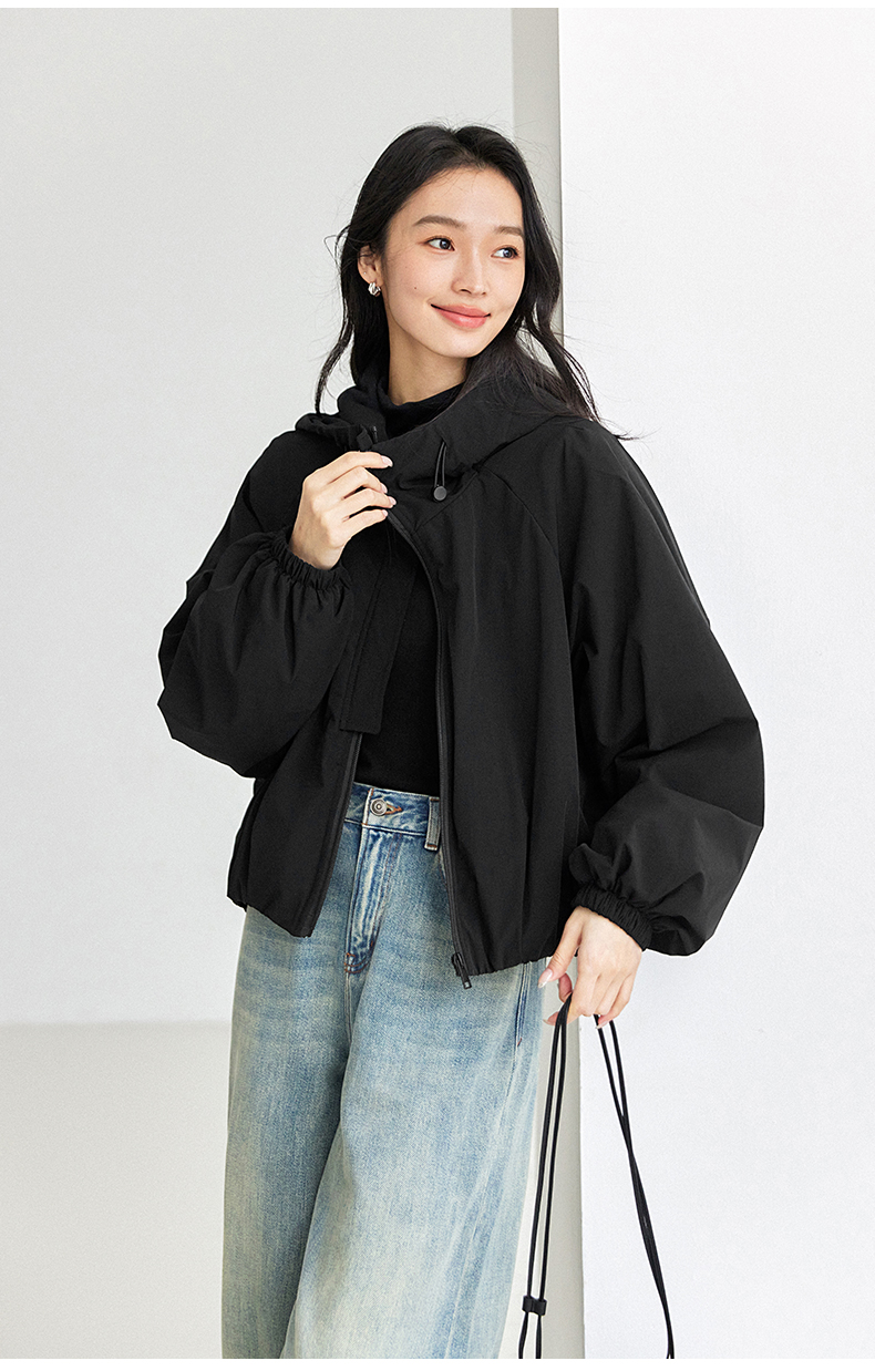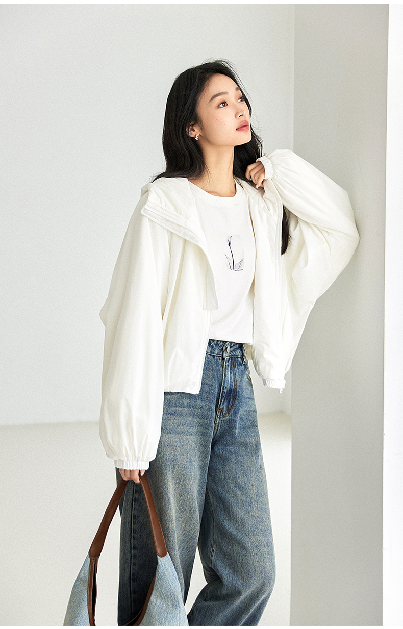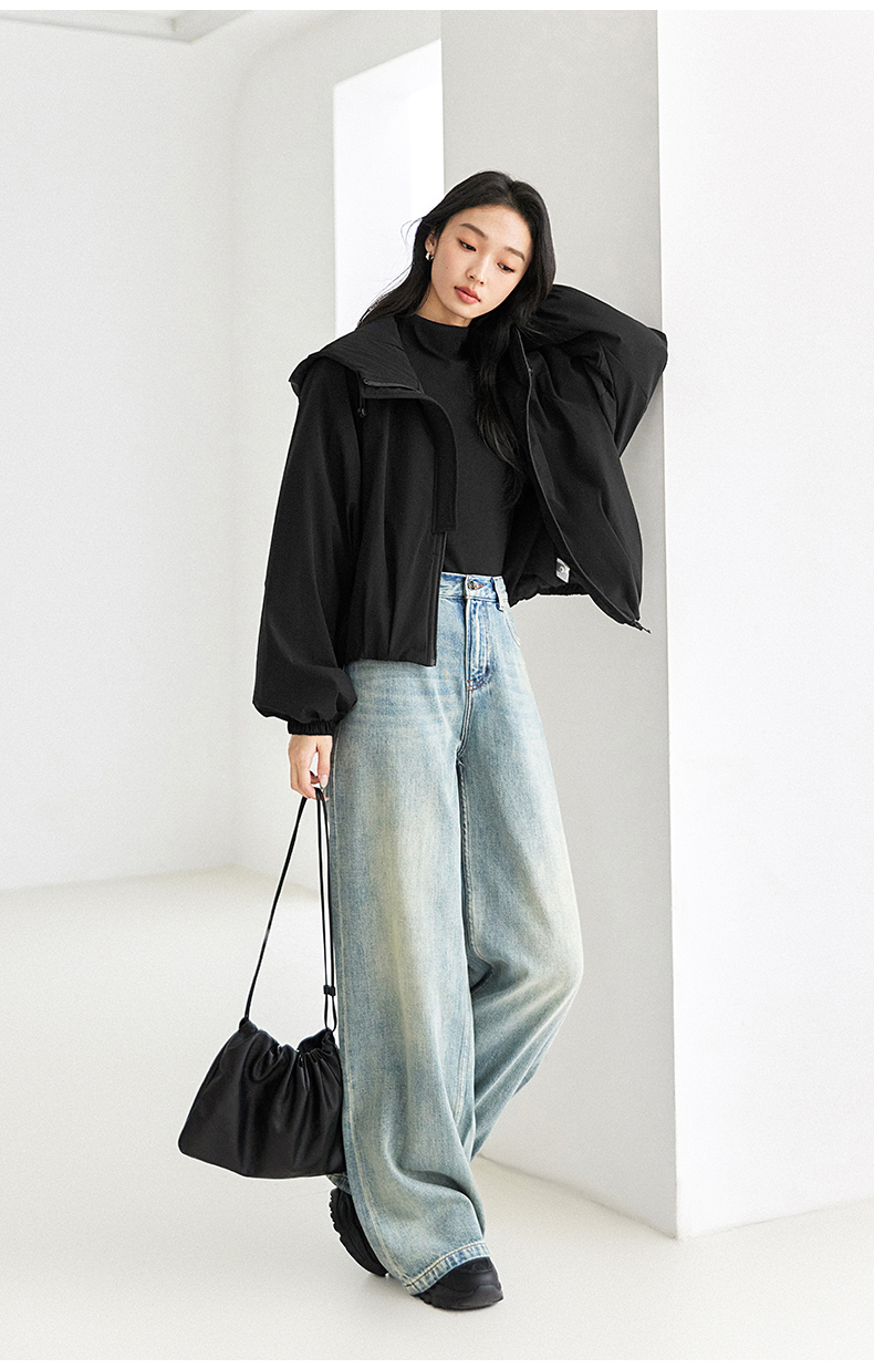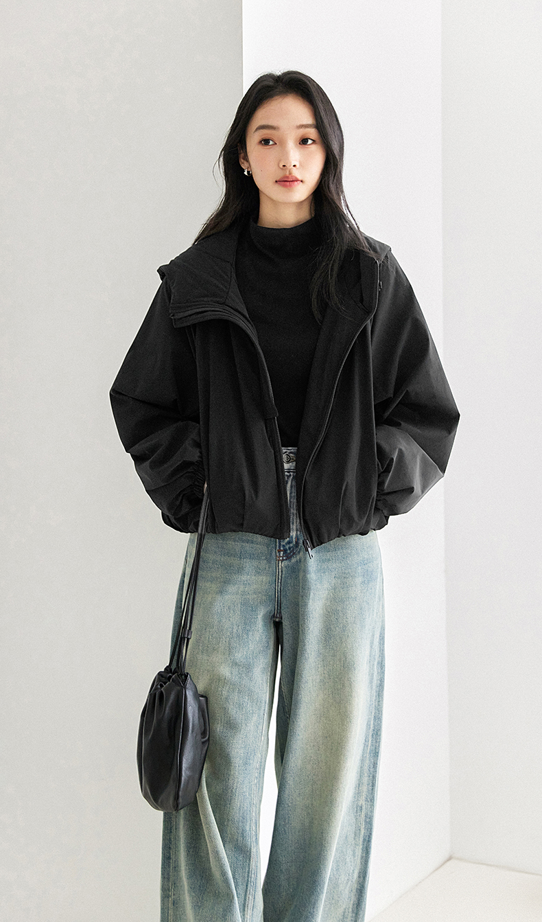 IC羊毛填充短款面包棉服 拉链式长袖纯色连帽外套
