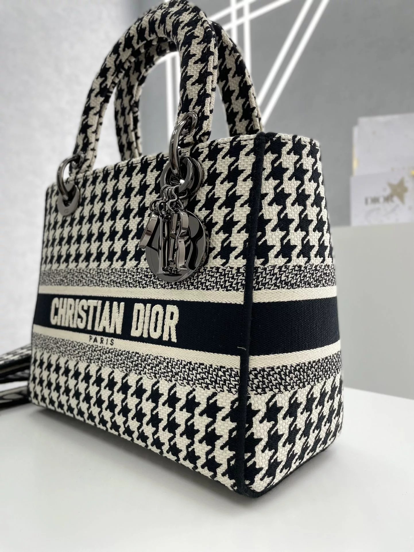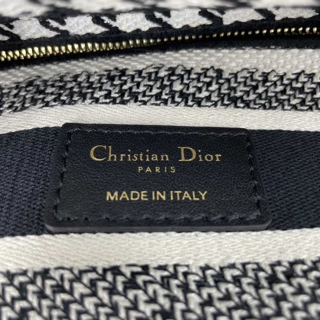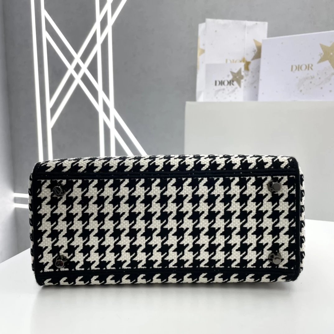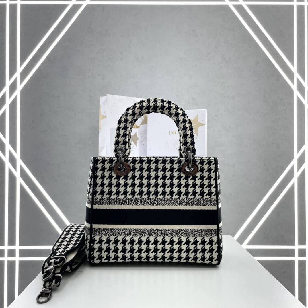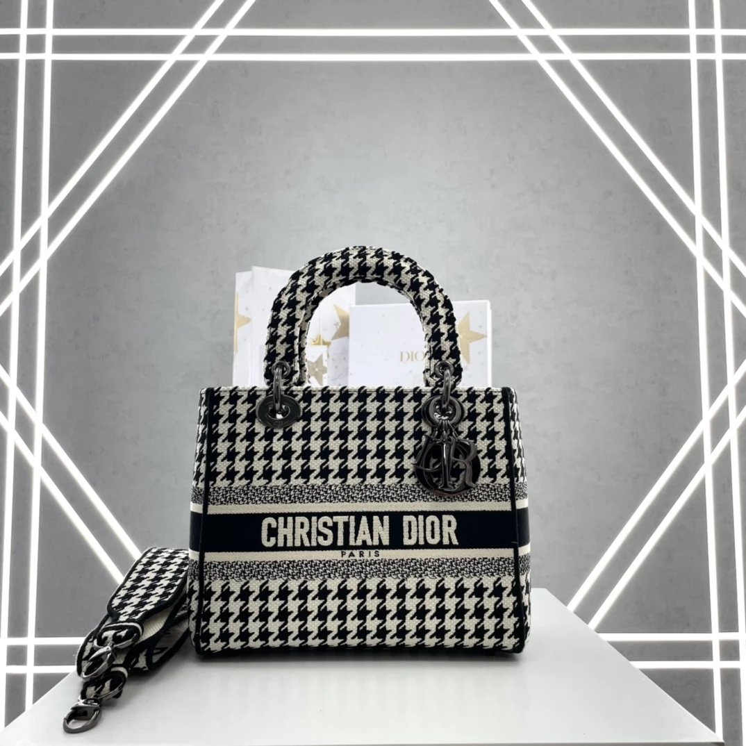 Lady D-Lite千鸟格戴妃手提包 ,千鸟格纹图案刺绣搭配富有质感的饰面金属!D家