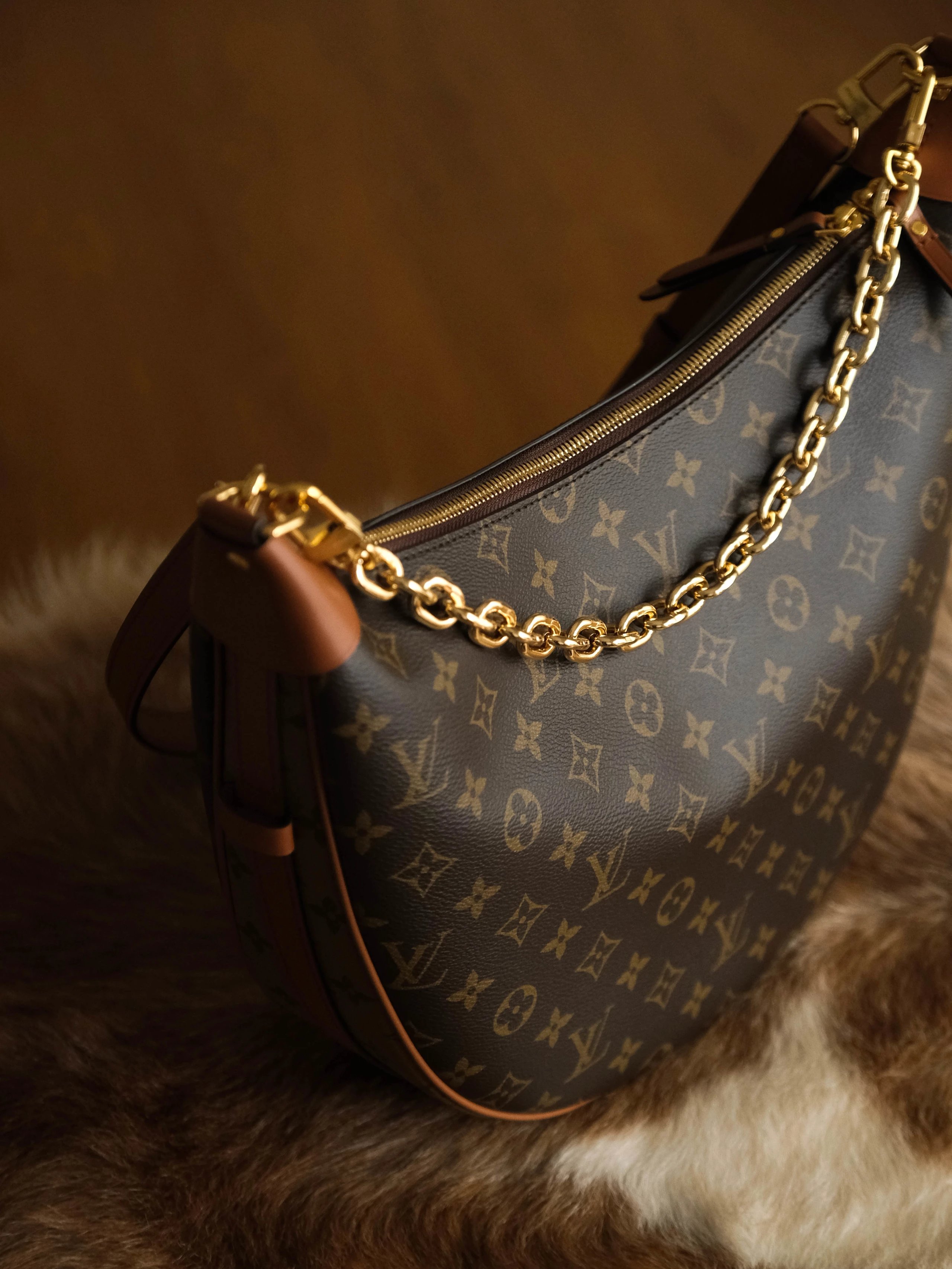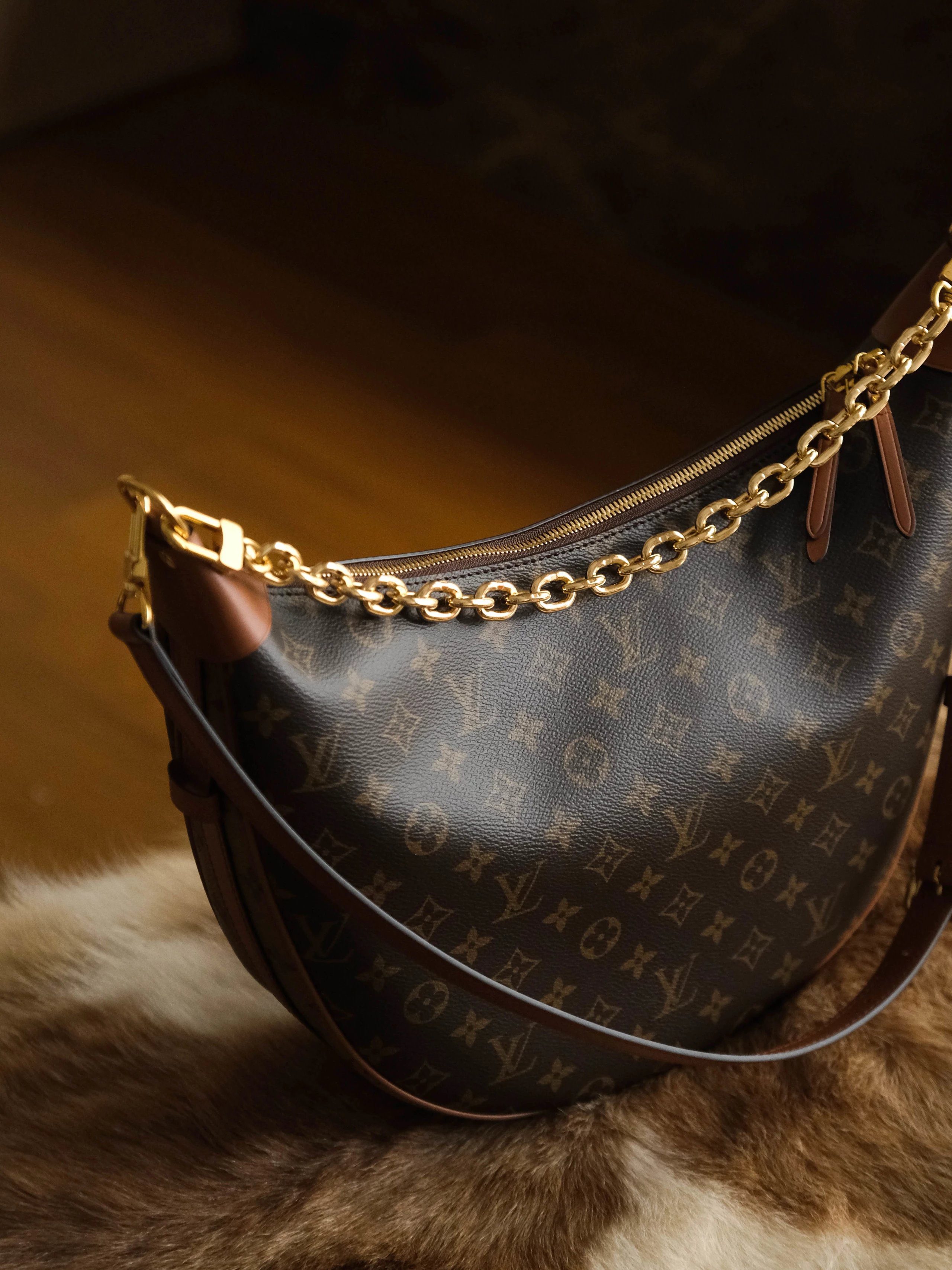老花配皮链条肩带