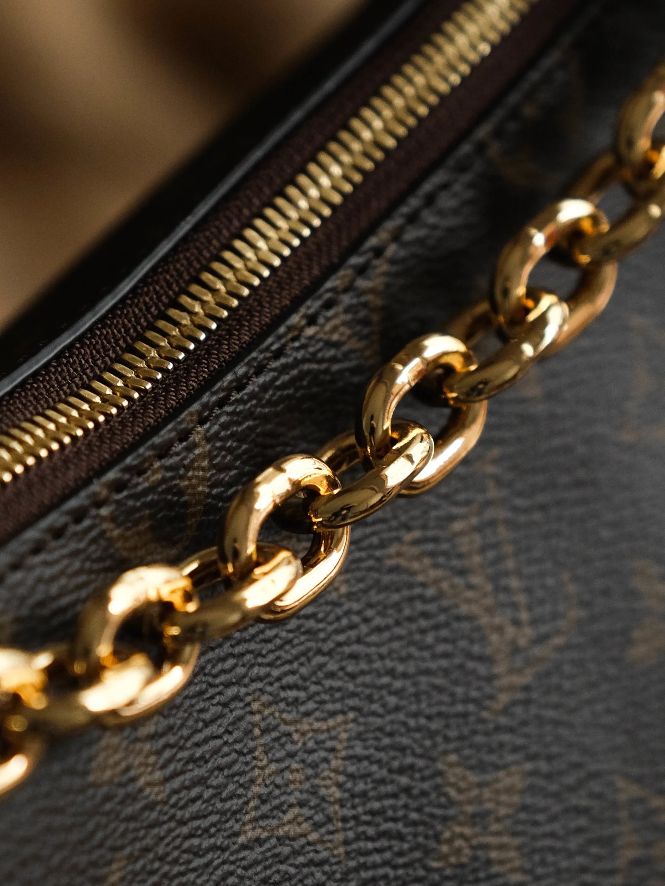 由新款豌豆包增加了一根金属短链条,可拆卸