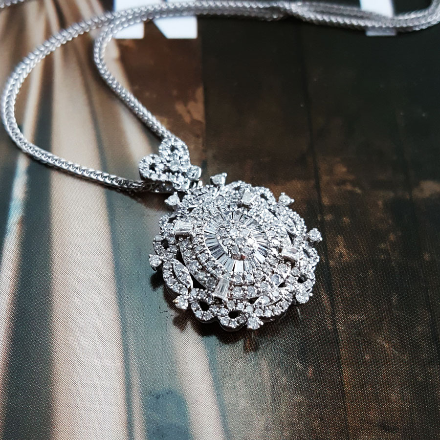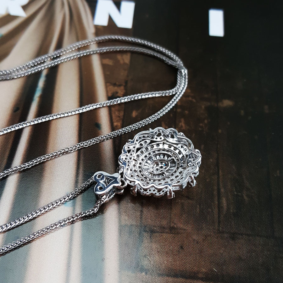 款式 | AU750白金经典简约设计师款0.90克拉群镶钻石吊坠项链 |