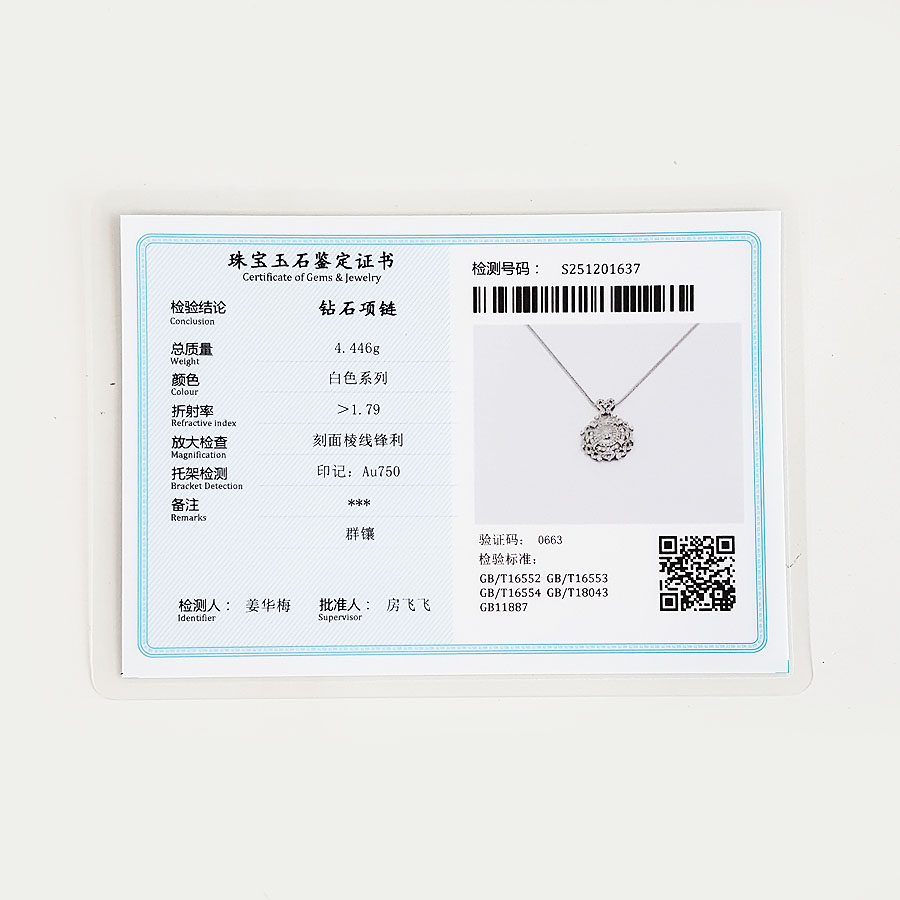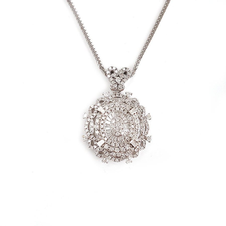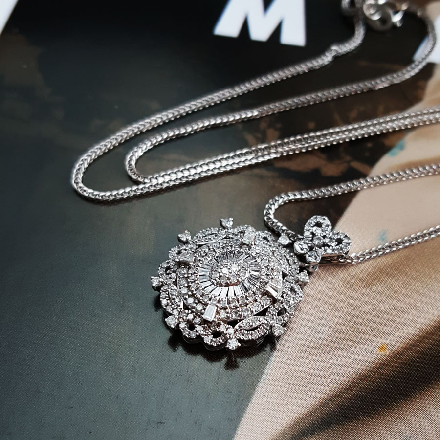 【天然正品】AU750白金经典简约设计师款0.90克拉群镶钻石吊坠项链 链长:45CM(皆取最大值)231225TJ43