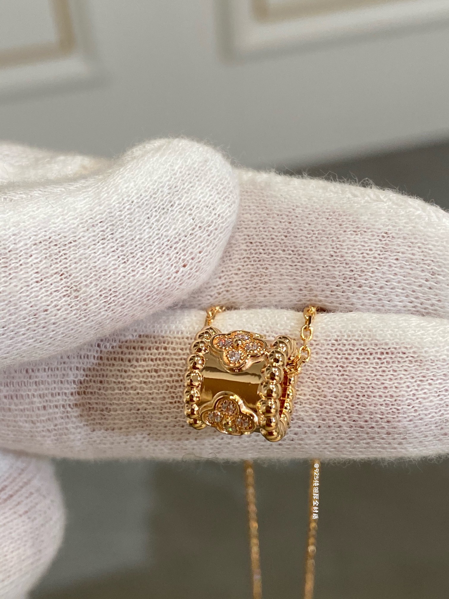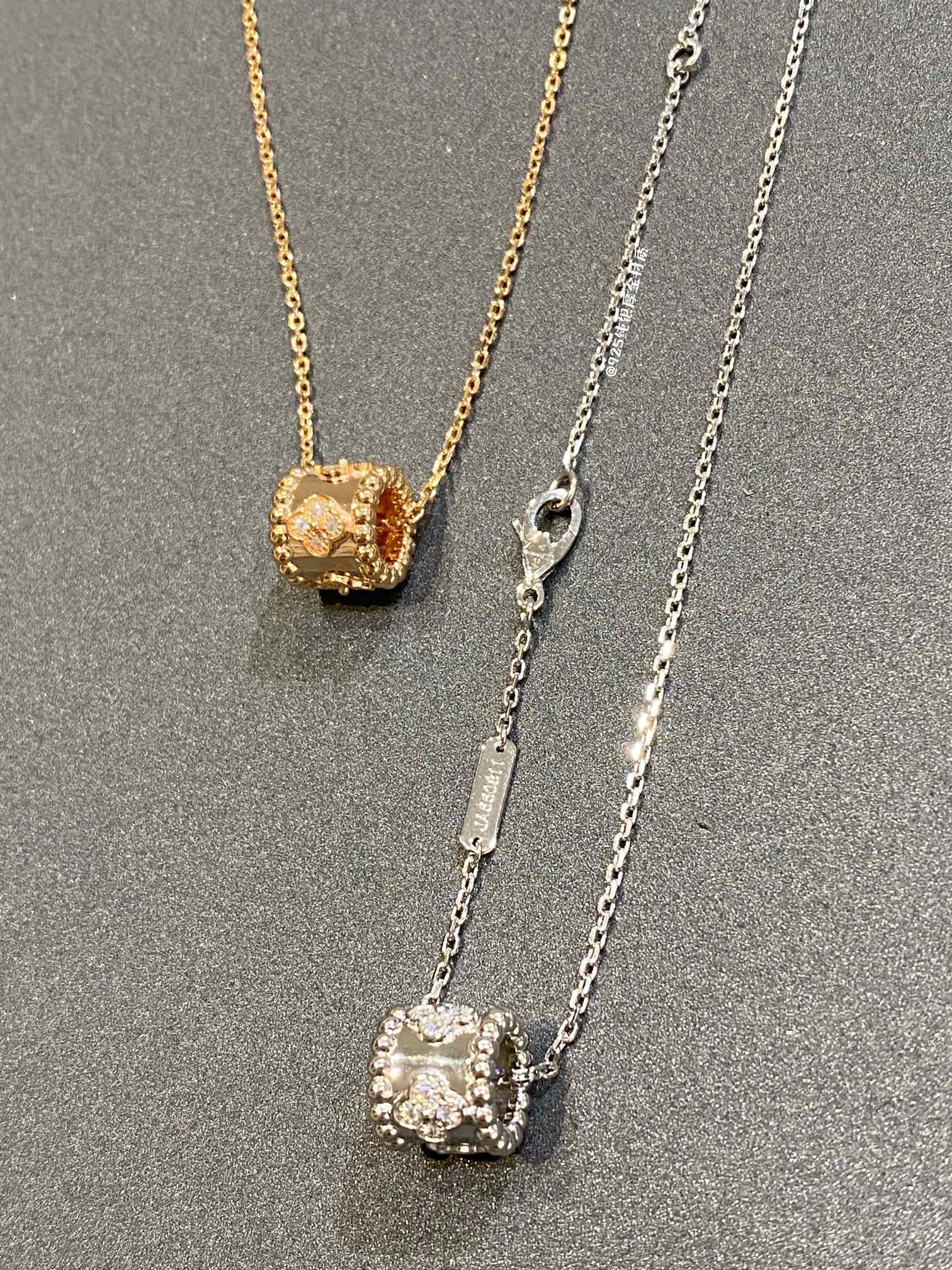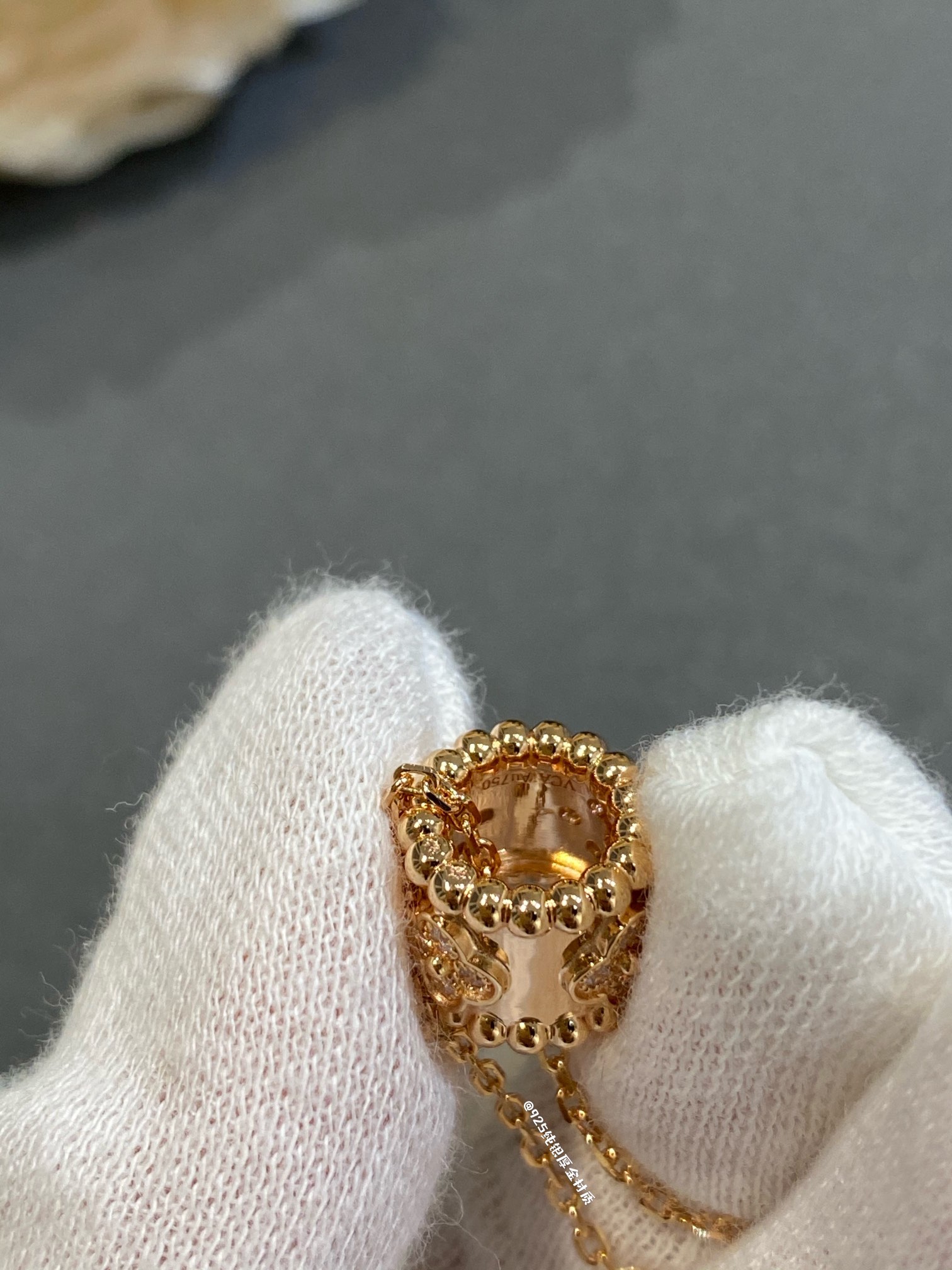 这款来来回回折腾了几个月 一直是珠边和四叶草部分做的不到位,经典款我的要求都很高,浮起的四叶草很难定型,边缘小珠珠不能太小更不能太肥大,否则就会失去这款的味道,定型以后师傅对于每一个角落都认真抛光打磨,即便是珠边缝隙里都不能放过,否则出品就会变成毫无立体感的小筒球 对爱好者绝对不能放过这款,复古又大牌的质感,而且无天然石,比较好打理。小吊坠一直都是百搭款,不挑人