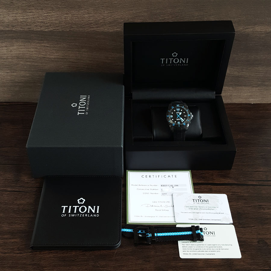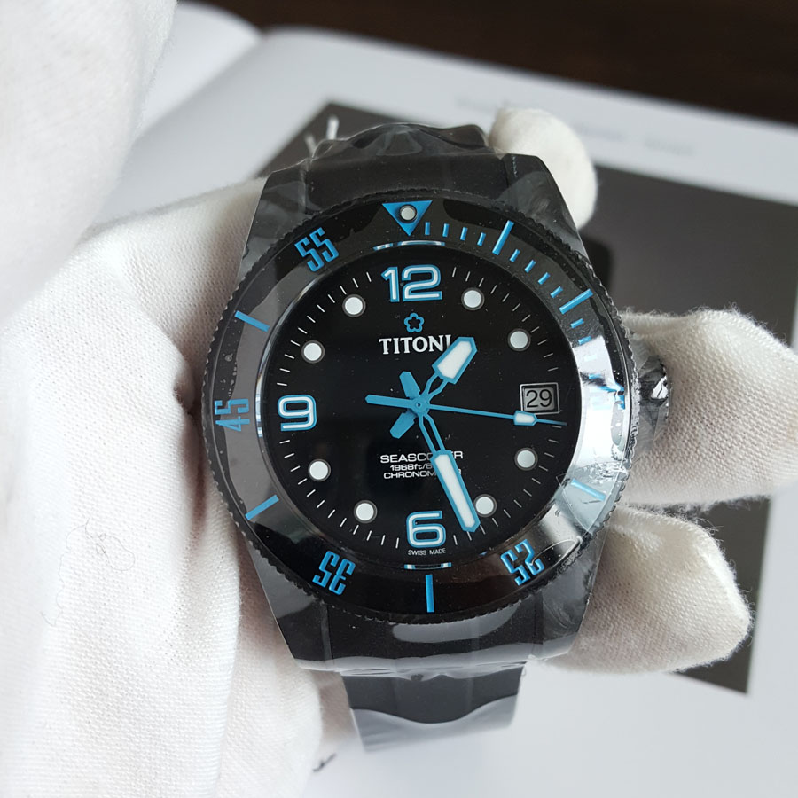 【99新】TITONI 梅花83600C-BL-256天文台认证自动机械机芯日期显示42MM(男款)Seascoper 海洋探索系列碳/陶瓷180426NJ36