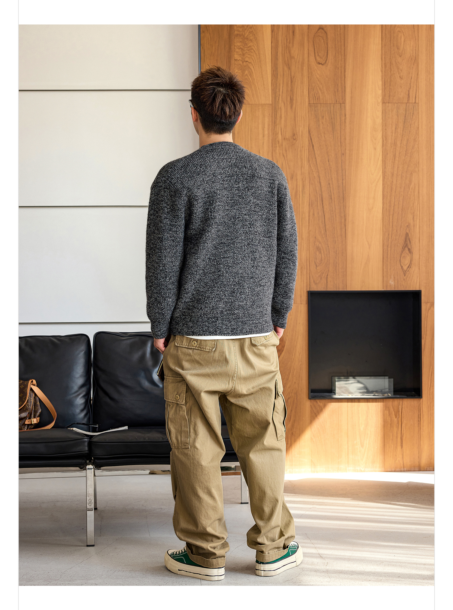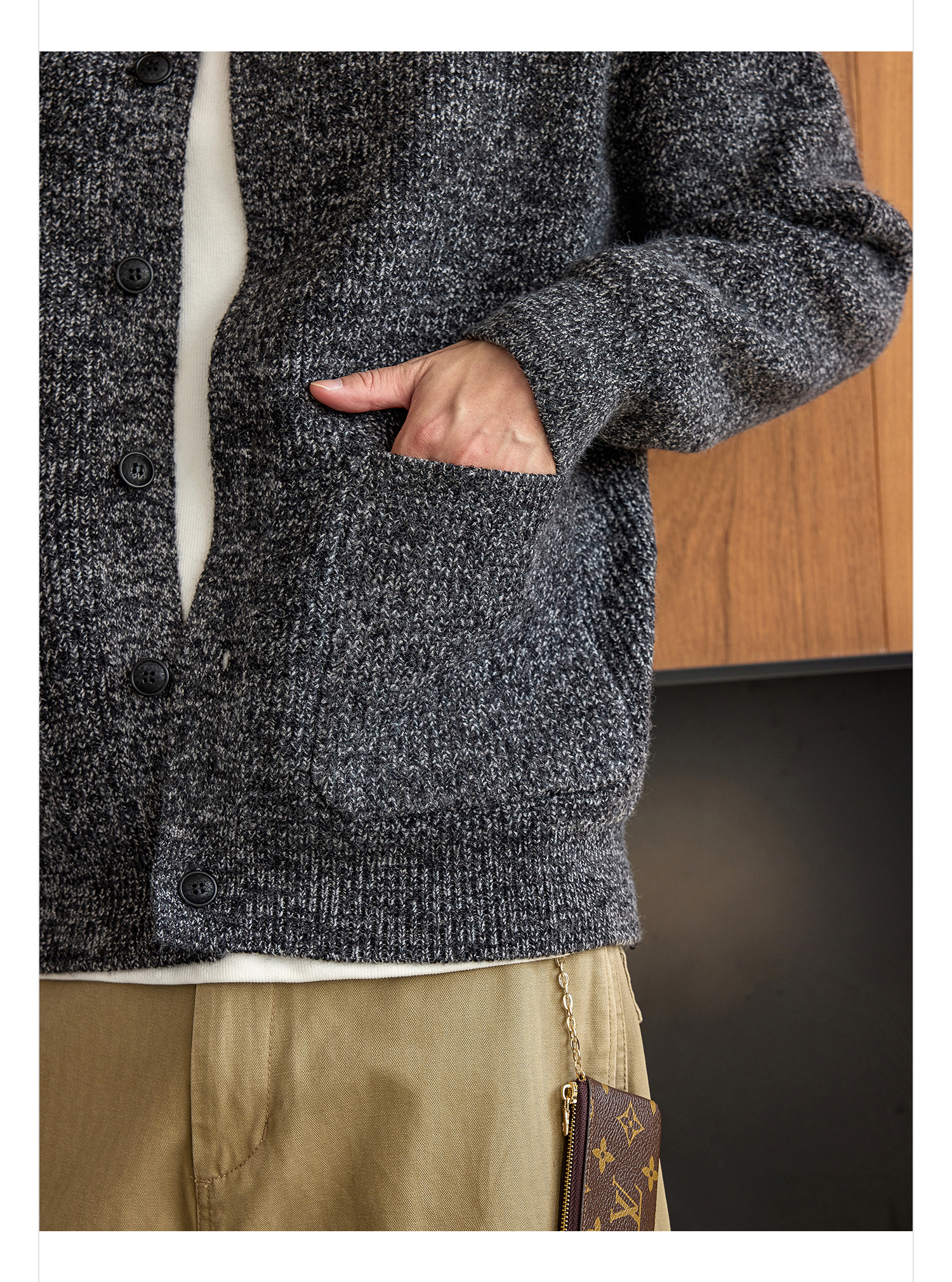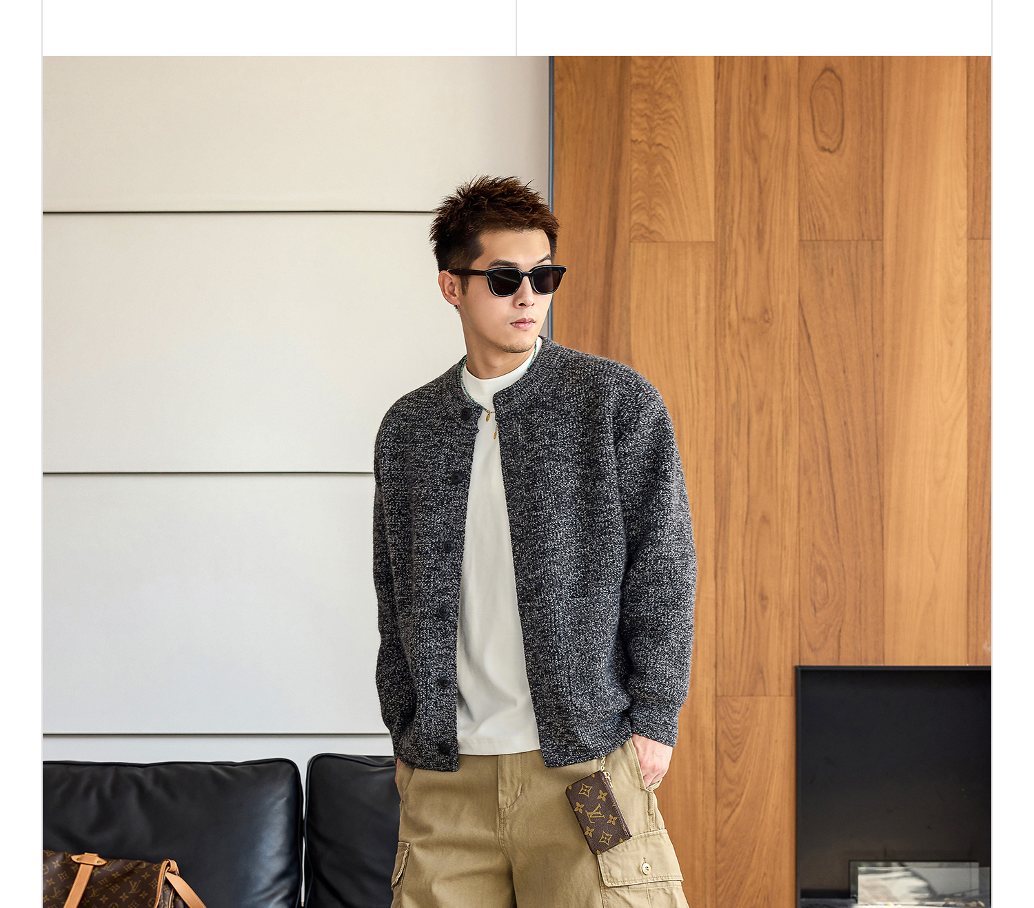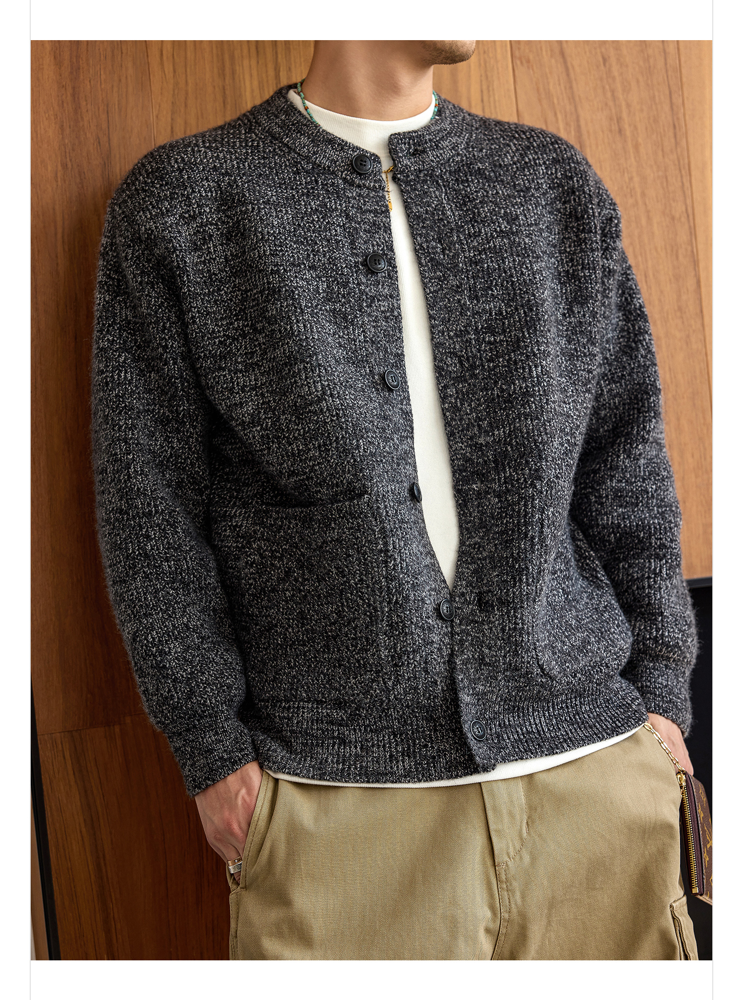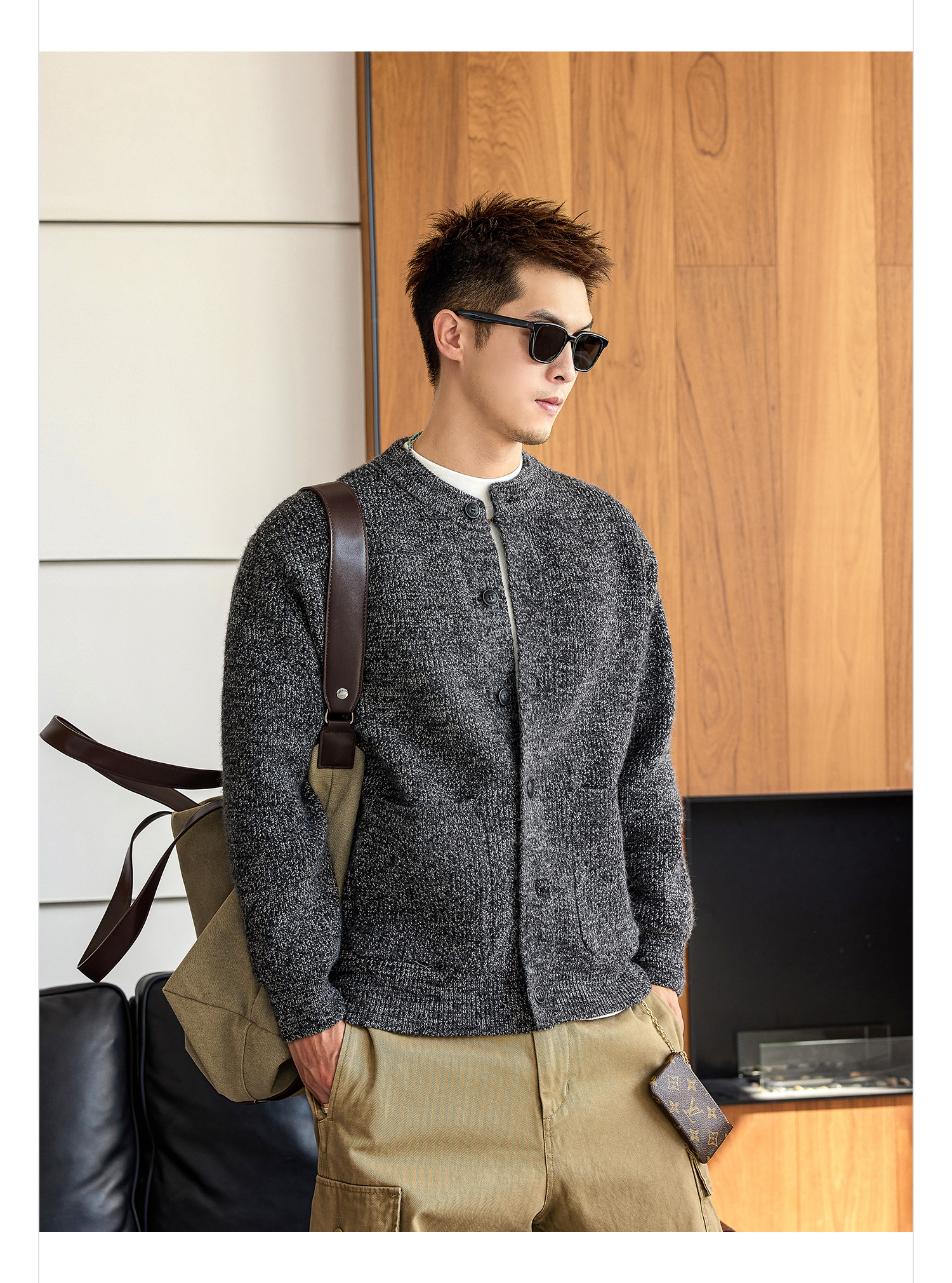 徐太浪【拼接口袋 cleanfit】黑色开衫毛衣男秋冬保暖针织衫外套