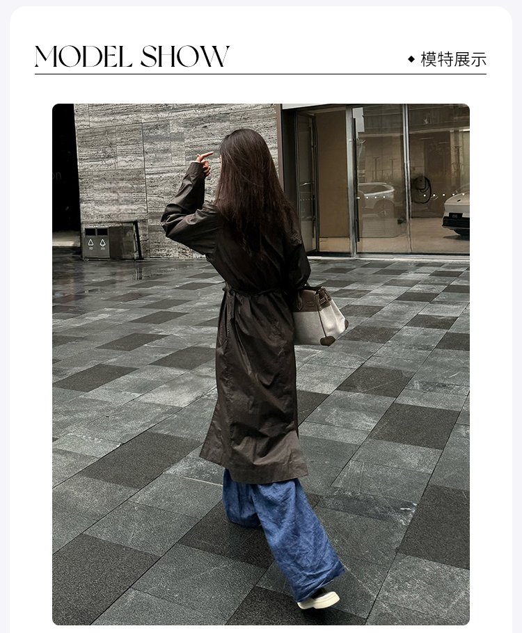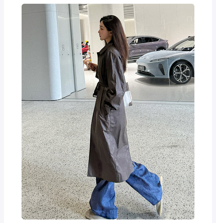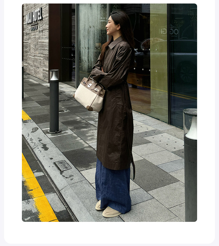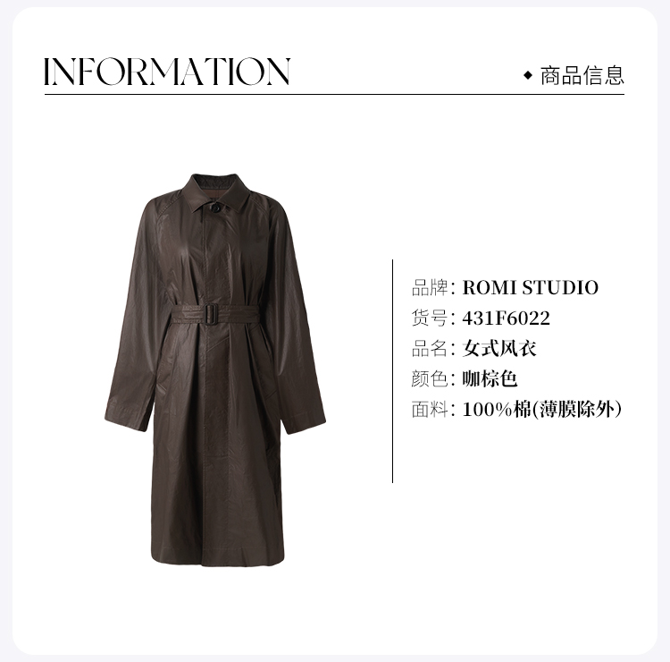 ROMI STUDIO“棕标甄选”100%哑光涂层压胶棉腰带廓形风衣 431F6022