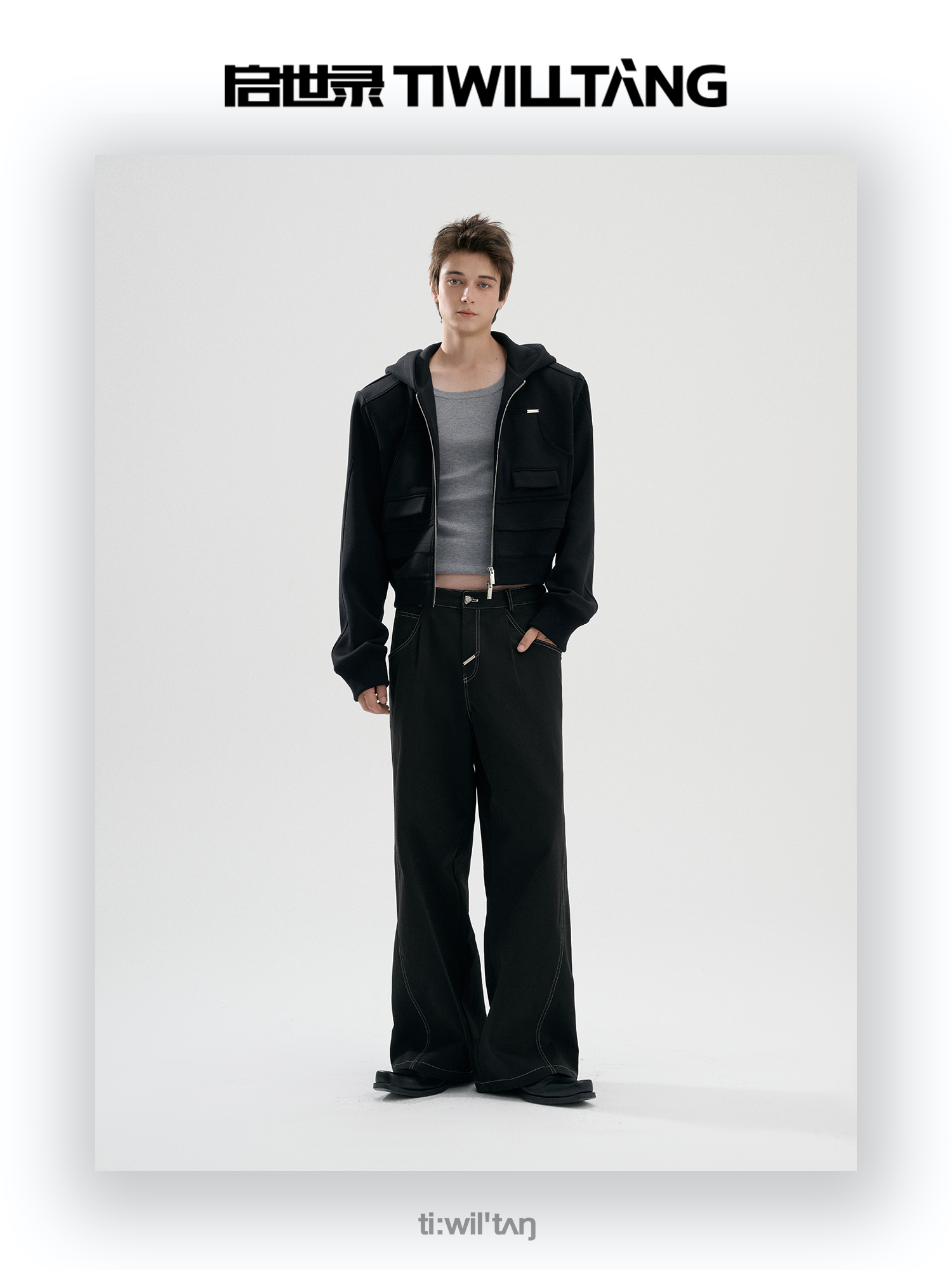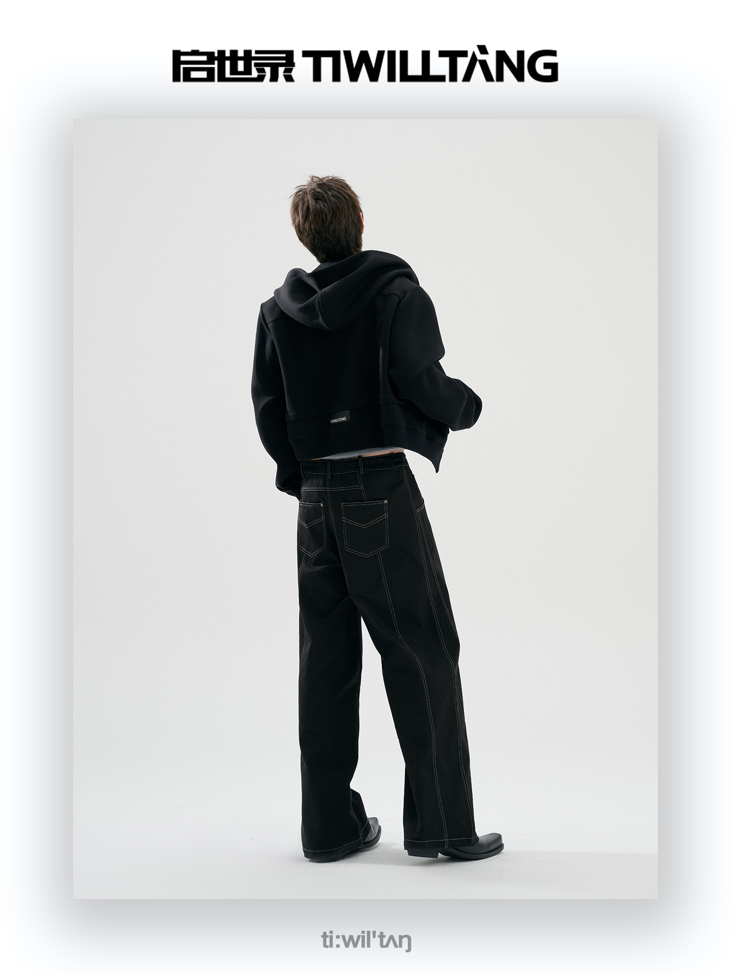 TIWILLTANG启世录“裂轨仰止”错位压褶两件套衬衫设计感衬衣男