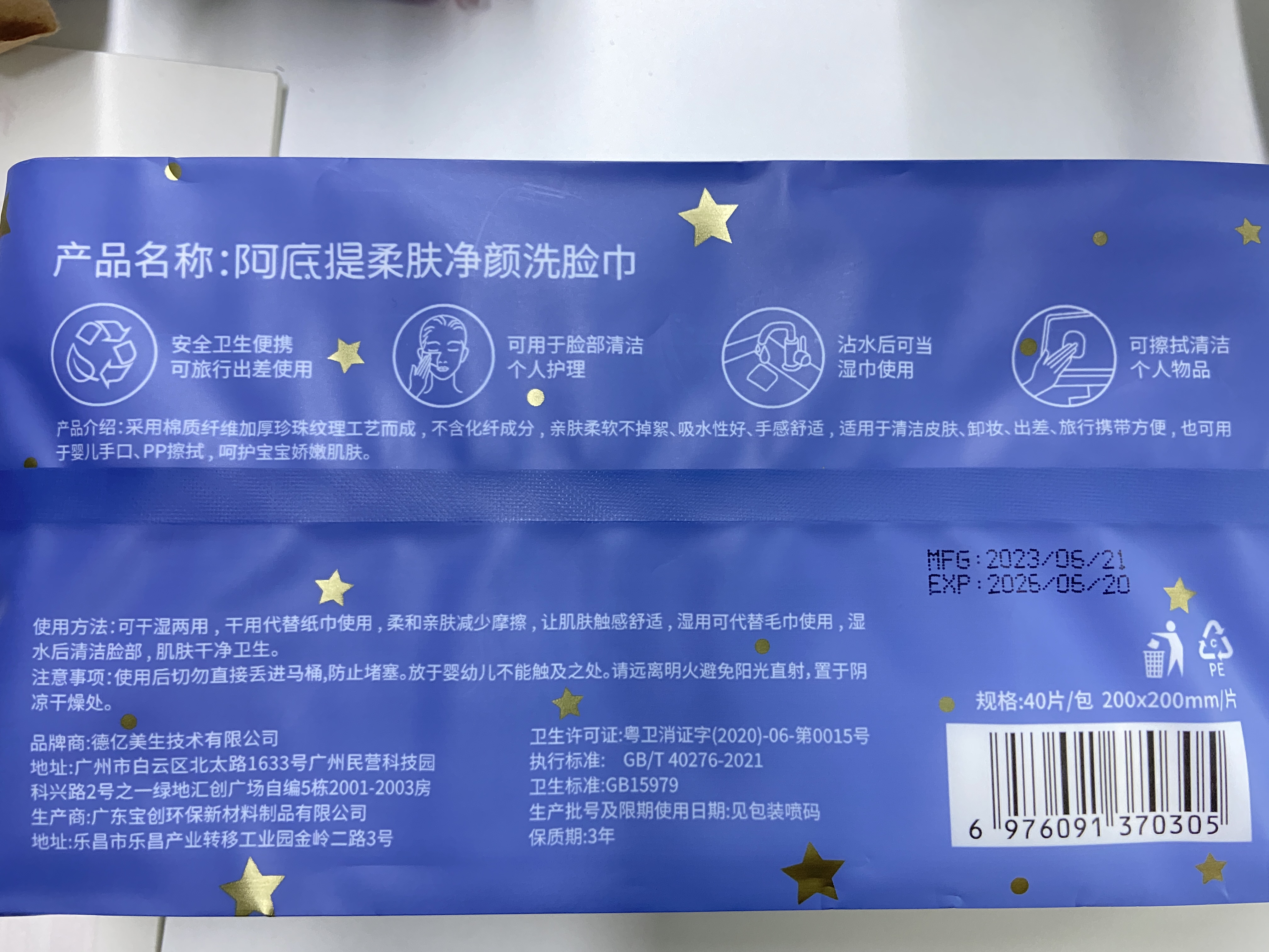 【9.9元2包】阿底提柔肤净颜洗脸巾(2023版蓝色款)40片/包