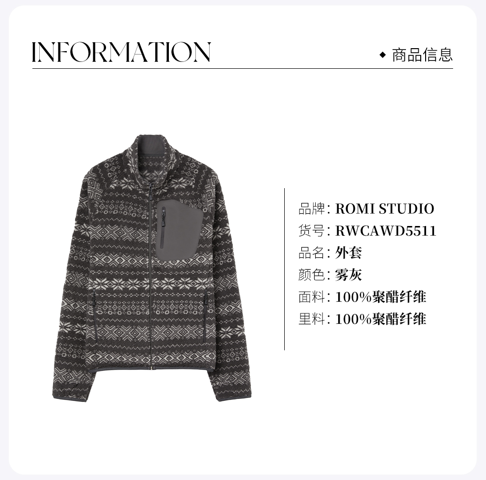 ROMI STUDIO“复古知秋”抓绒保暖八角花纹摇粒绒短外套RWCAWD5511
