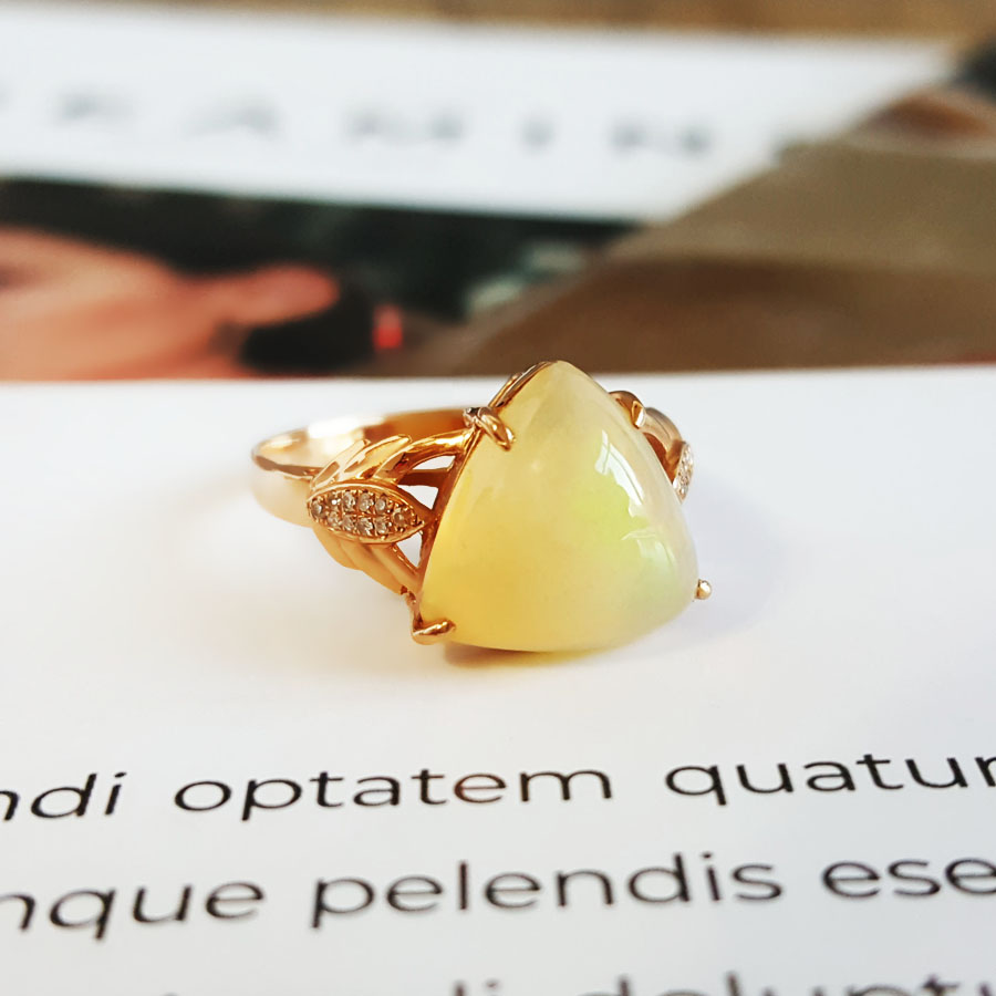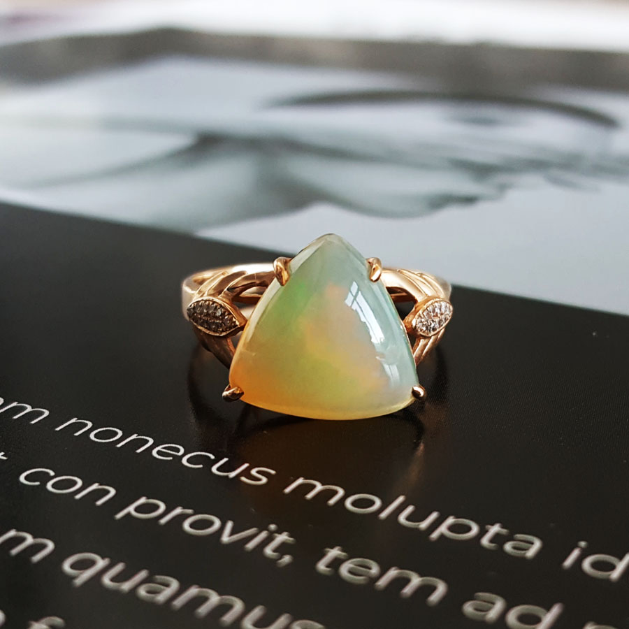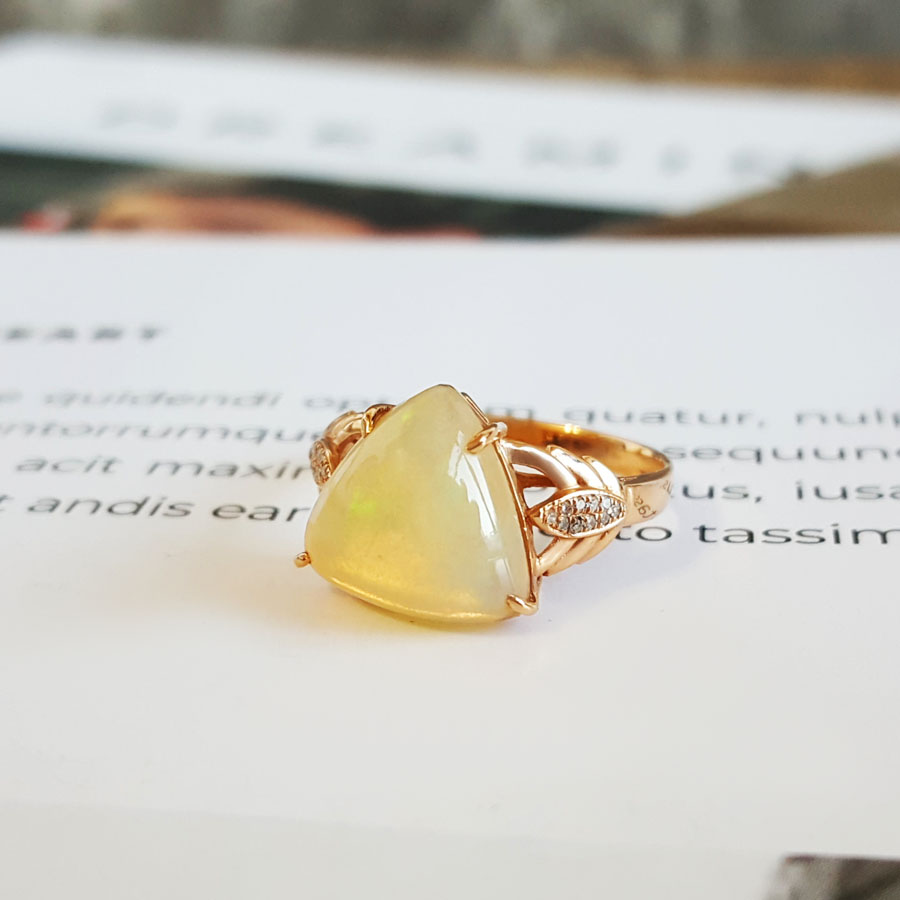 名称 | AU750玫瑰金镶钻镶天然三角造型欧泊戒指 |