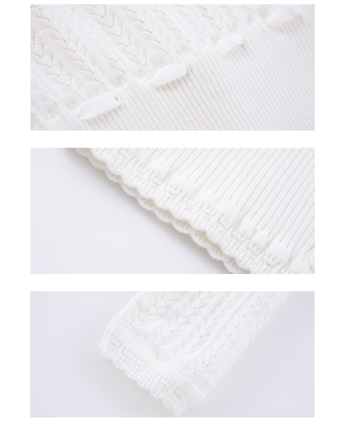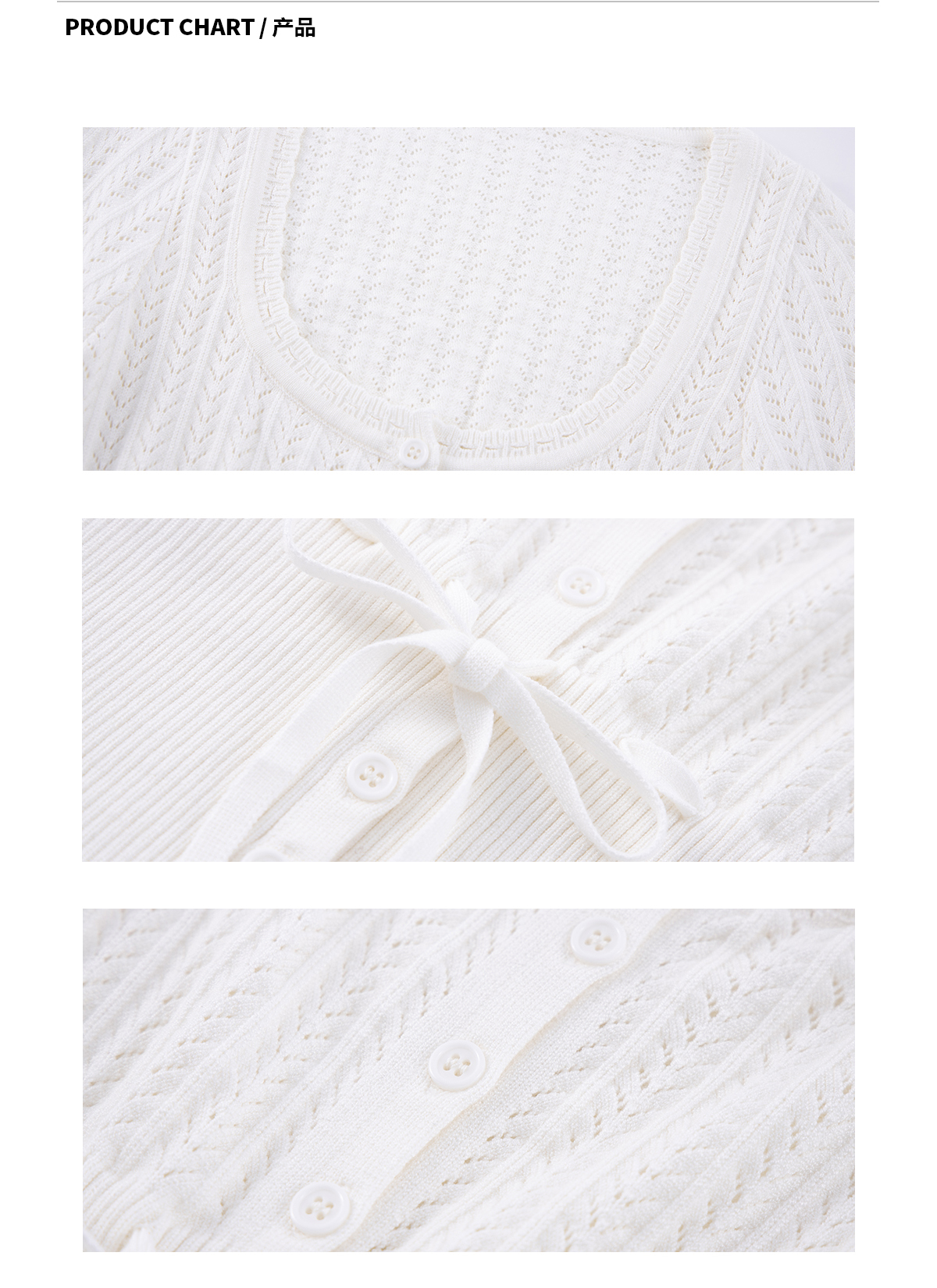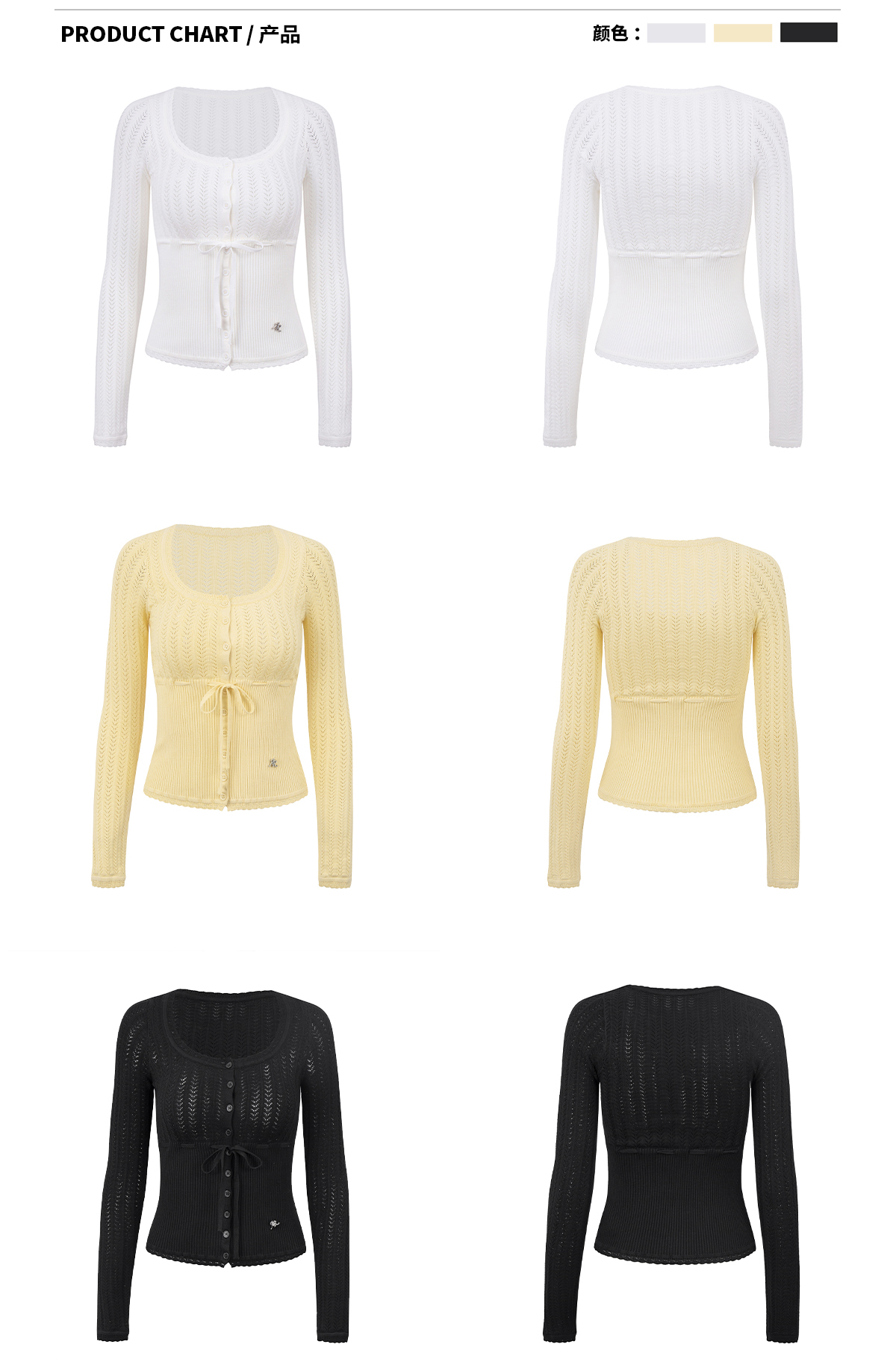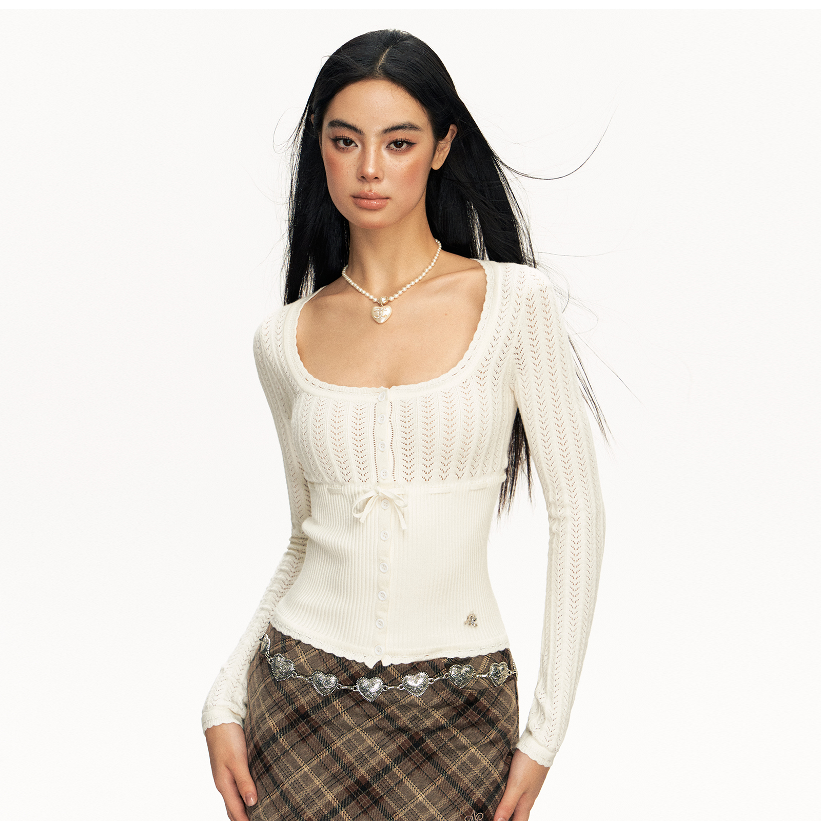 Ariseism 美式复古设计感镂空提花长袖针织衫女春季新款修身上衣
