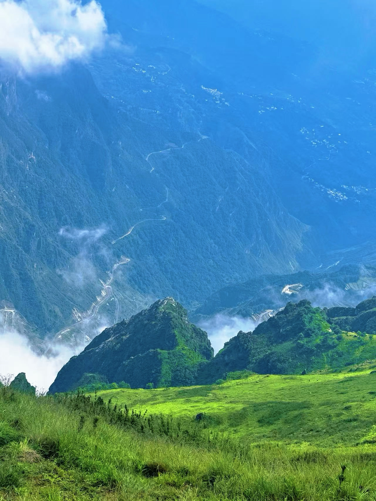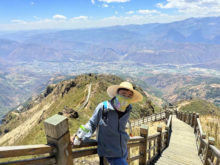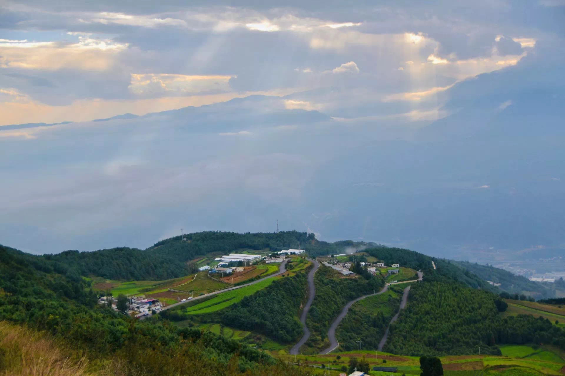 云雾缭绕的山峰,蜿蜒曲折的山路,巨出片的栈道,山脚唯美花海,变幻莫测的云雾,体验感拉满。中途也可以看到落日3可俯看整个东川区,远山的视野比轿子雪山更辽阔。