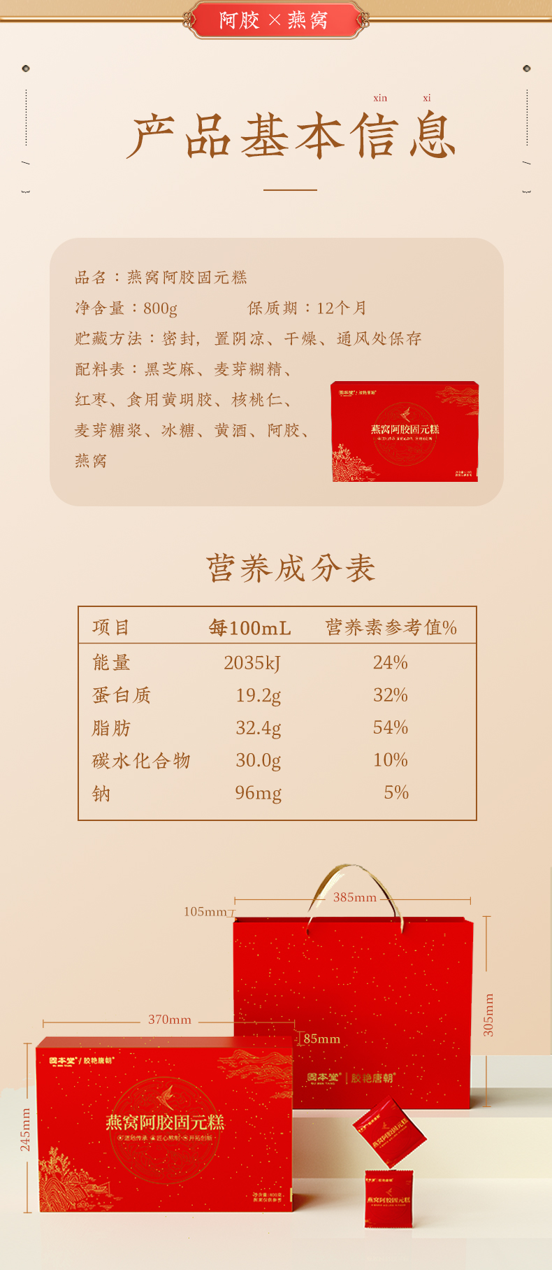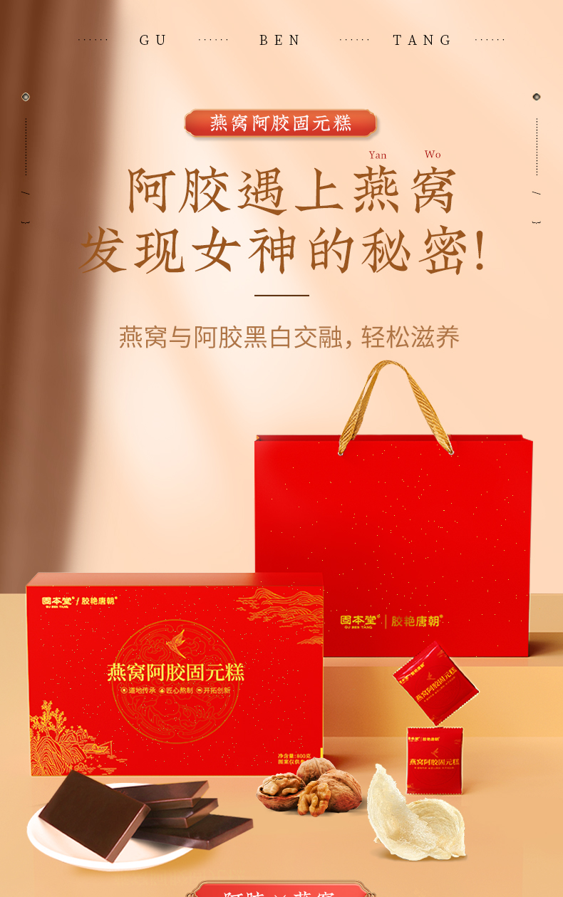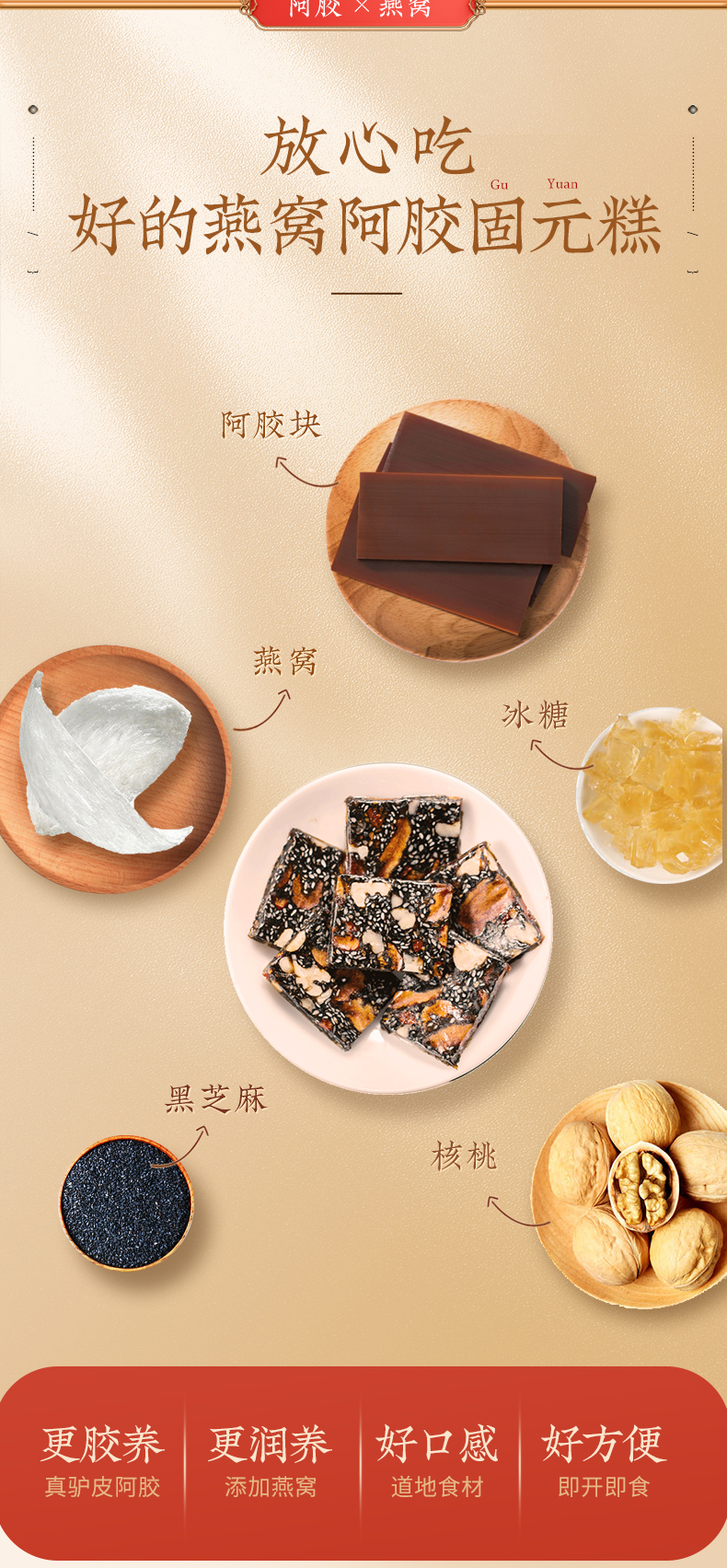 【固本堂】燕窝阿胶固元糕礼盒800g 燕窝阿胶绝妙搭配好口感 不老女神秘密武器 养气色去寒气
