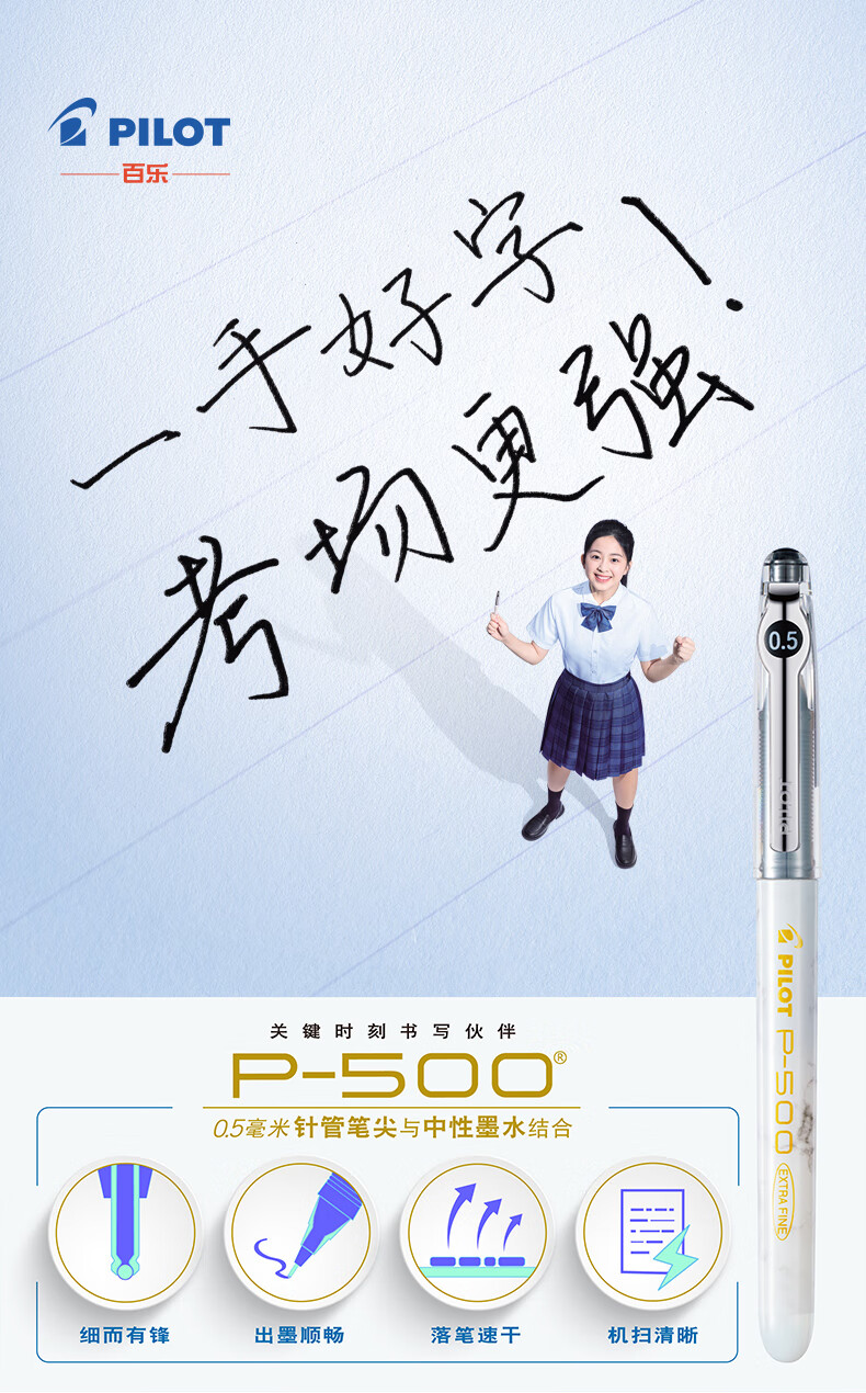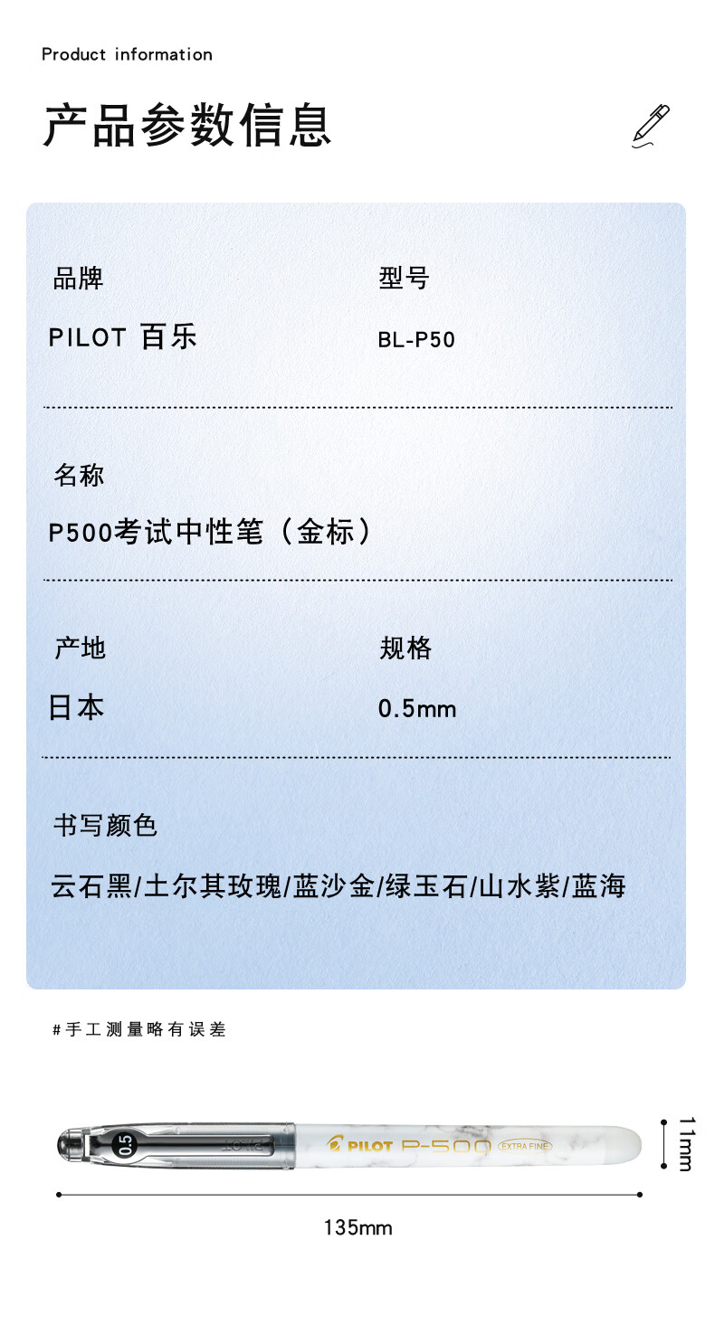 百乐(PILOT)P500金标黑色中性笔0.5 单支