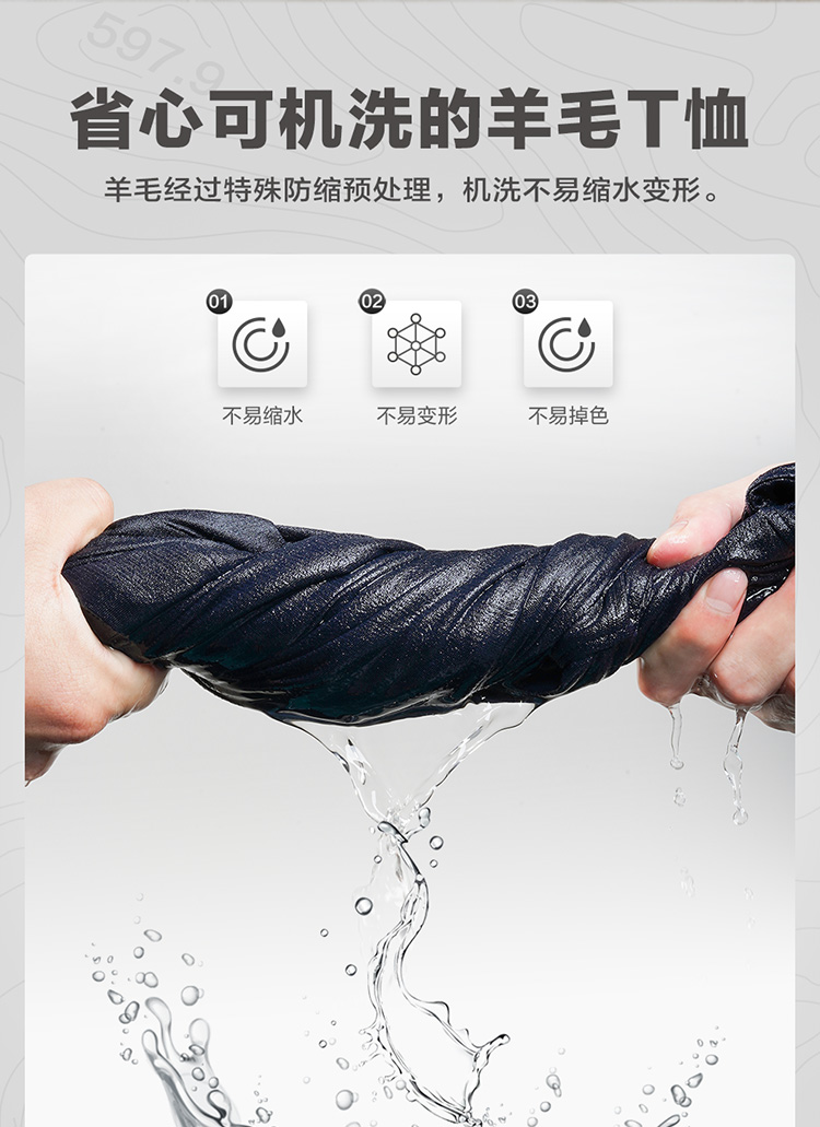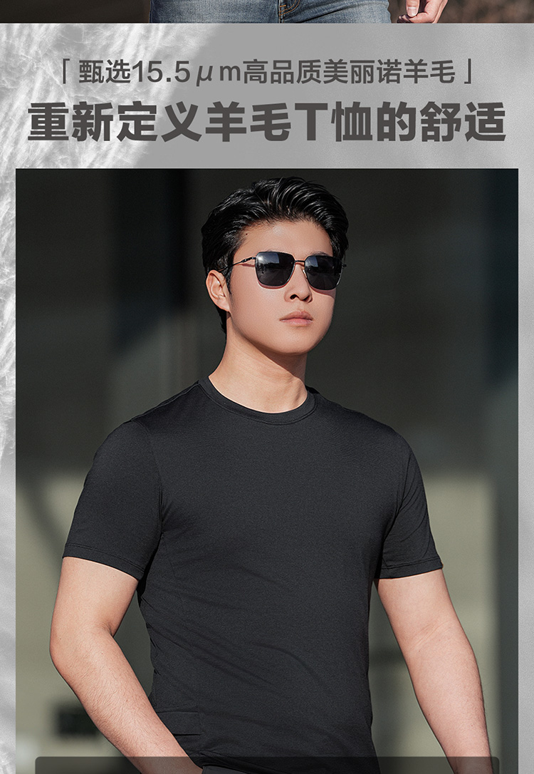 龙牙秘之风羽PRO美丽诺羊毛圆领短袖T恤