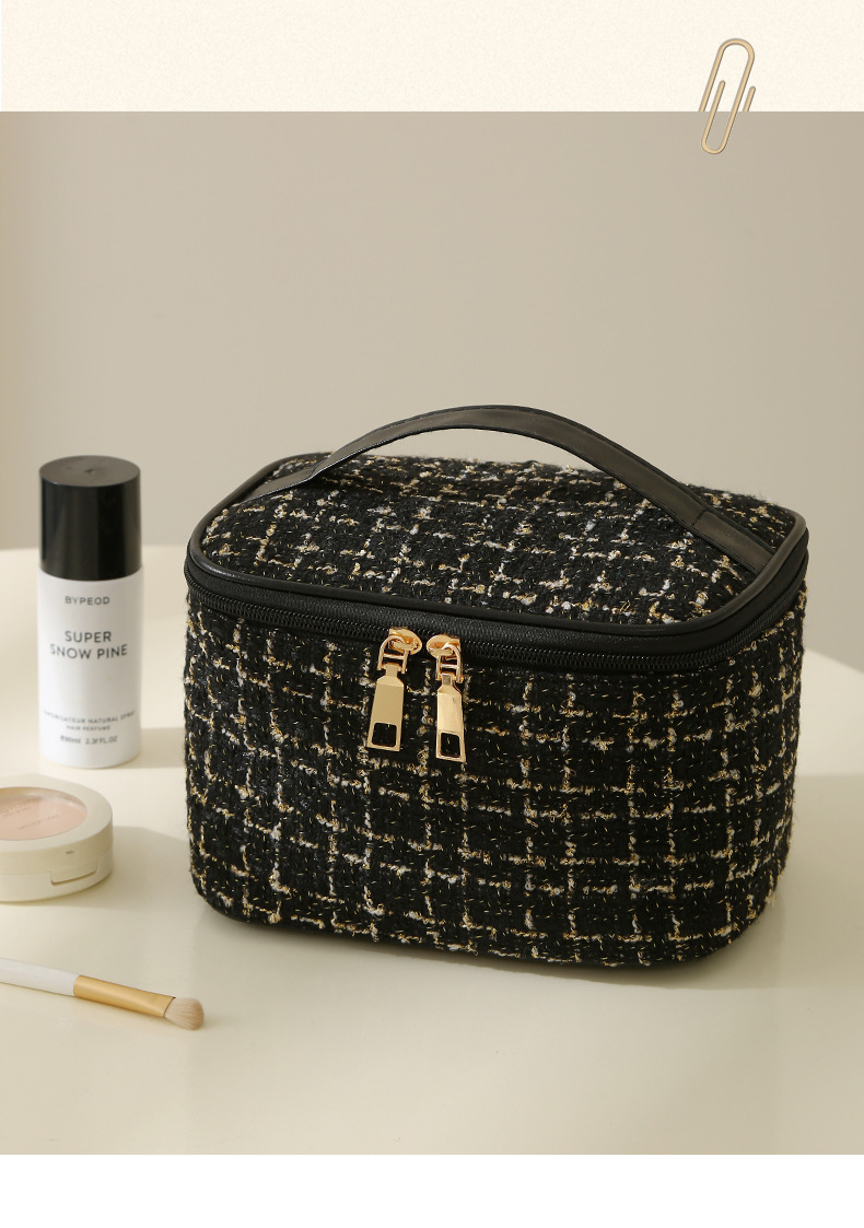 【HZ01】小香风便携化妆包 大容量便携旅行洗漱包格子手提收纳箱包 RJ103